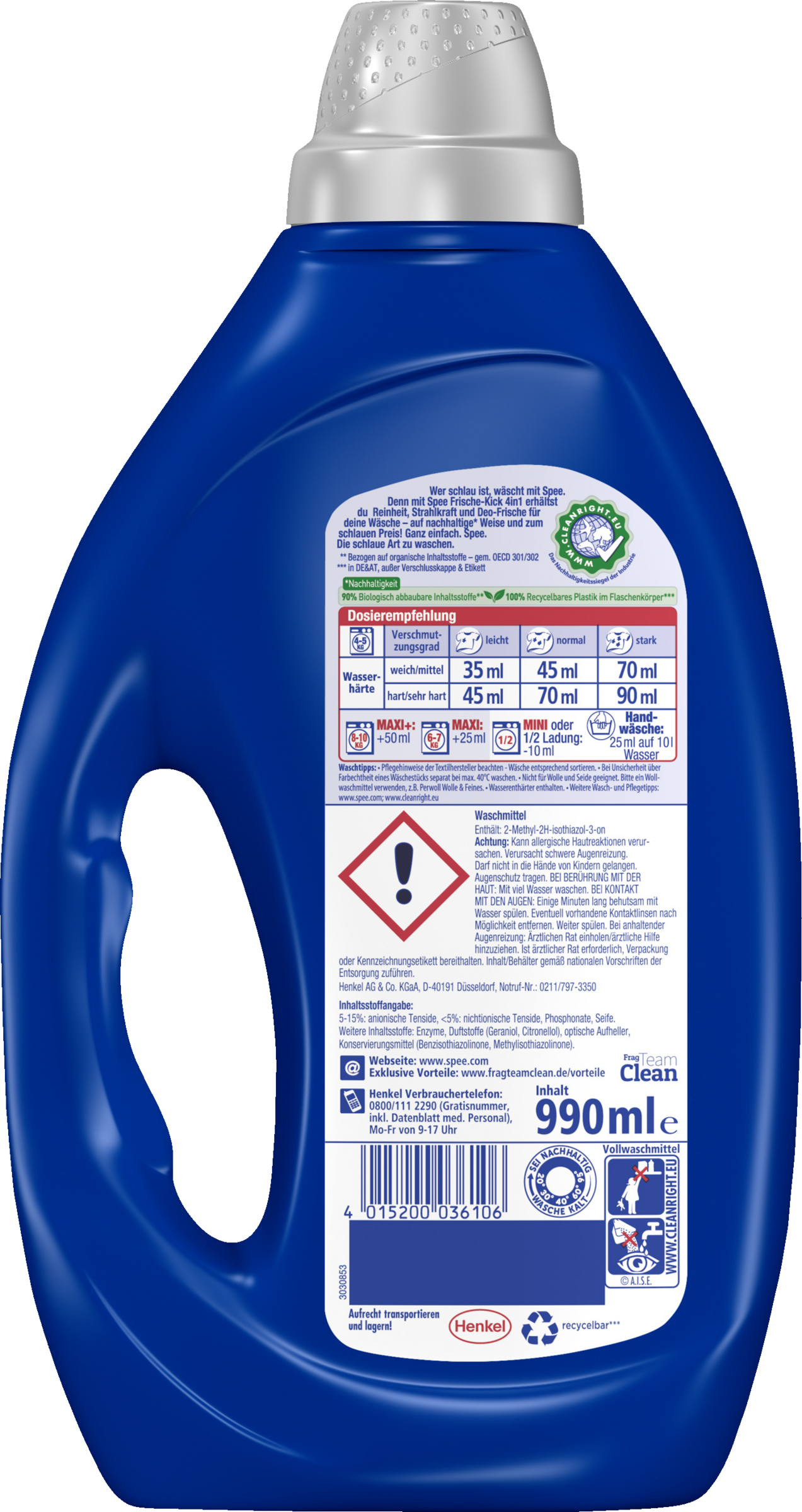 SPEE Gel Universal Frische Kick 4 in 1 – Flüssigwaschmittel für Reinheit, Strahlkraft, Deo-Frische & Nachhaltigkeit!