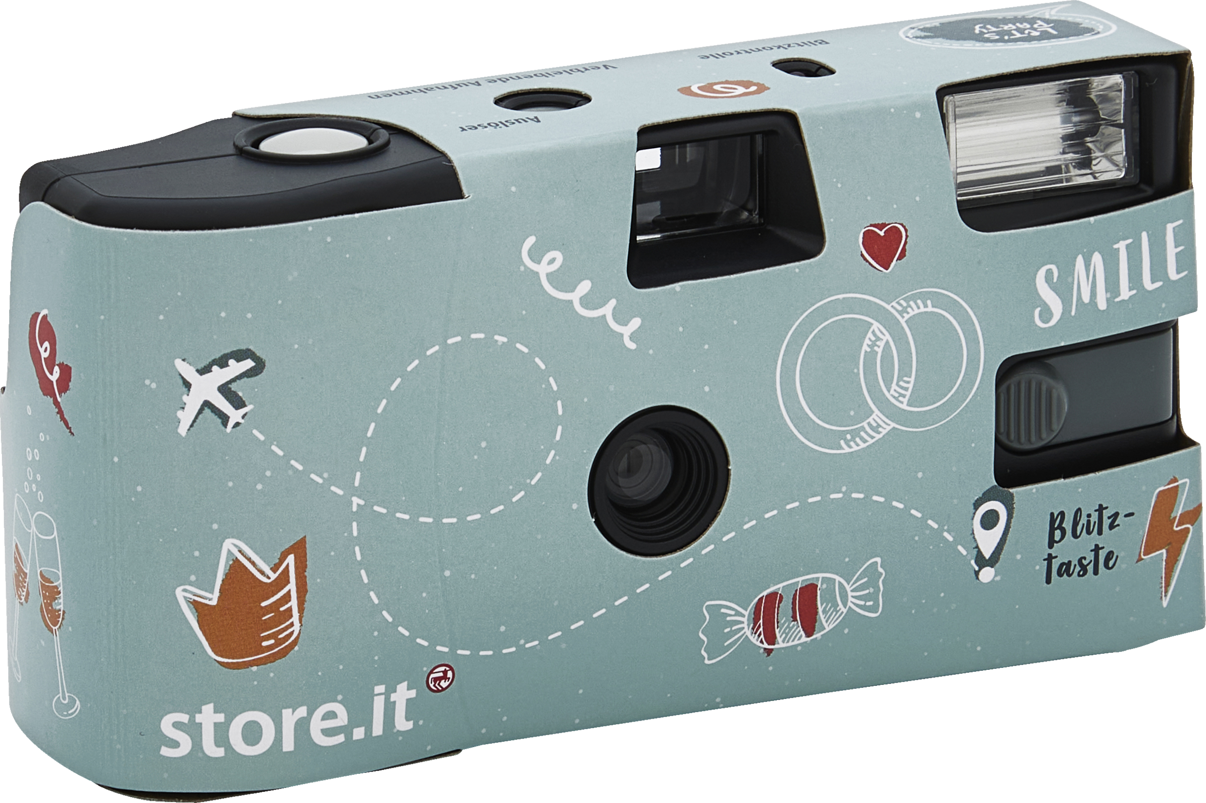 Die Einwegkamera mit Blitz kann sowohl im Freien als auch im Innenraum genutzt werden und ist einfach in der Handhabung. Im Freien ist die Kamera für den Einsatz bei Sonnenschein und leichter Bewölkung geeignet.
