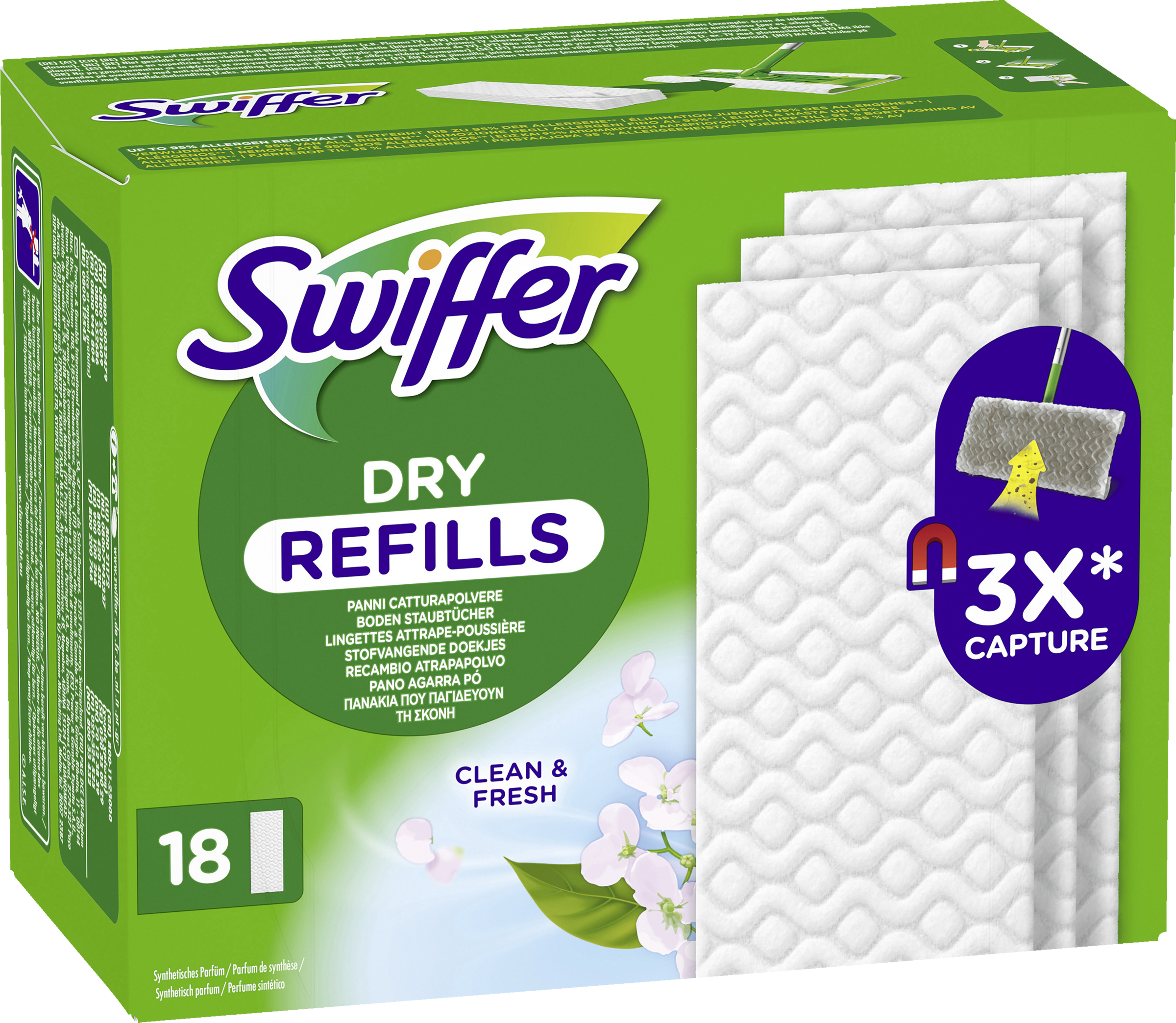 - 18-er Pack Swiffer Dry Nachfülltücher Clean & Fresh (Bodenwischer separat erhältlich)