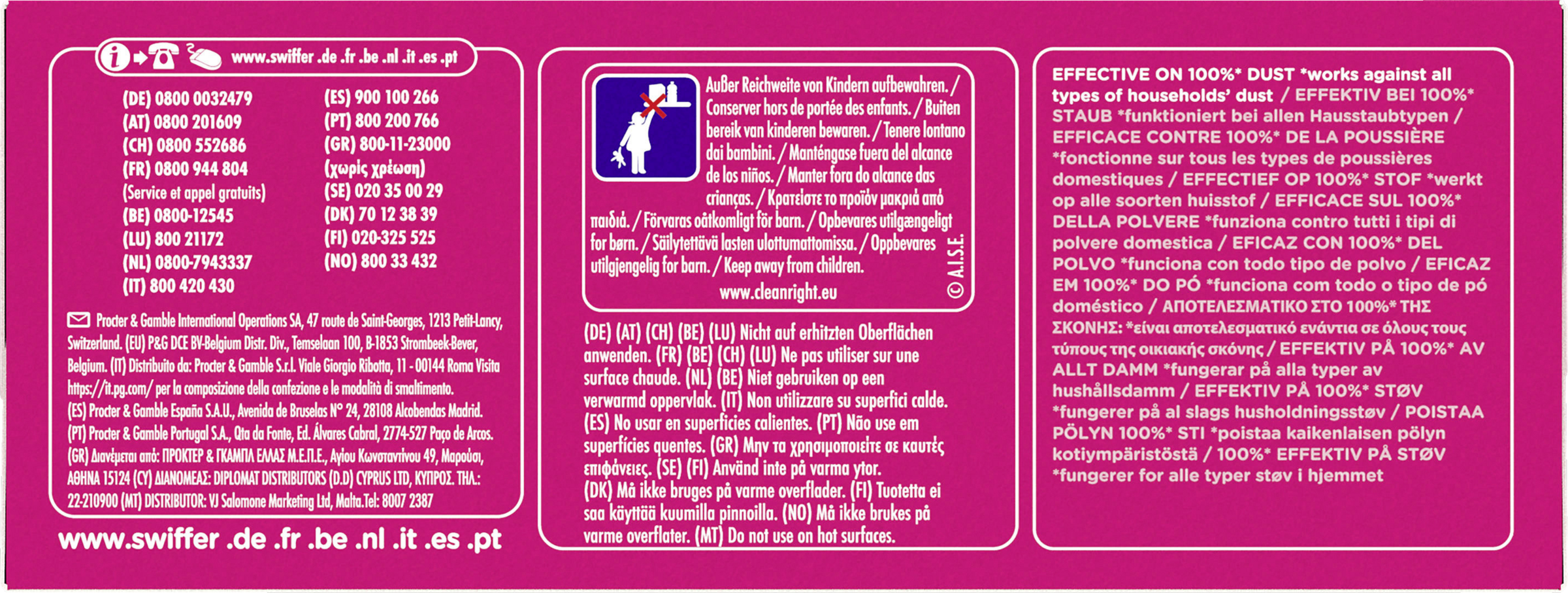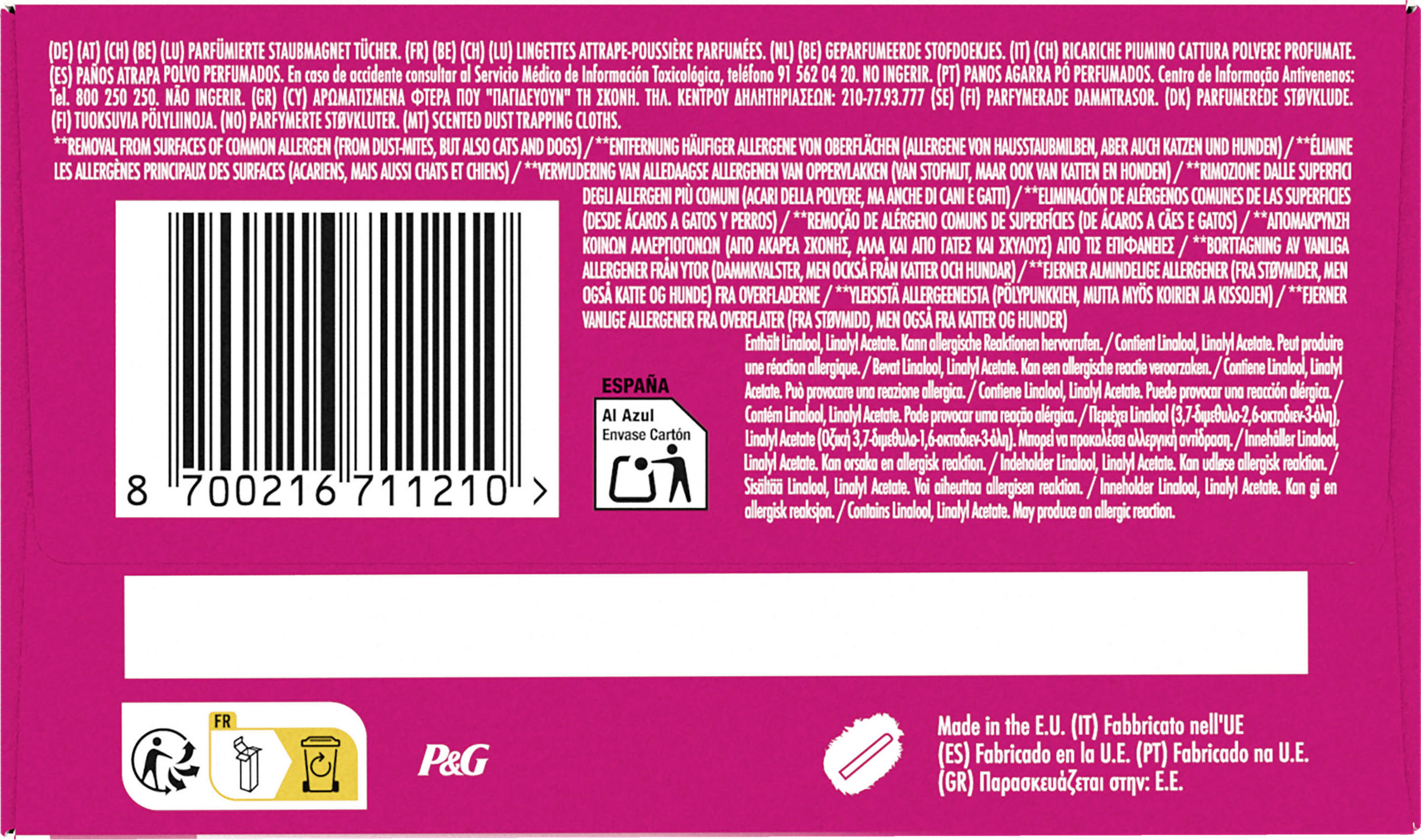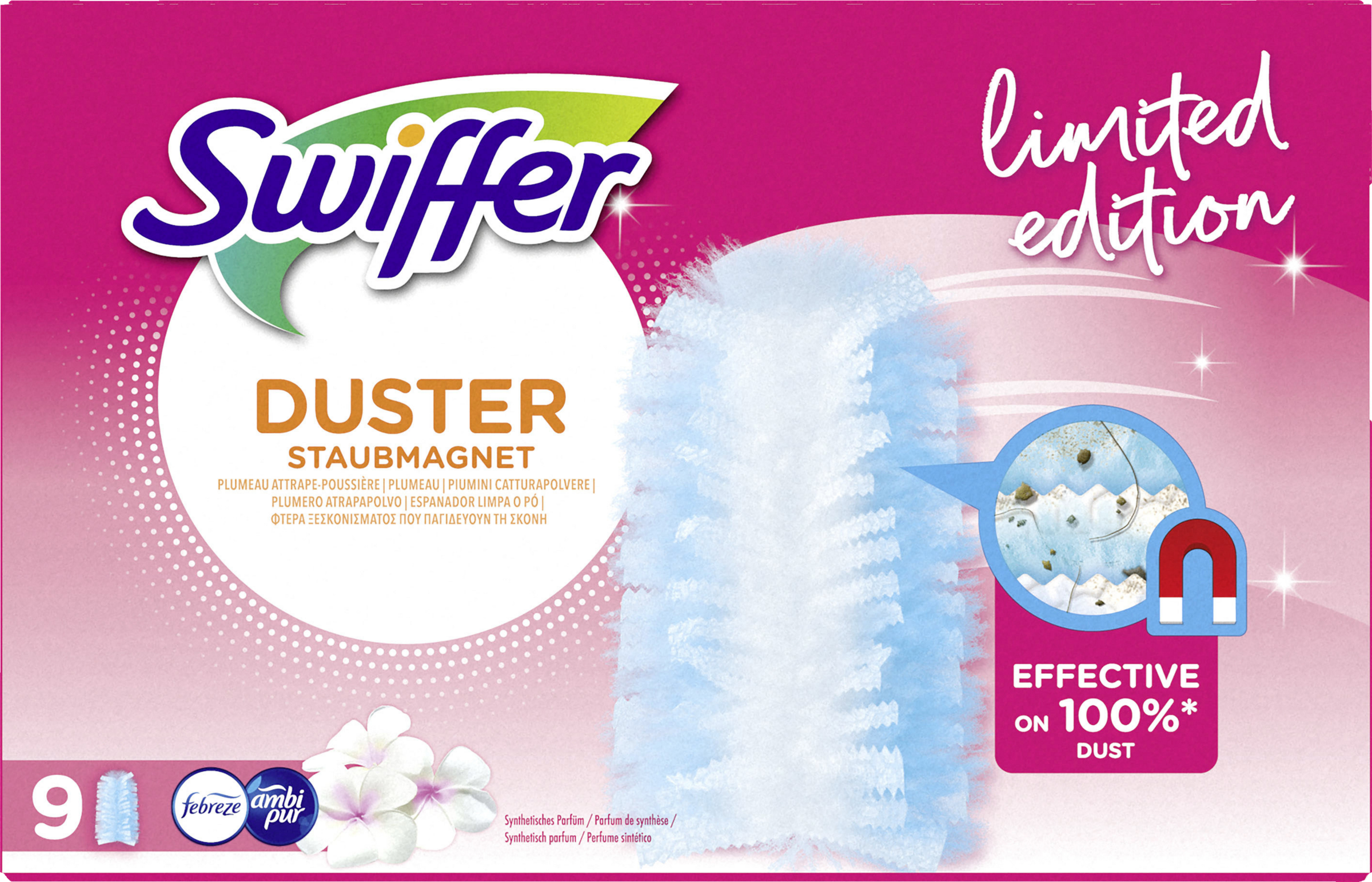 Swiffer Staubmagnet Nachfülltücher lassen dank ihrer Tausenden flauschigen Fasern, die Staub, Schmutz und Haare wie ein Magnet auf allen Oberflächen anziehen, Staub keine Chance (funktioniert bei allen Arten von Hausstaub) - das sogar an schwer zugänglichen Stellen und ohne ihn zu verteilen. Schütteln Sie einfach Ihren Swiffer Staubmagneten auf und schon kann das Putzen weitergehen! Mit Swiffer wird Staubwischen zum Vergnügen! Die Swiffer Staubmagnet Nachfülltücher sind sowohl mit dem kurzen als auch mit dem XXL-Griff kompatibel.