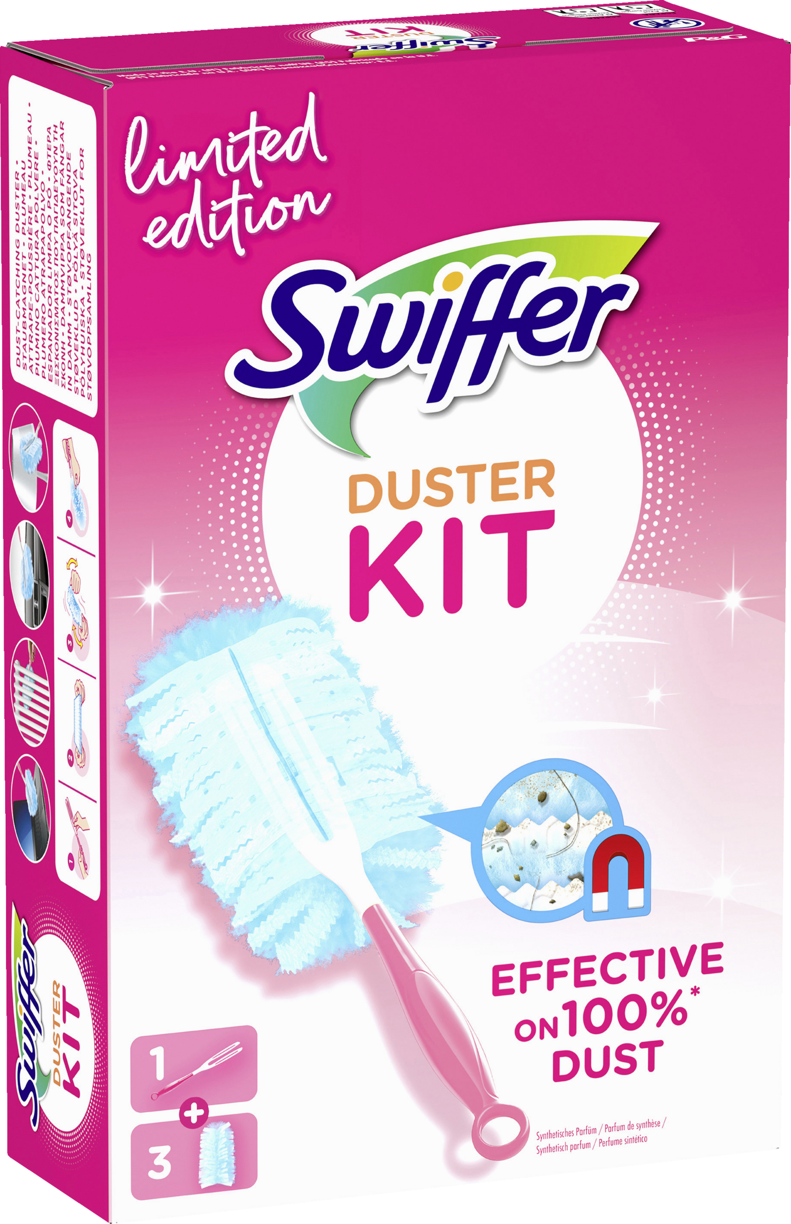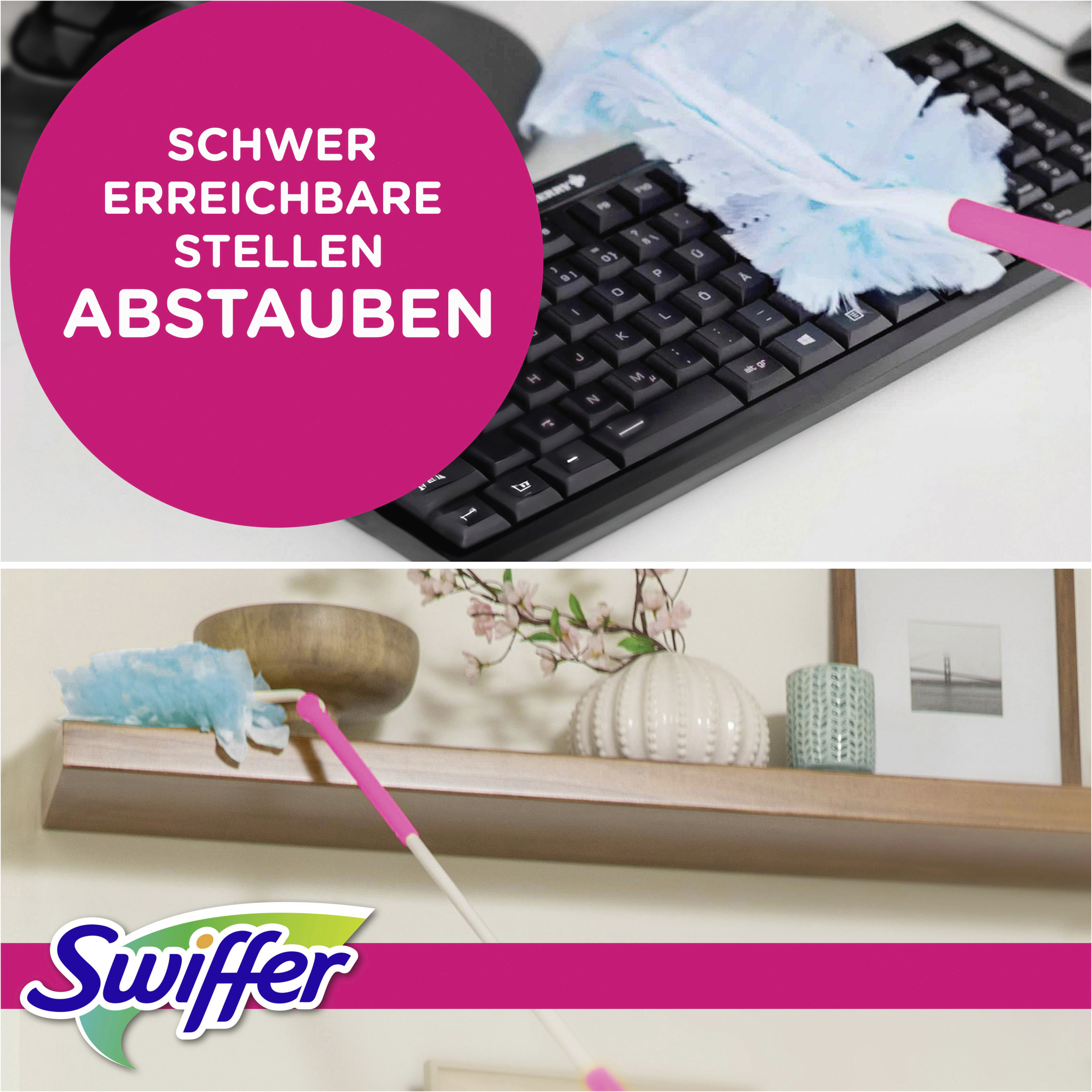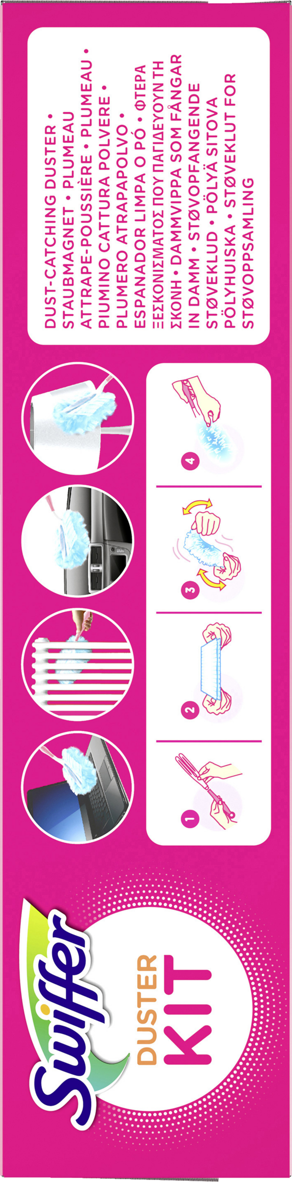 Swiffer Staubmagnet Nachfülltücher lassen dank ihrer Tausenden flauschigen Fasern, die Staub, Schmutz und Haare wie ein Magnet auf allen Oberfläche anziehen, Staub keine Chance (funktioniert bei allen Arten von Hausstaub) – das sogar an schwer zugänglichen Stellen und ohne ihn zu verteilen. Schütteln Sie einfach Ihren Swiffer Staubmagneten auf und schon kann das Putzen weitergehen! Mit Swiffer wird Staubwischen zum Vergnügen! Die Swiffer Staubmagnet Nachfülltücher sind sowohl mit dem kurzen als auch mit dem XXL-Griff kompatibel.