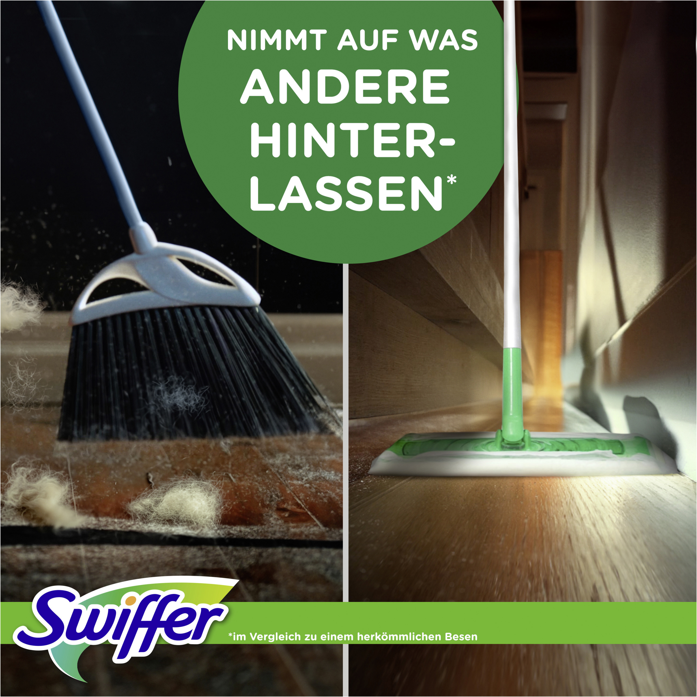- fängt und schließt 3-mal mehr Staub, Schmutz und Haare ein als ein herkömmlicher Besen
