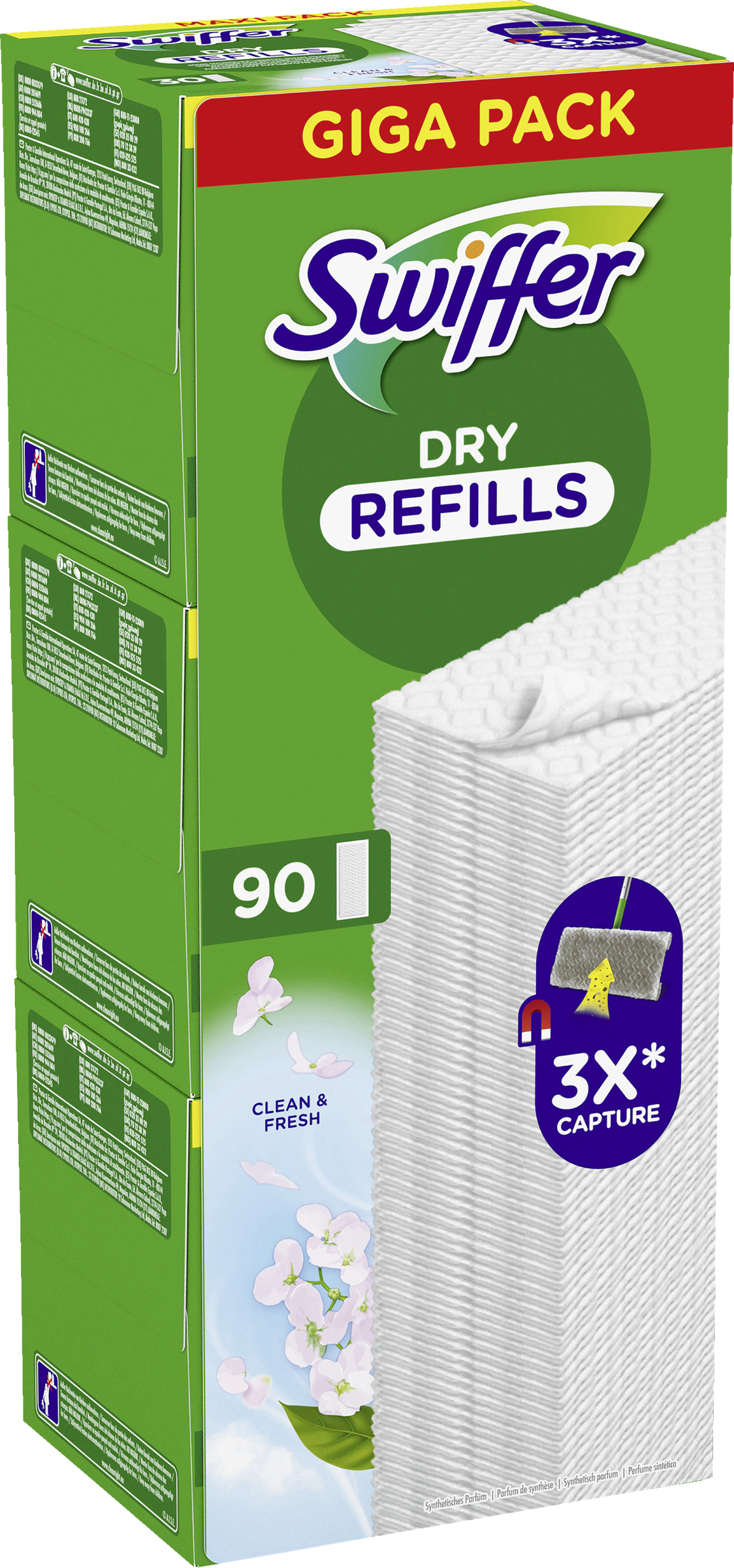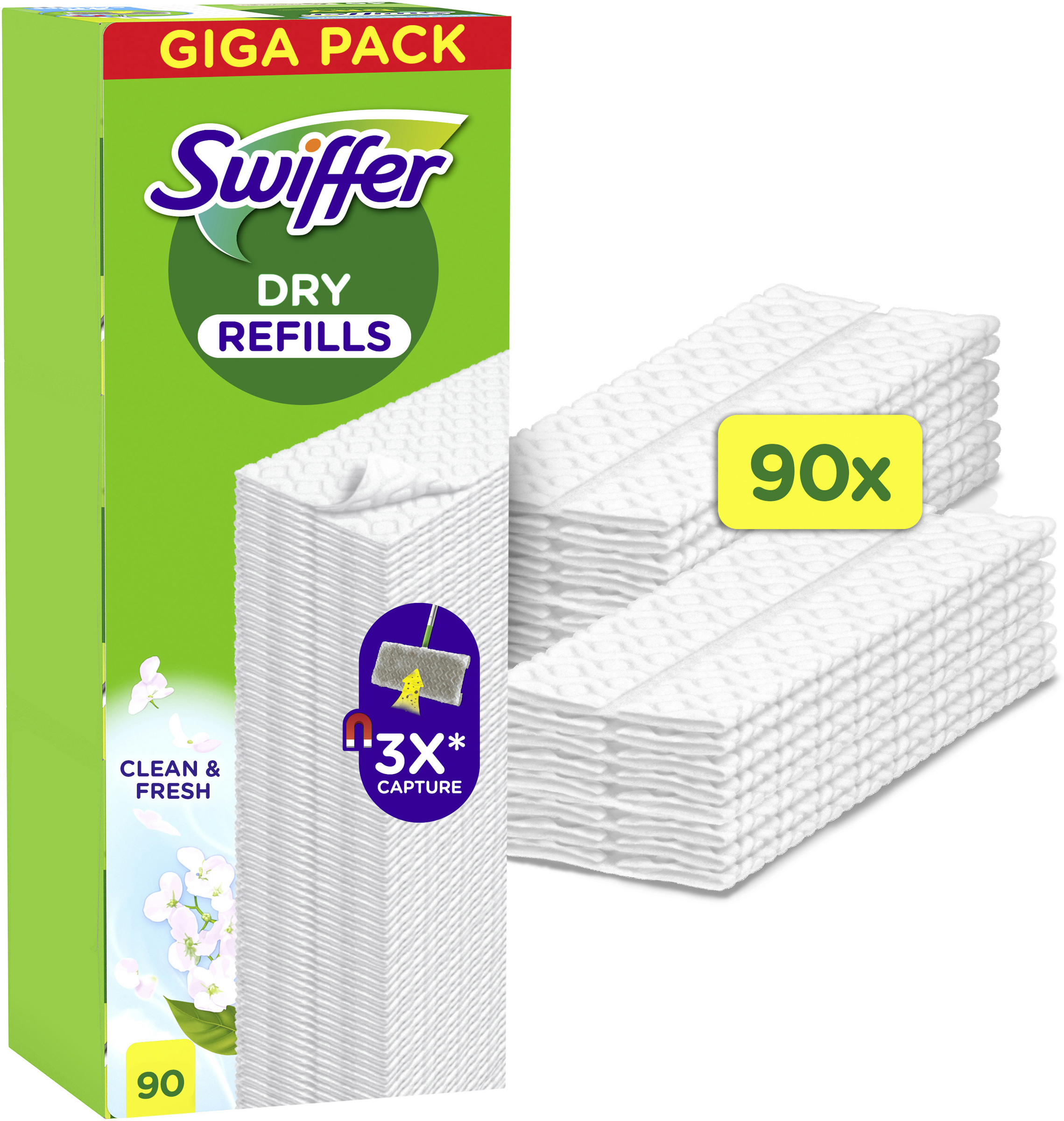- 90-er Pack Swiffer Dry Nachfülltücher Clean & Fresh (Bodenwischer separat erhältlich)