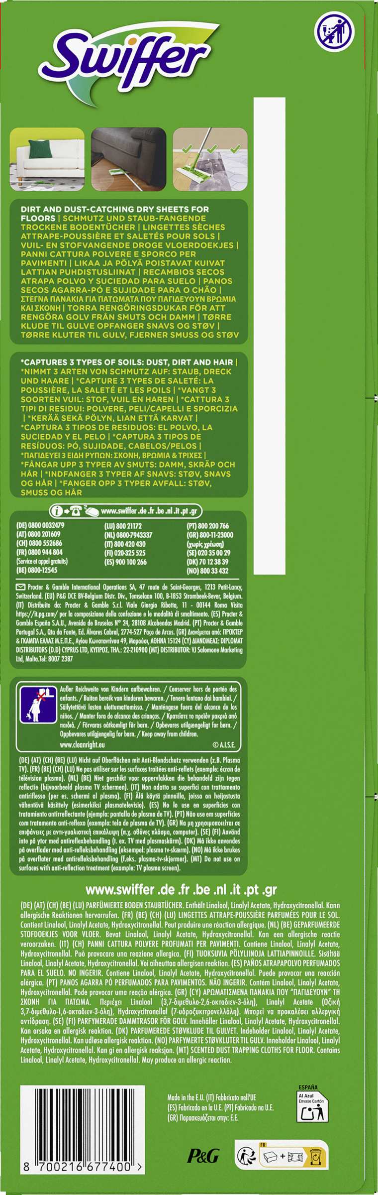 Mit dem Swiffer Dry können Sie Ihr Zuhause im Handumdrehen, mühelos und geräuschlos wieder sauber bekommen. Die perfekte Lösung, um feinen Staub in kleinen Ecken oder an schwer zugänglichen Stellen wie unter dem Sofa und dem Bett einzufangen, wo Besen und Staubsauger nicht immer hinkommen. Die Dichte, spezifische Oberflächenstruktur und elektrostatische Wirkung der Staubtücher ermöglichen es, den gesamten Staub einzufangen und im Inneren des Tuchs einzuschließen. Dabei hinterlassen sie einen langanhaltenden, frischen Duft im Raum. Bodenreinigung war noch nie so schnell und einfach wie mit Swiffer Dry.