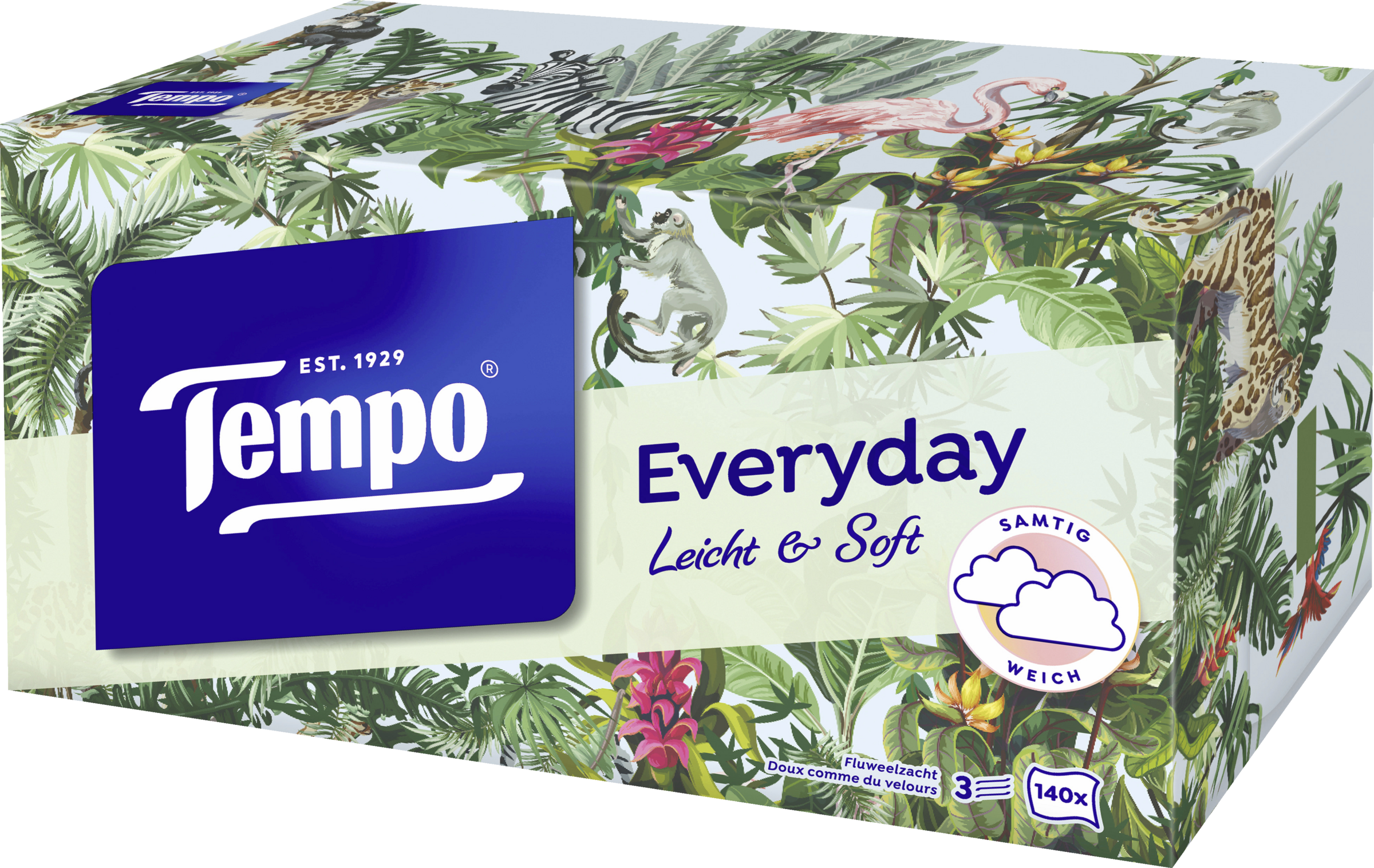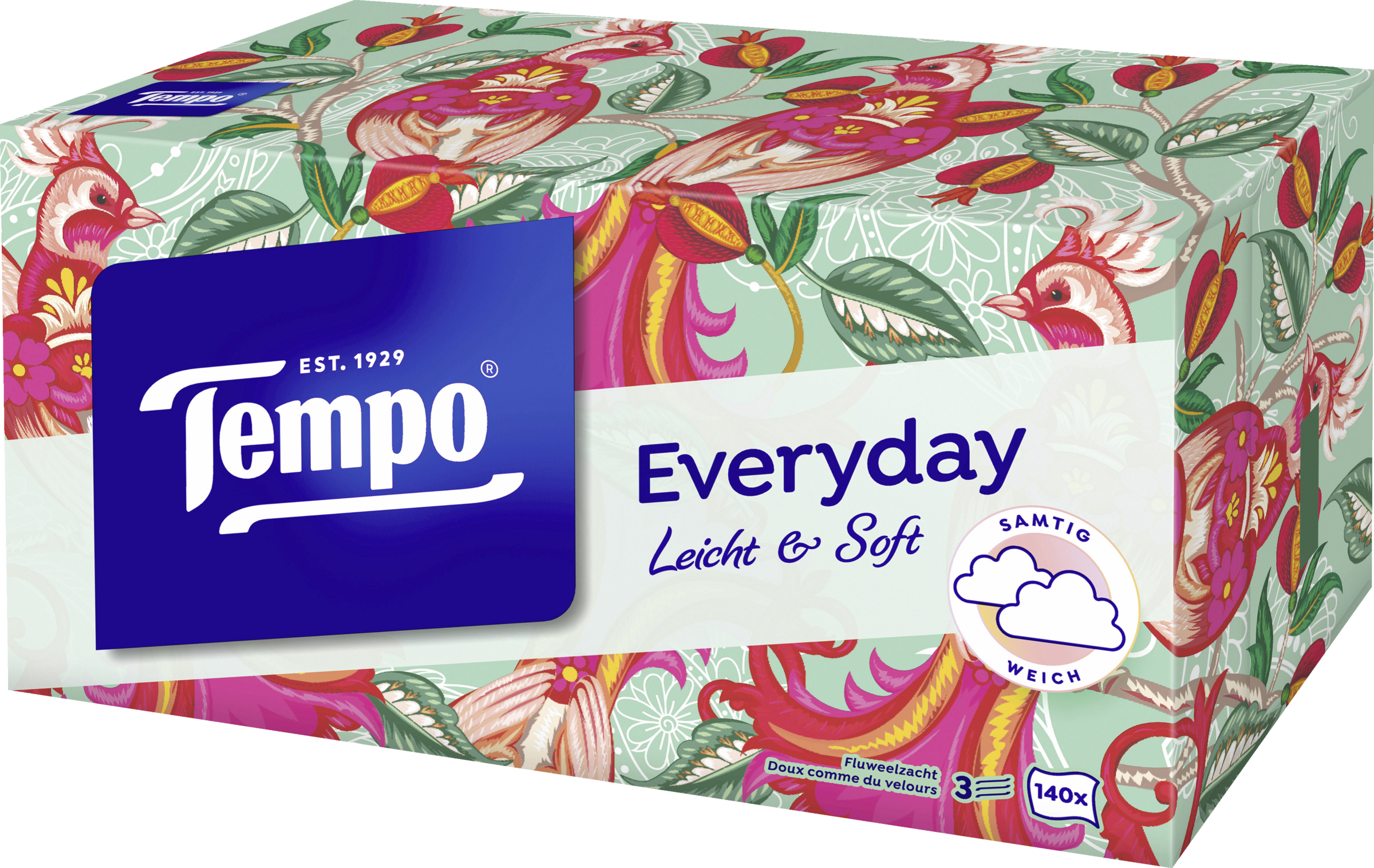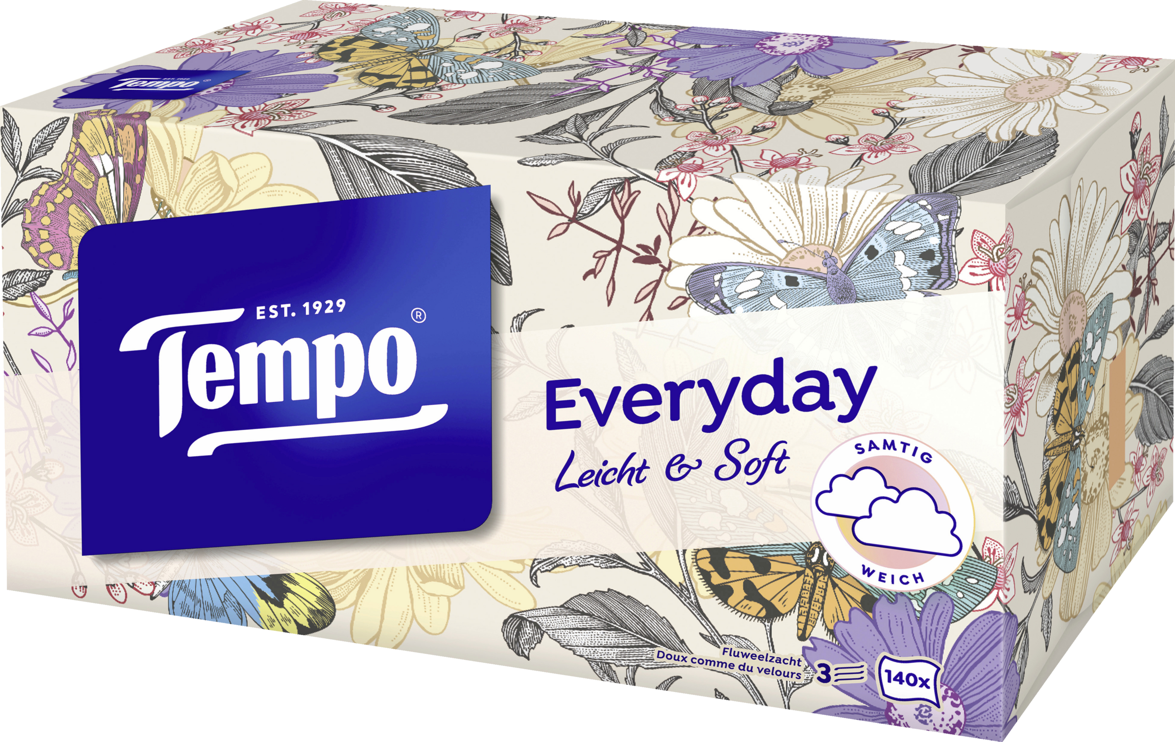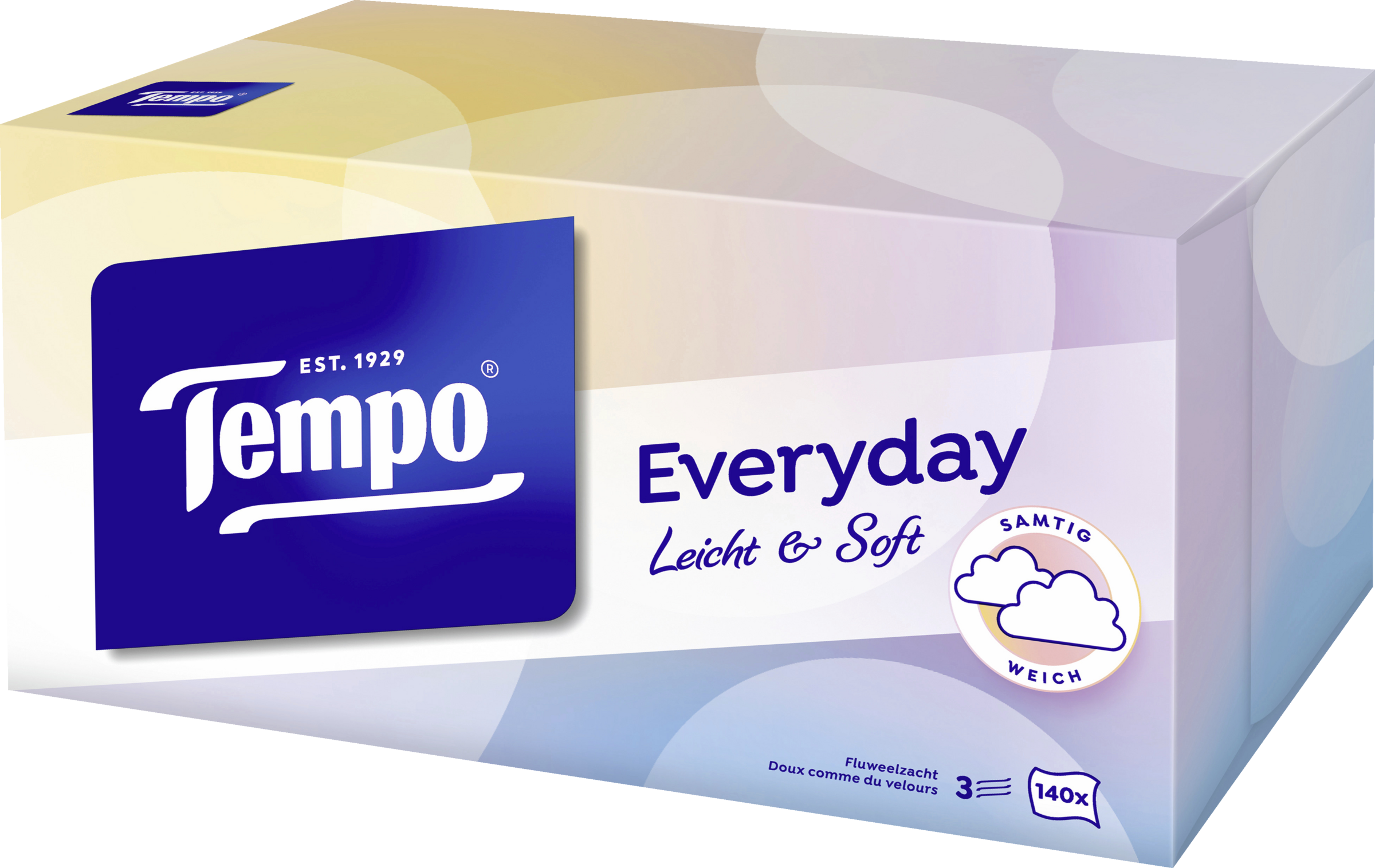 - 3-lagige Tempo Taschentücher sind samtig weich für sanfte Pflege