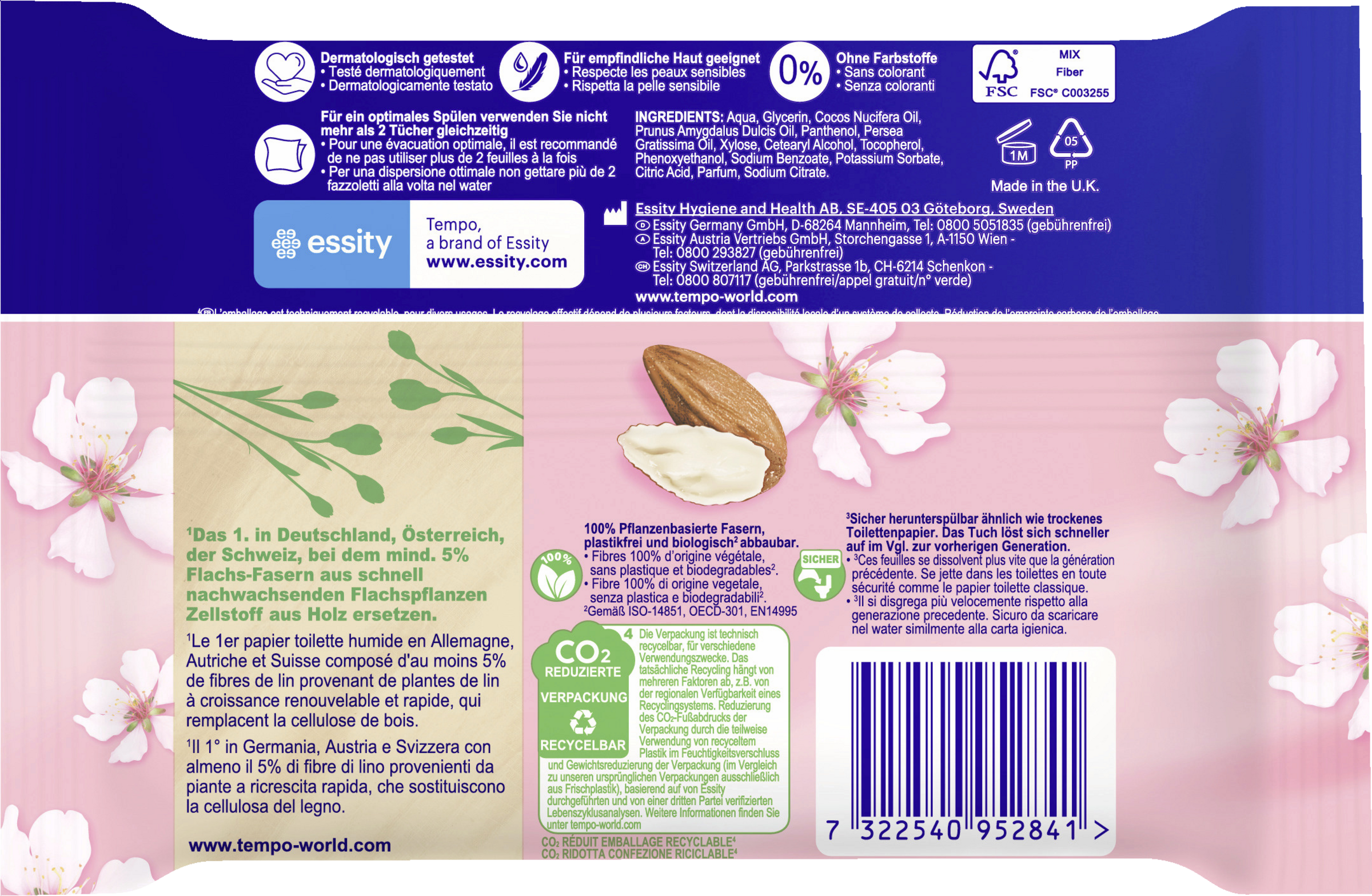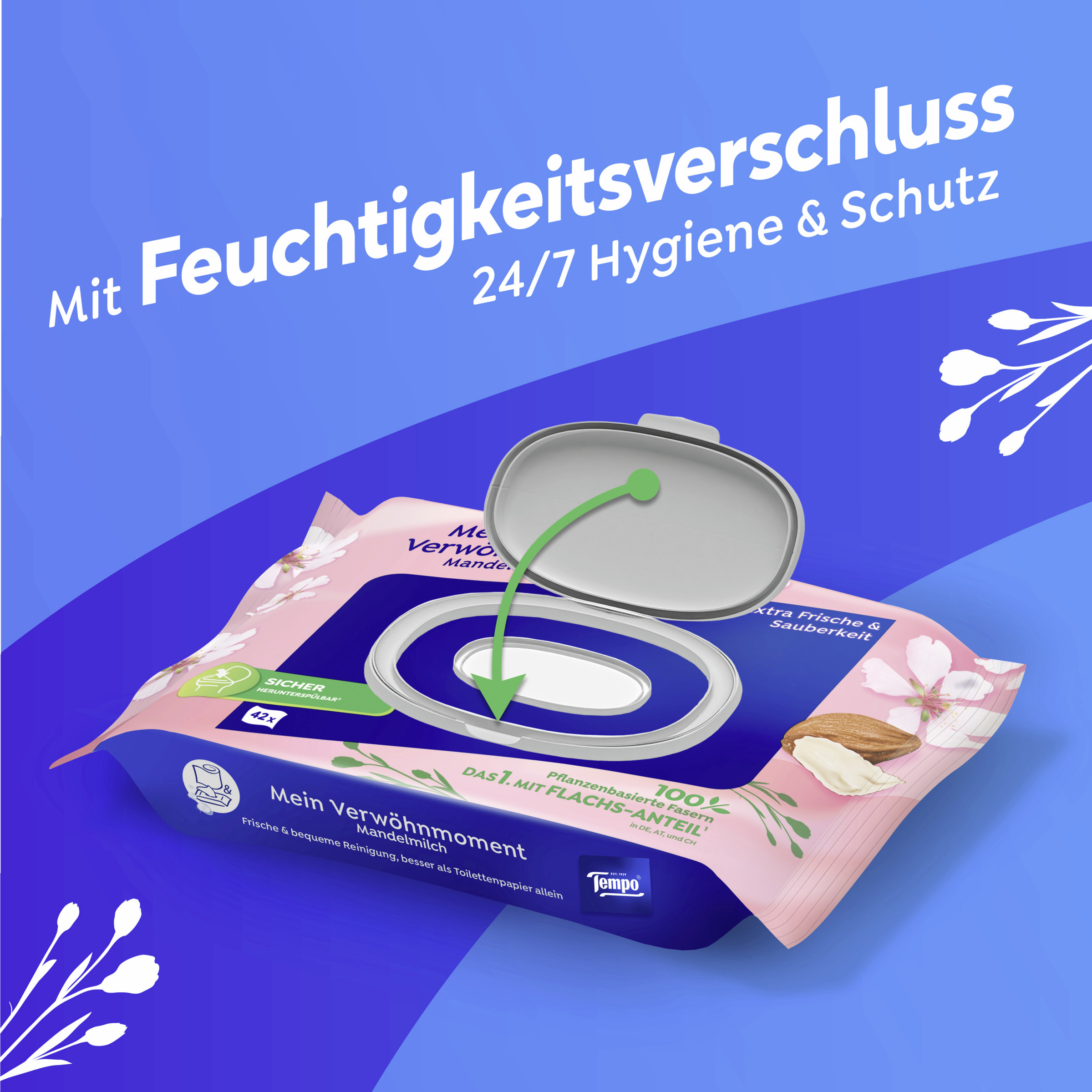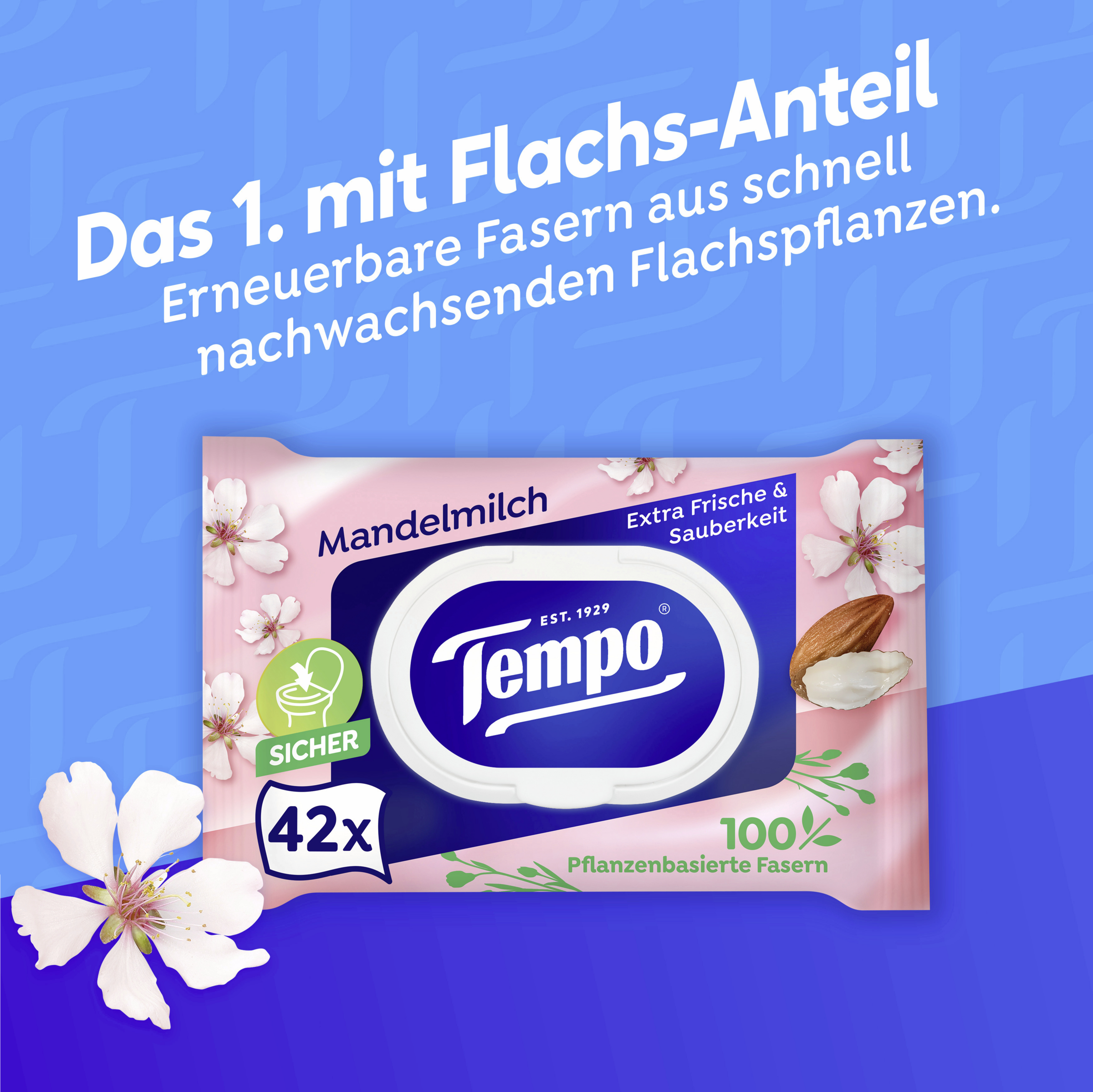 *Das Tempo-Substrat enthält mind. 5% Flachsfasern. Dat 1. mit Flachs-Anteil in Deutschland, Österreich, der Schweiz