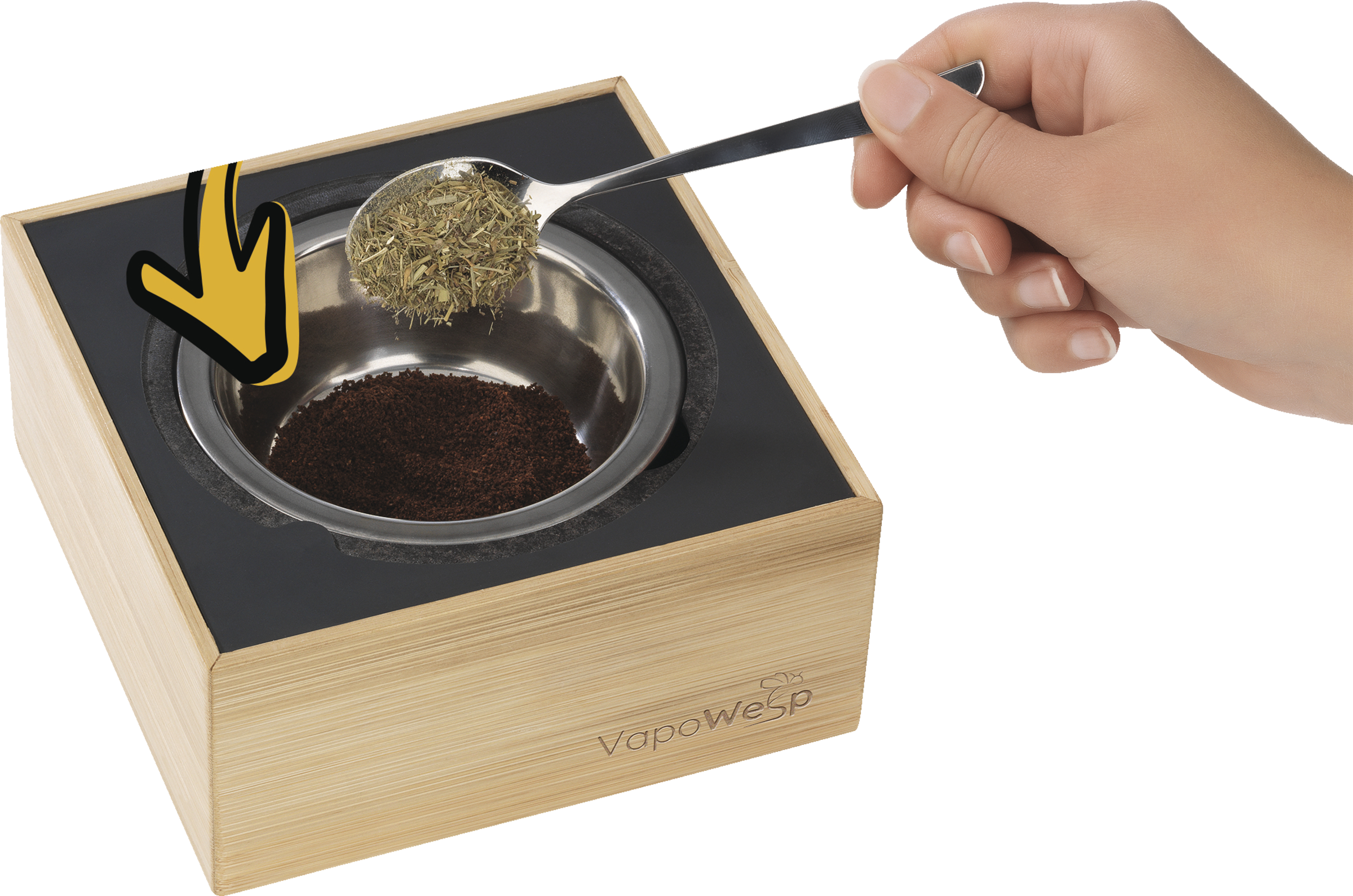 Durch die speziellen, natürlich duftenden VapoWesp Kräutermischungen wird das glimmende Kaffeepulver, welches normalerweise nach einiger Zeit unangenehm riecht, angenehm aromatisiert. So kannst du die Zeit im Freien entspannt genießen - mit zartem Kräuterduft in der Nase!