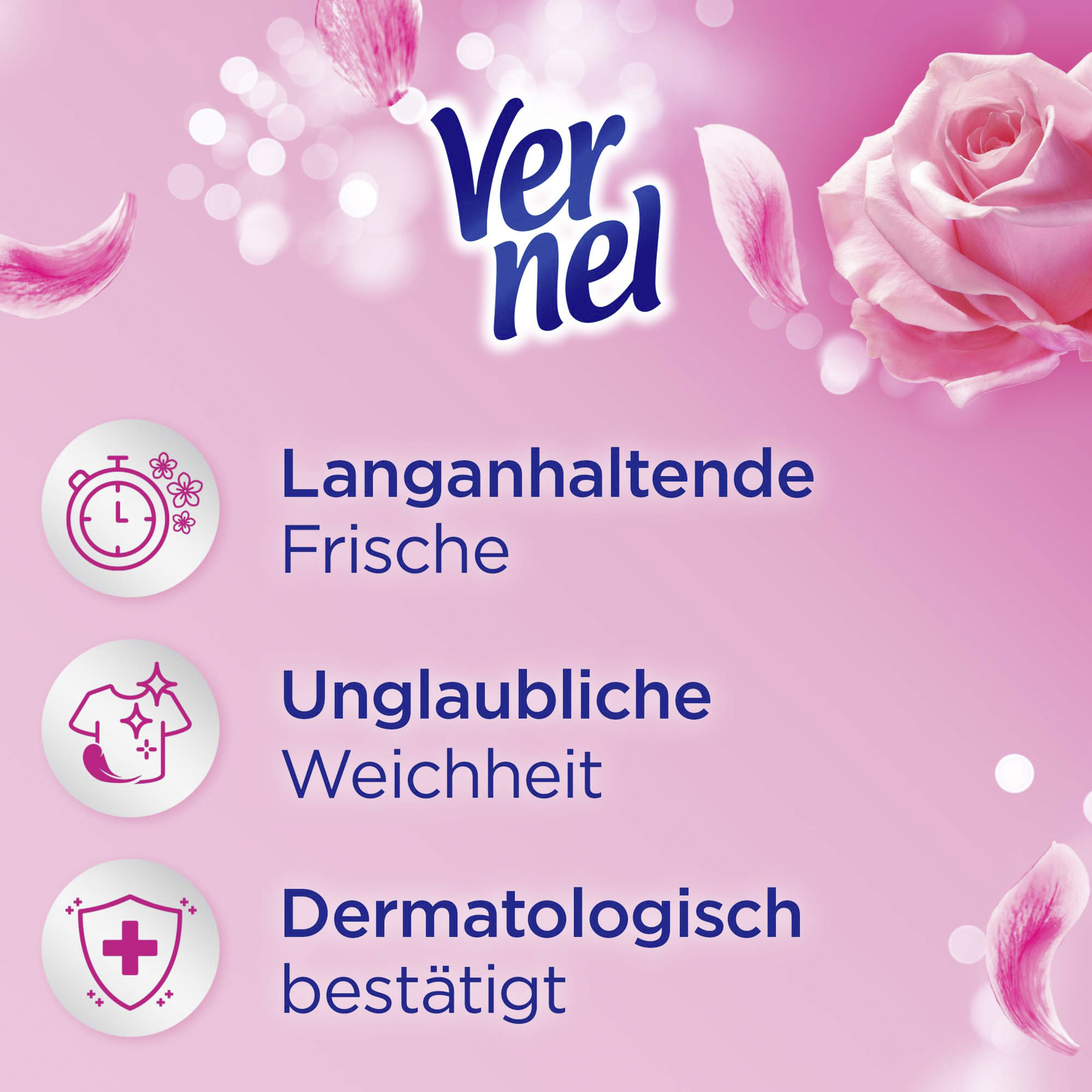 Tauchen Sie ein in die wundervolle Welt der Düfte von VERNEL und erleben Sie Ihren persönlichen Wohlfühl-Moment. Spüren Sie unglaubliche Weichheit und einen langanhaltenden wie-frisch-gewaschen Duft. Vernel - Der Duft zum Verlieben!
