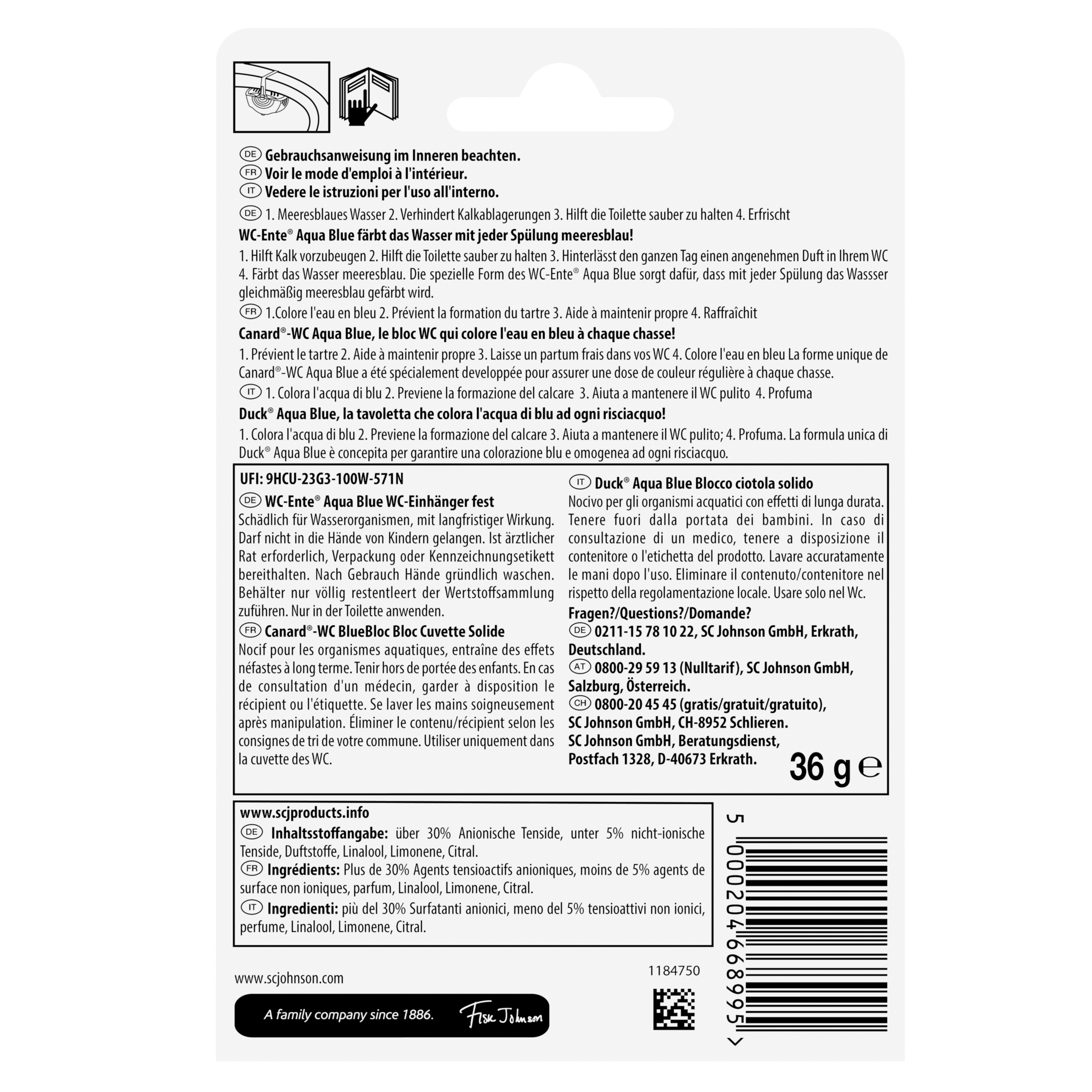 Der WC-Ente® Aqua Blue 4in1 färbt das Wasser mit jeder Spülung meeresblau!
