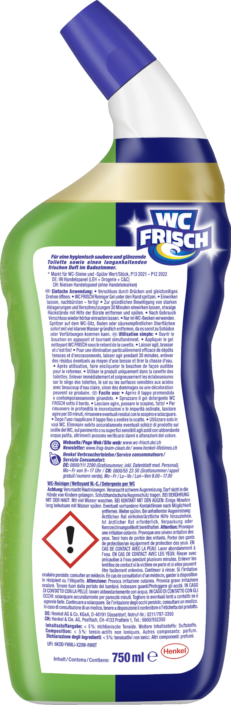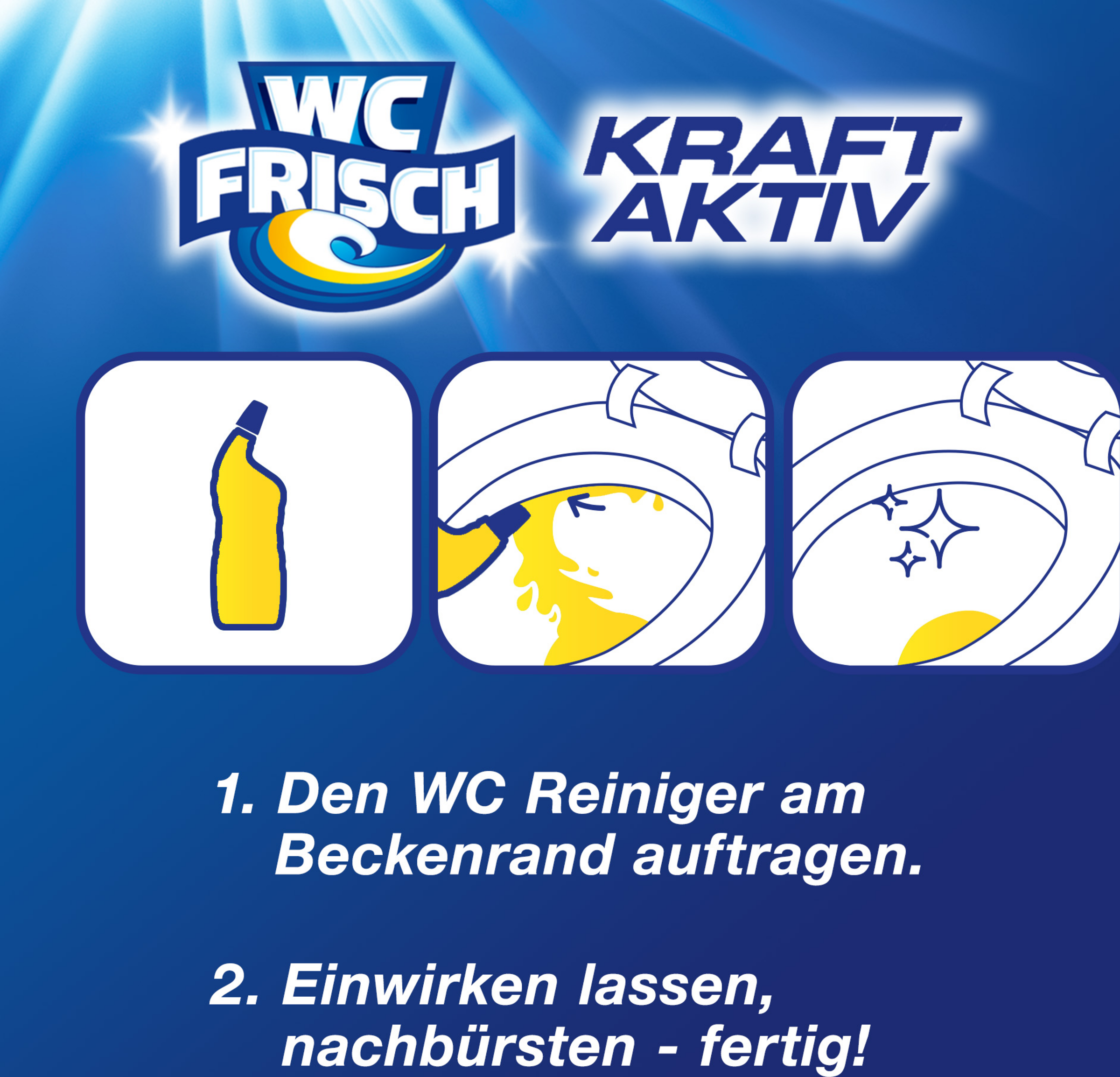 Einfache Anwendung – die innovative Flaschenform sorgt für eine effizientere Reinigung bis unter den WC-Rand; einfach auftragen, einwirken lassen und nachspülen, fertig.
