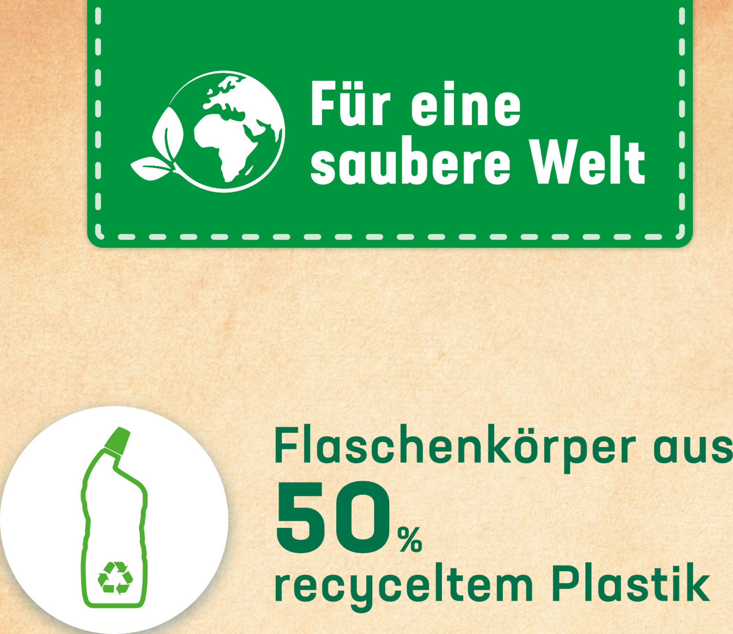 - Flaschenkörper aus 50 % recyceltem Plastik