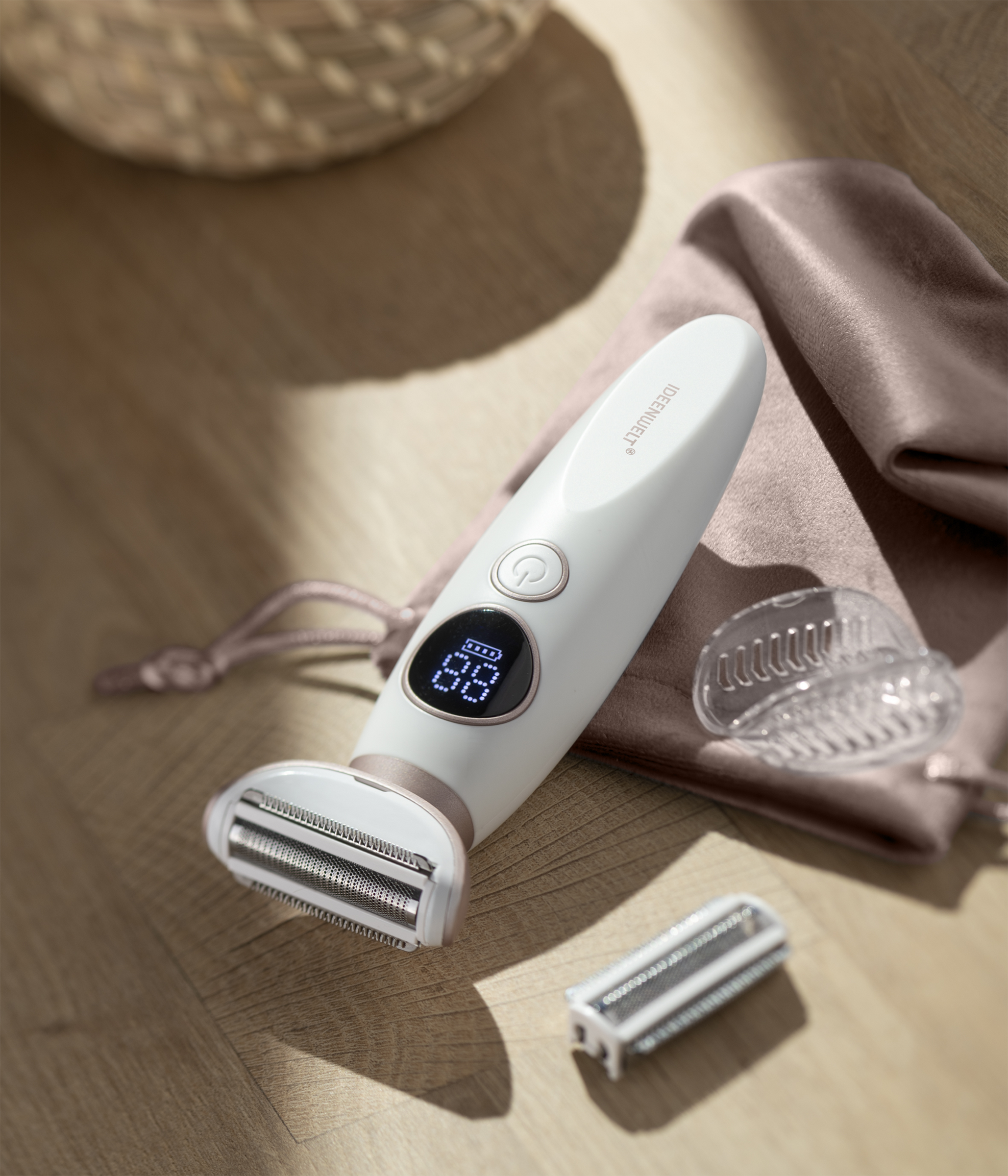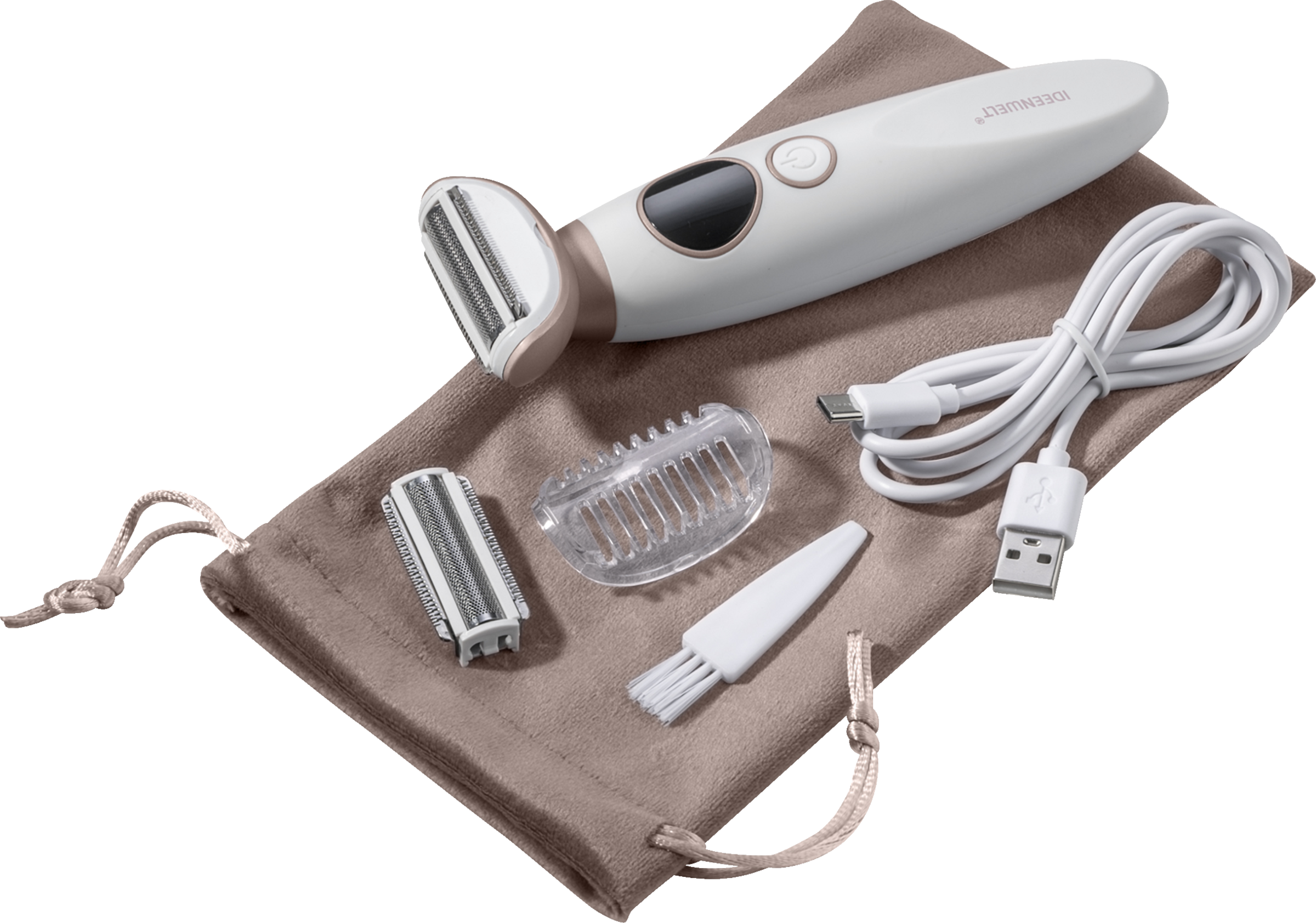 - inkl. Trimmer-Aufsatz (3 mm), Ersatzscherfolie, Aufbewahrungstasche, Reinigungsbürste und USB-C-Ladekabel