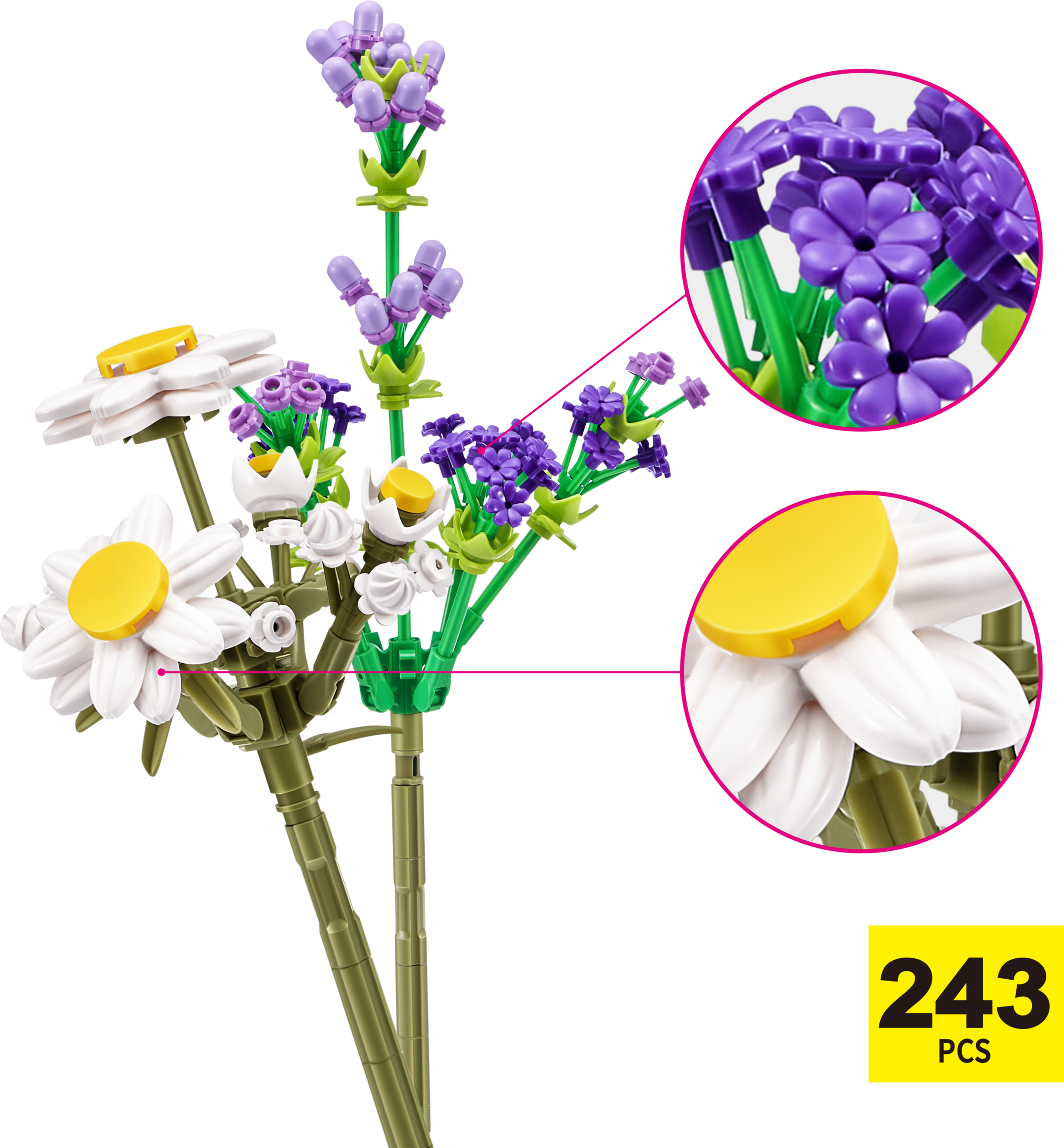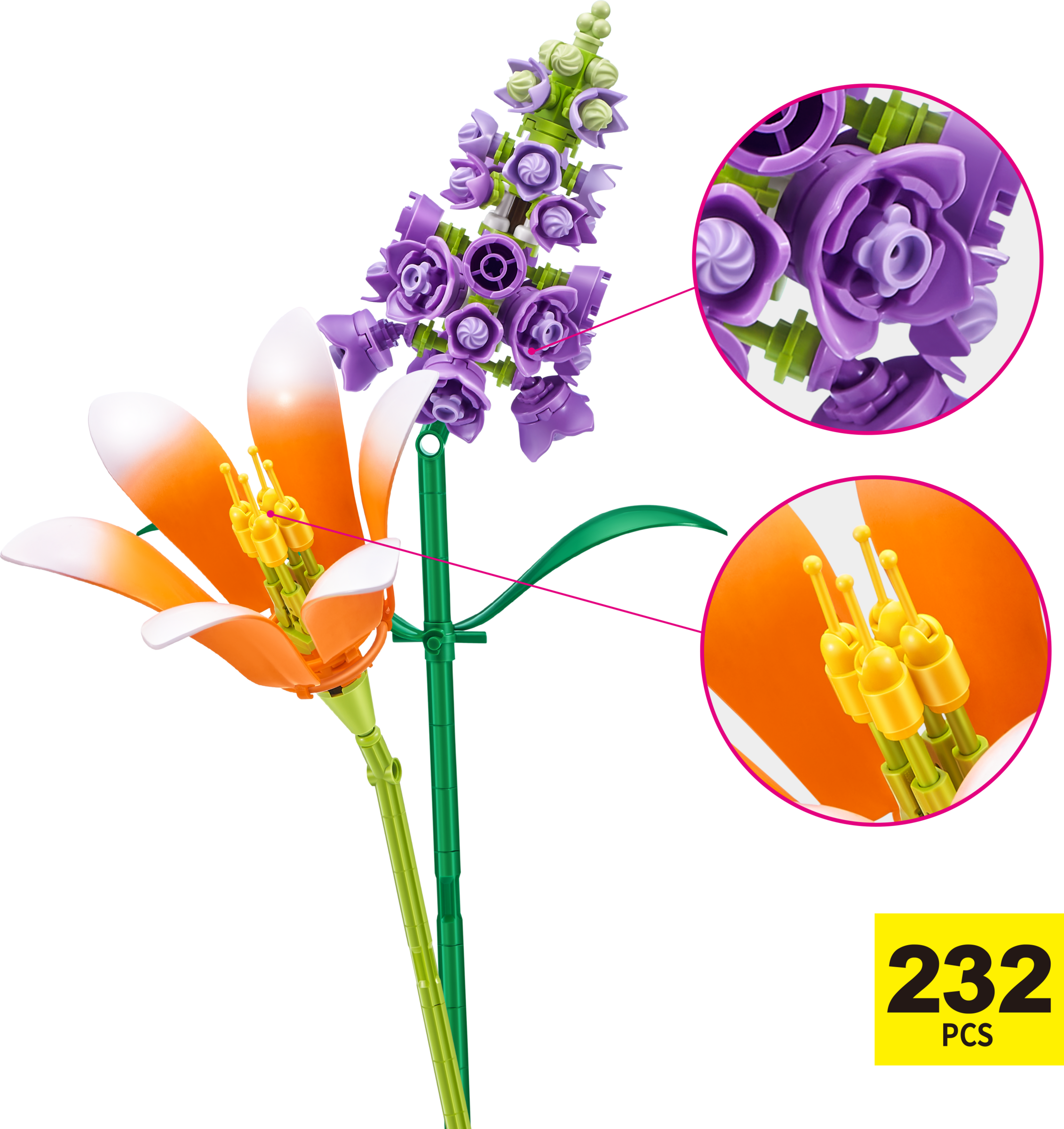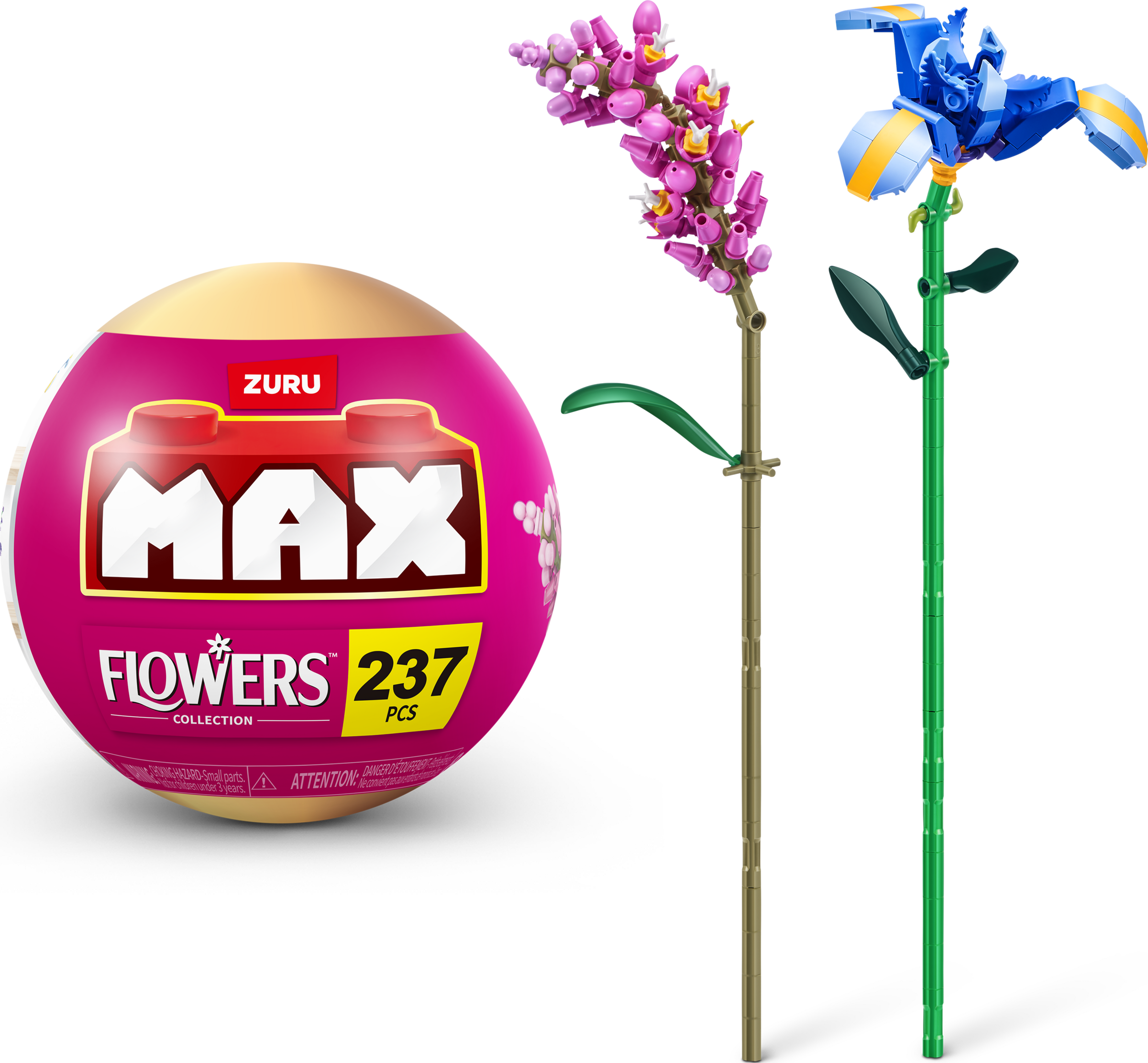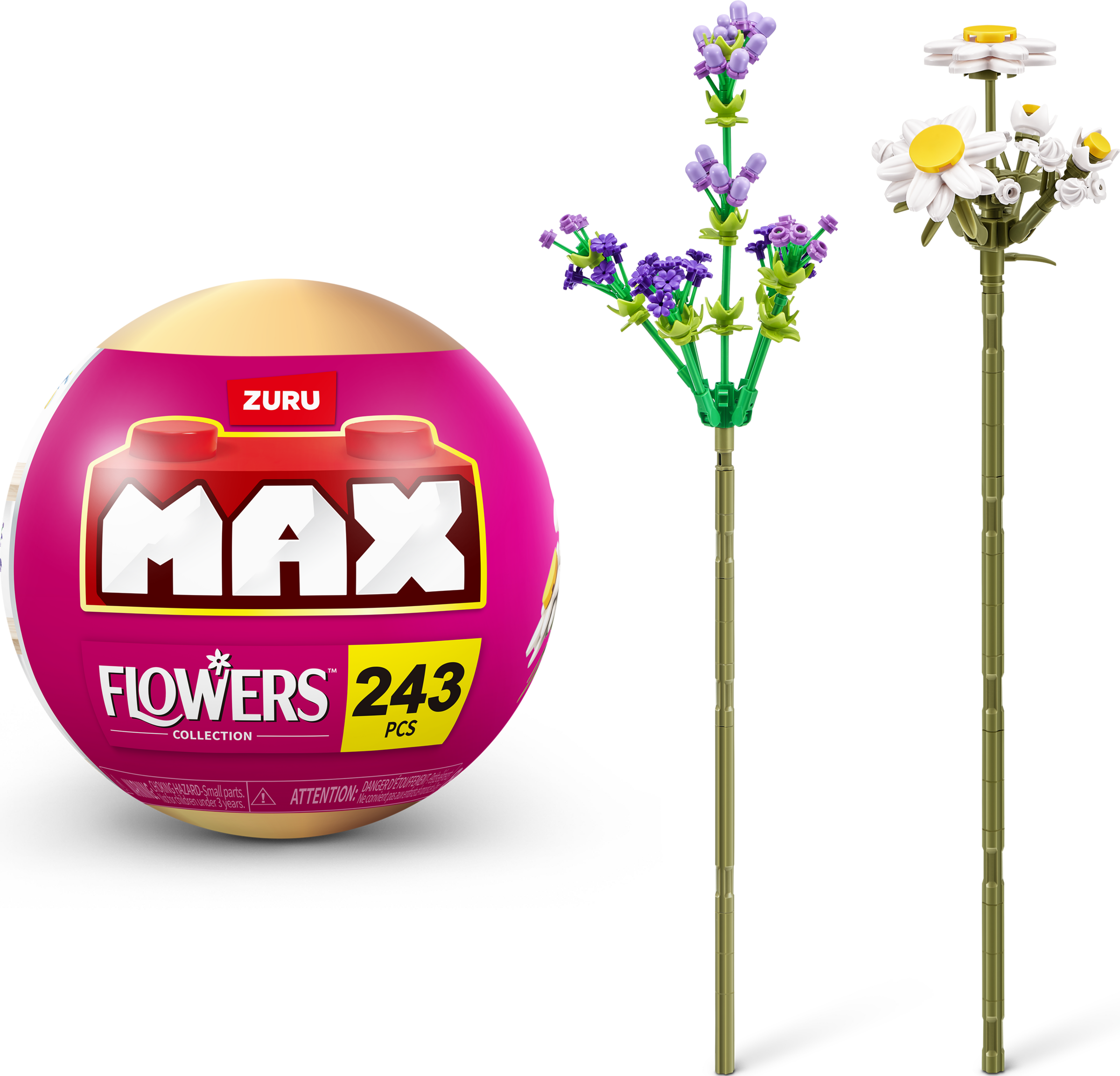 Hol dir mit MAX Premium Flowers Farbe und Spaß in dein Zuhause. Sammle 10 elegante Blumen, die du zu einem wunderschönen Blumenstrauß zusammenstellen und präsentieren kannst. Jede Kapsel enthält bis zu 243 Bausteine, um 2 Blumen zu bauen. Aus welchen Blumen wird dein ultimativer immergrüner Strauß bestehen?