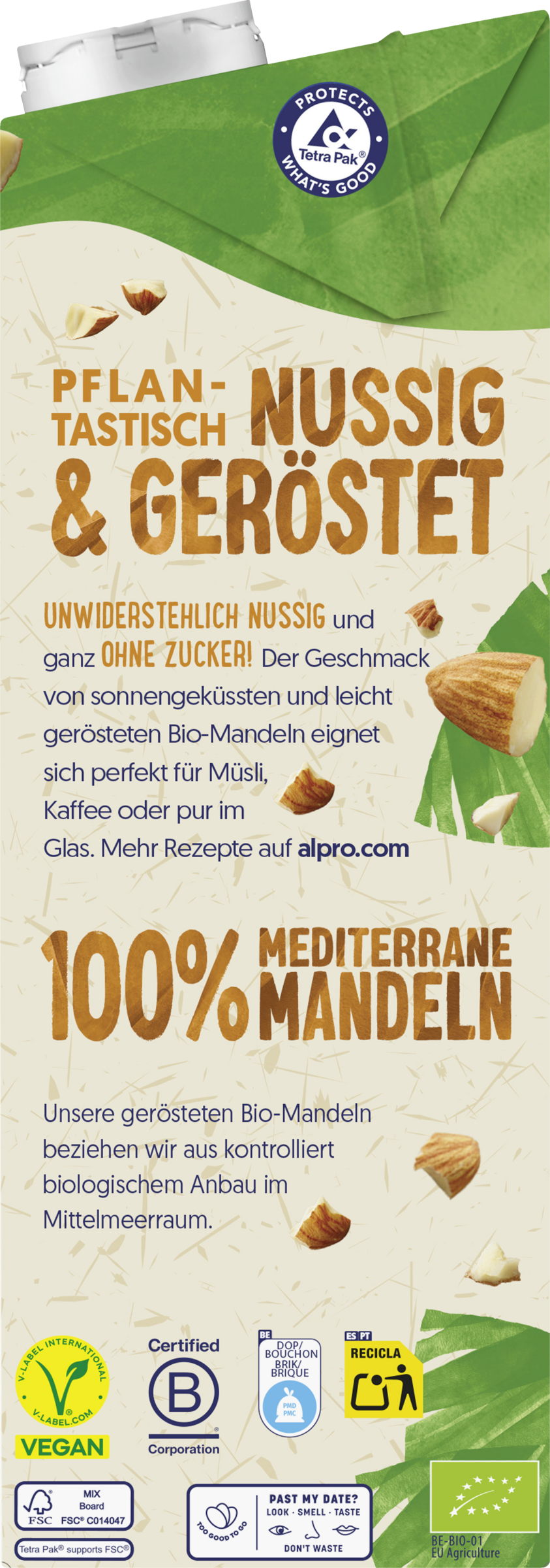 Pflantastisch nussig & geröstet. Unwiderstehlich nussig und ganz ohne Zucker! Der Geschmack von sonnengeküssten und leicht gerösteten Bio-Mandeln eignet sich perfekt für Müsli, Kaffee oder pur im Glas. Die gerösteten Bio-Mandeln werden aus kontrolliert biologischem Anbau im Mittelmeerraum bezogen.
