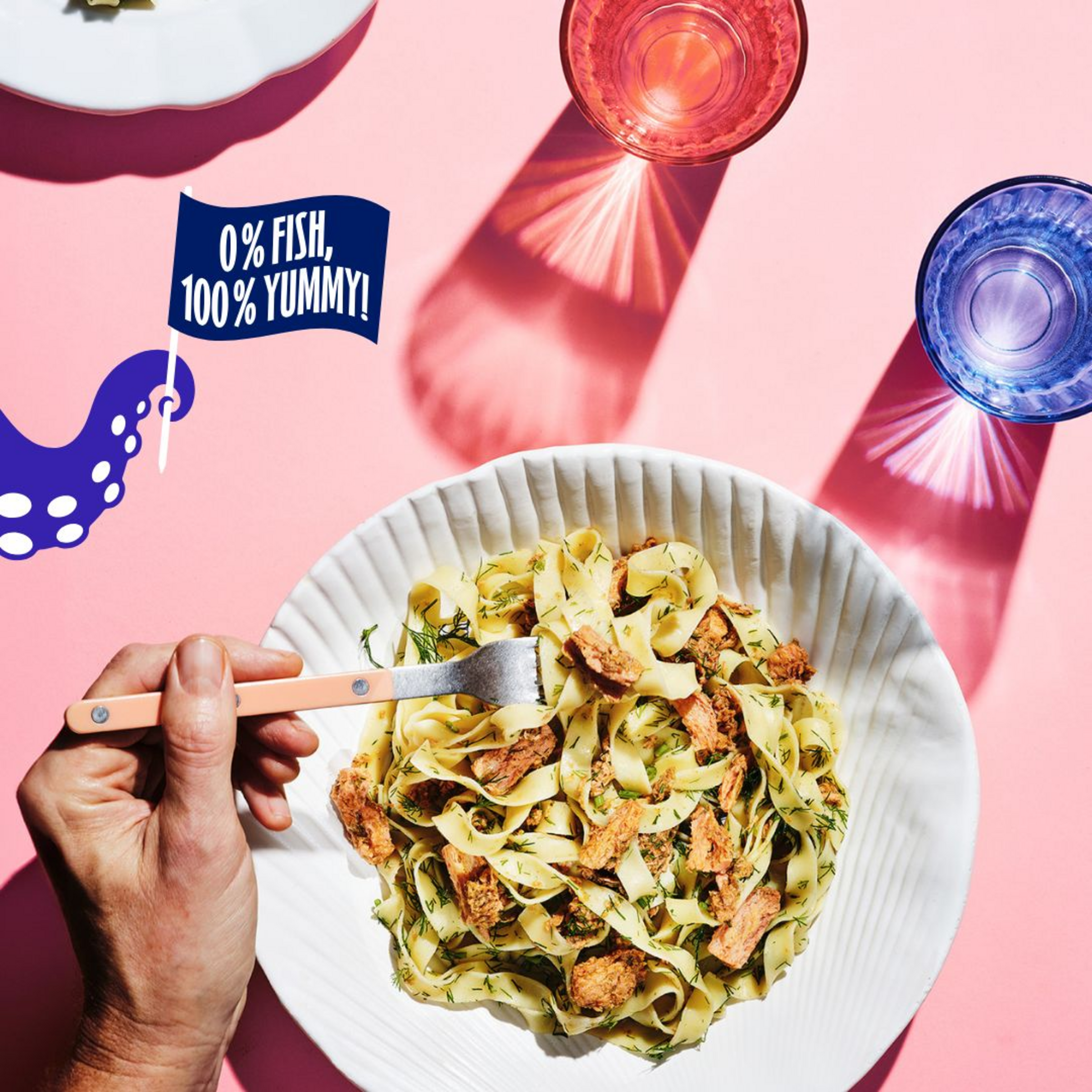 Pflanzlicher Fischersatz mit Pflanzenproteinen und Meeresalgen.