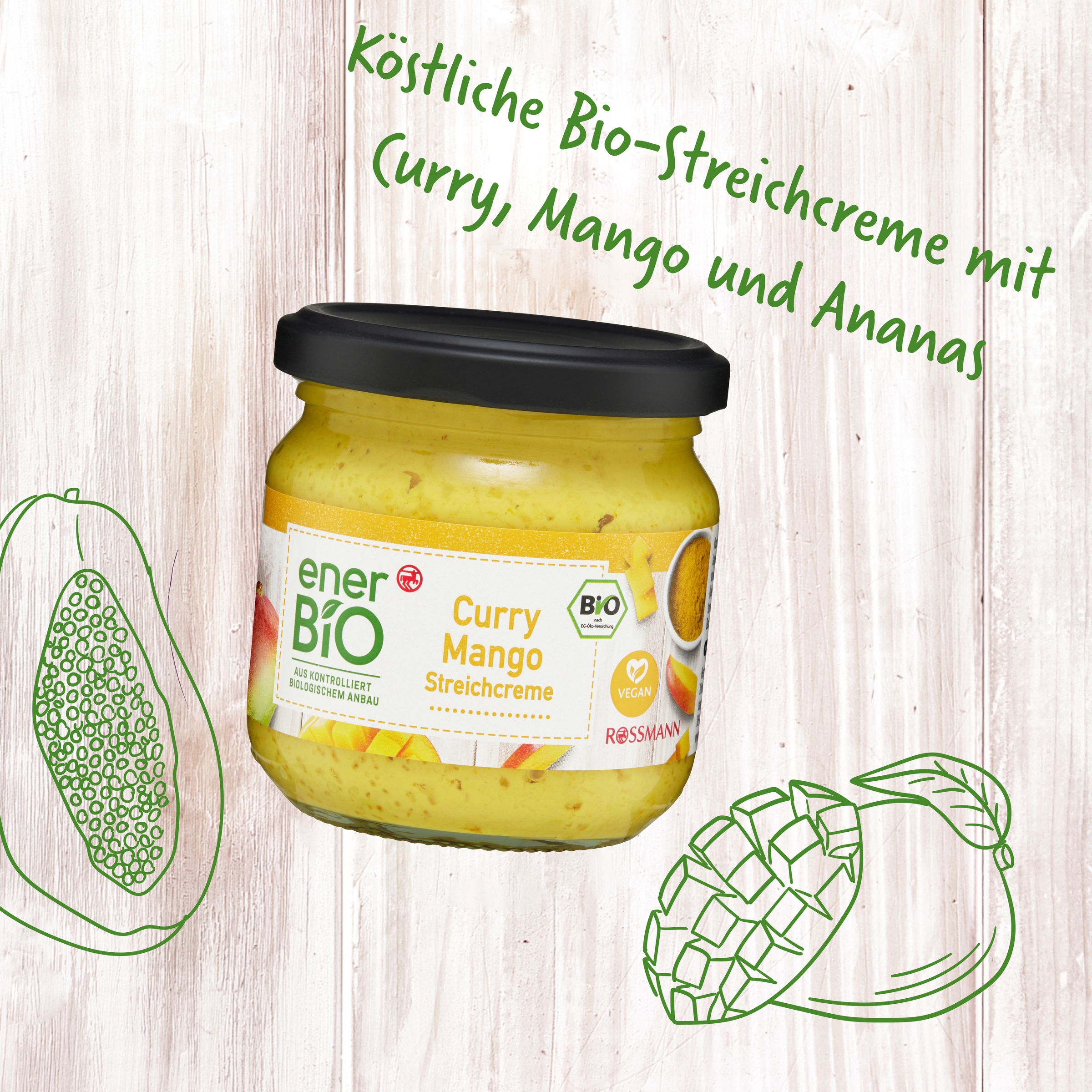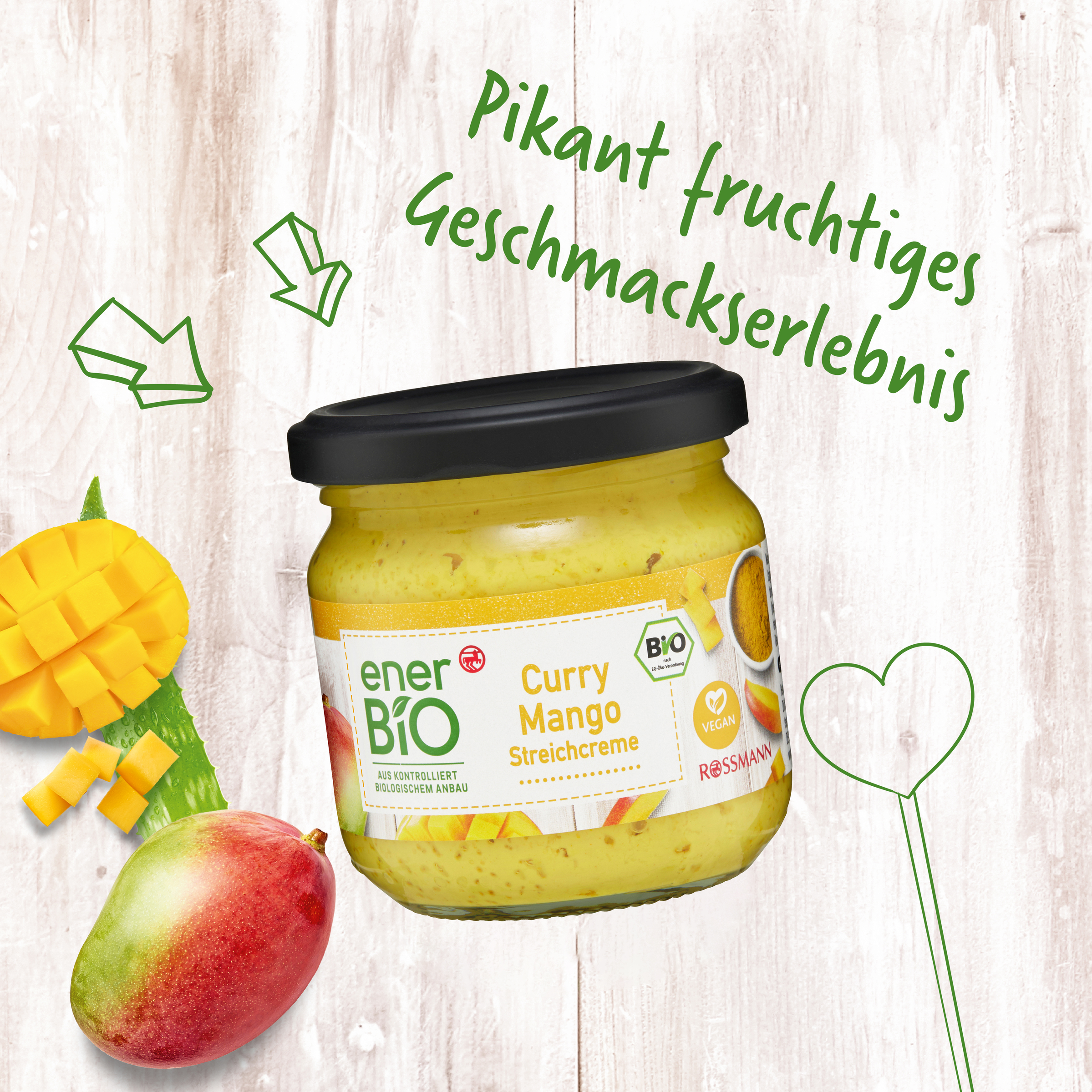 Pikante Frucht-Feier. Vorsicht, besonders lecker! Die köstlich-fruchtige Kombination aus würzigem Curry und exotischer Mango in unserer Streichcreme enerBiO Curry Mango sorgt bei Genuss für regelmäßige aromatische Geschmacksexplosionen in Ihrem Mund.