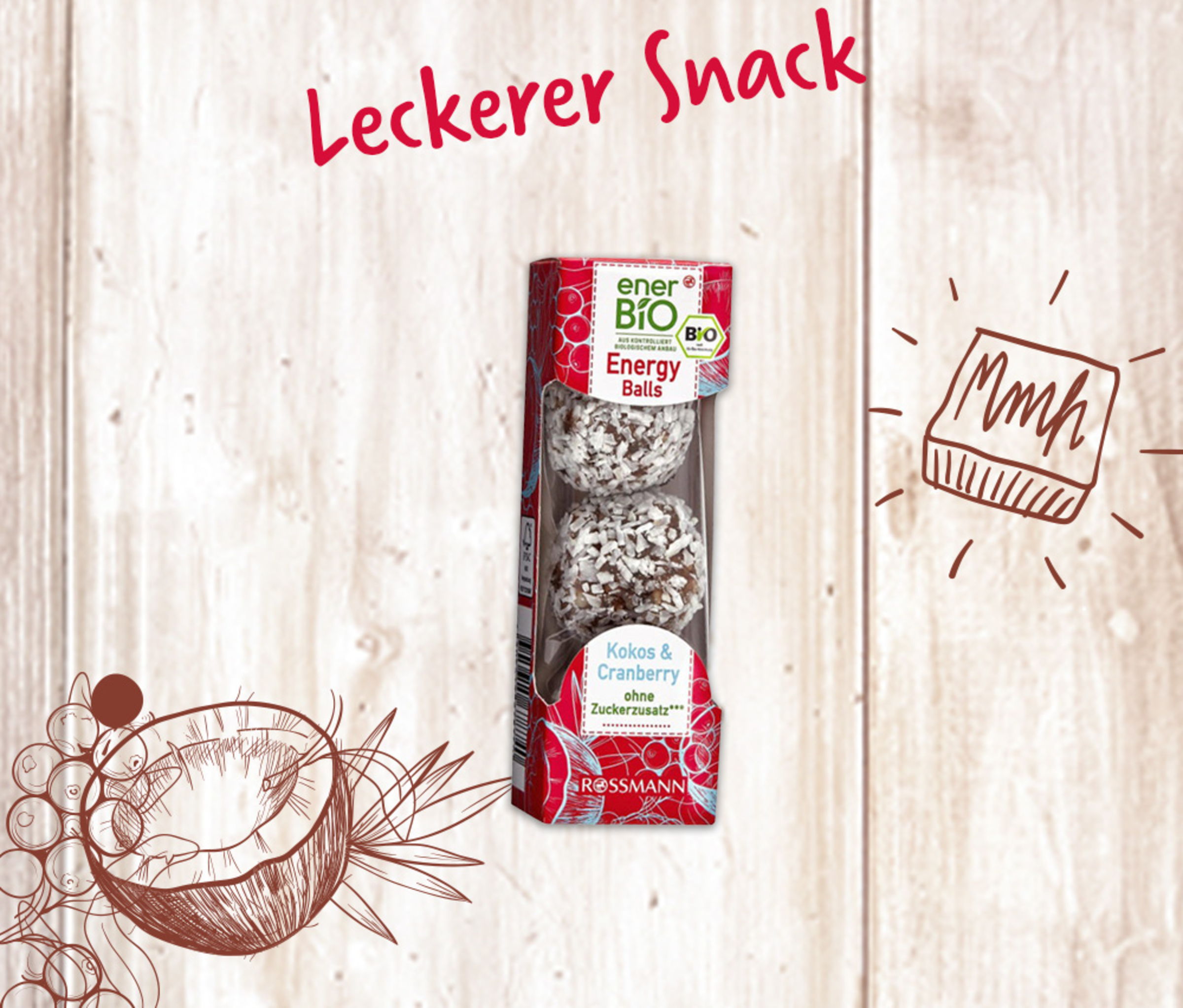 Sehen nicht nur zum Anbeißen aus - So genial können Snacks sein: Unsere schonend hergestellten, bei der Herstellung nicht erhitzten enerBiO Energy Balls mit Cranberries, Kokosflocken und Datteln sind ein runder Hingucker aus Früchten und Nüssen. So werden Sie auf nachhaltige und leckere Art und Weise mit jeder Menge Energie für zwischendurch versorgt. Zugebissen!