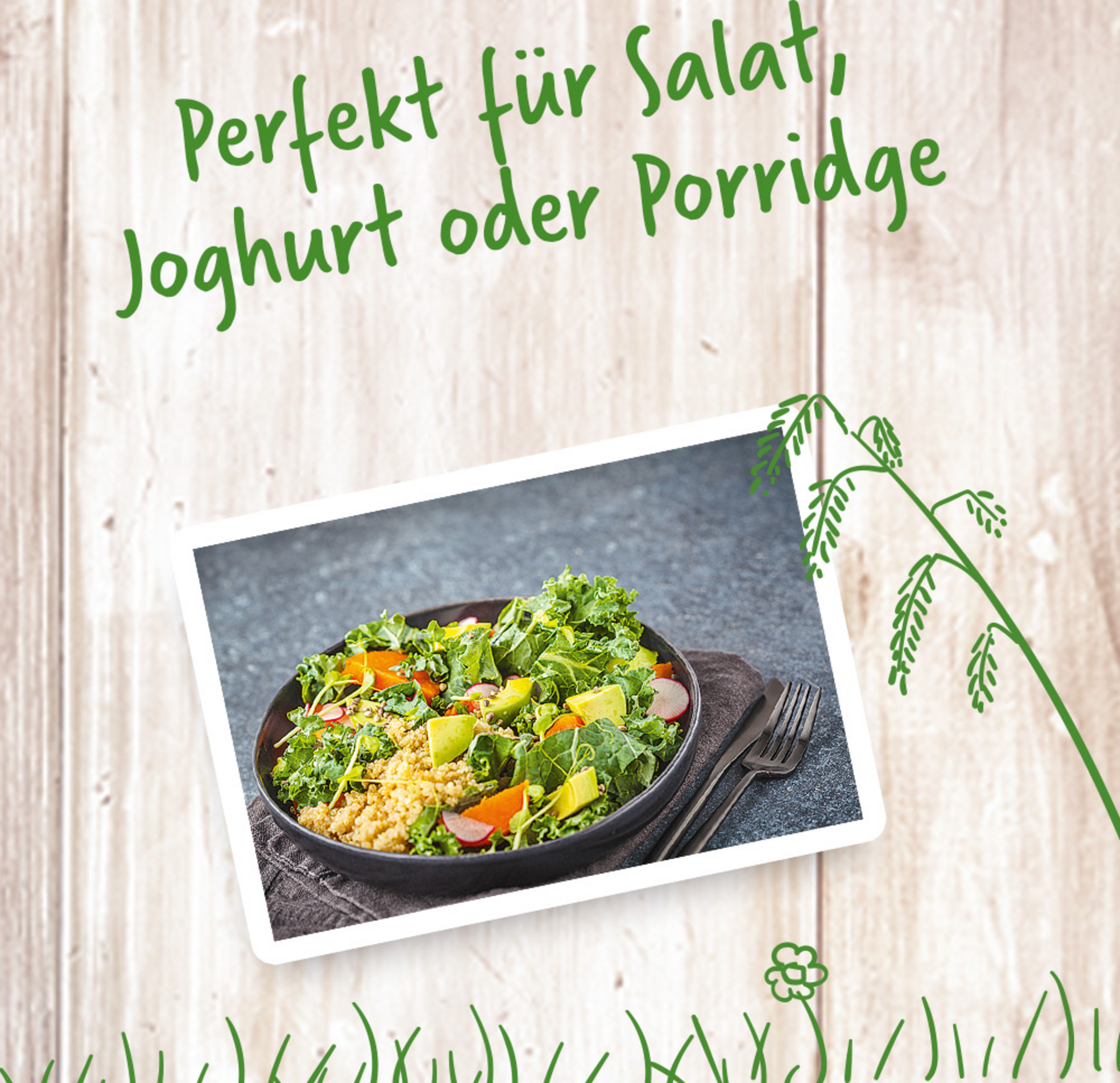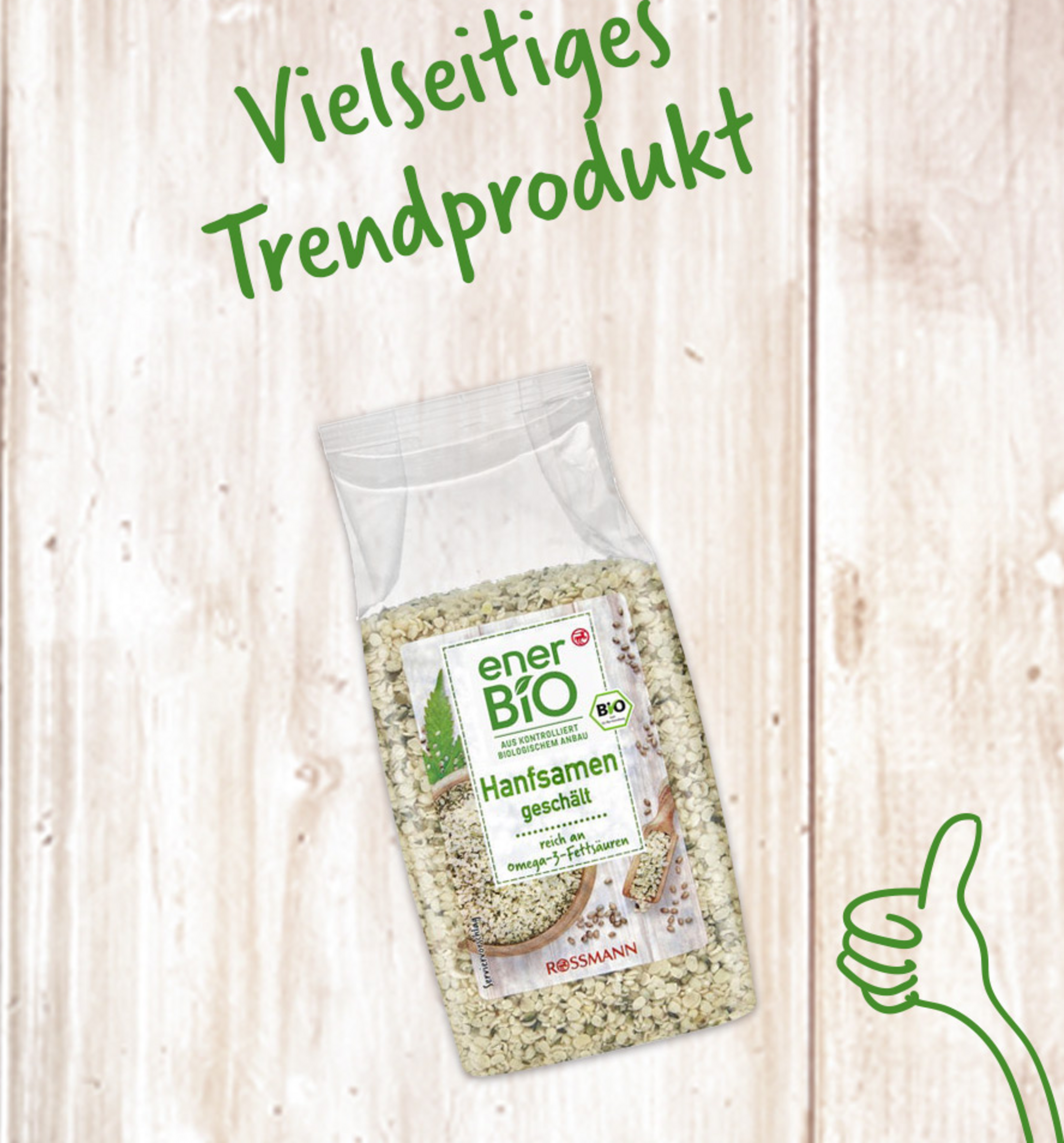 Unsere enerBiO Hanfsamen stecken voll nussig-aromatischem Geschmack, enthalten Omega-3-Fettsäuren – und toppen mit Freude Ihren Salat oder Joghurt.