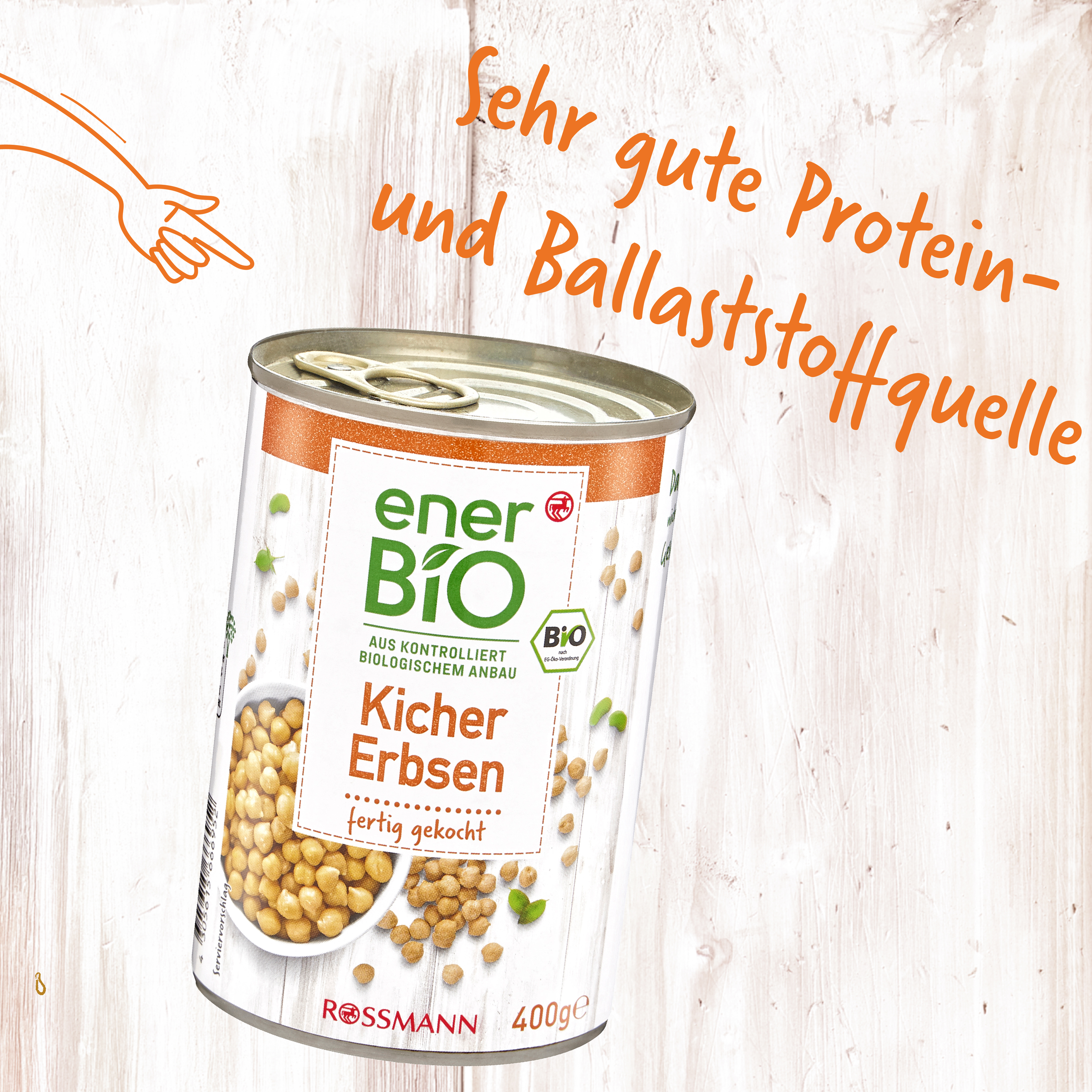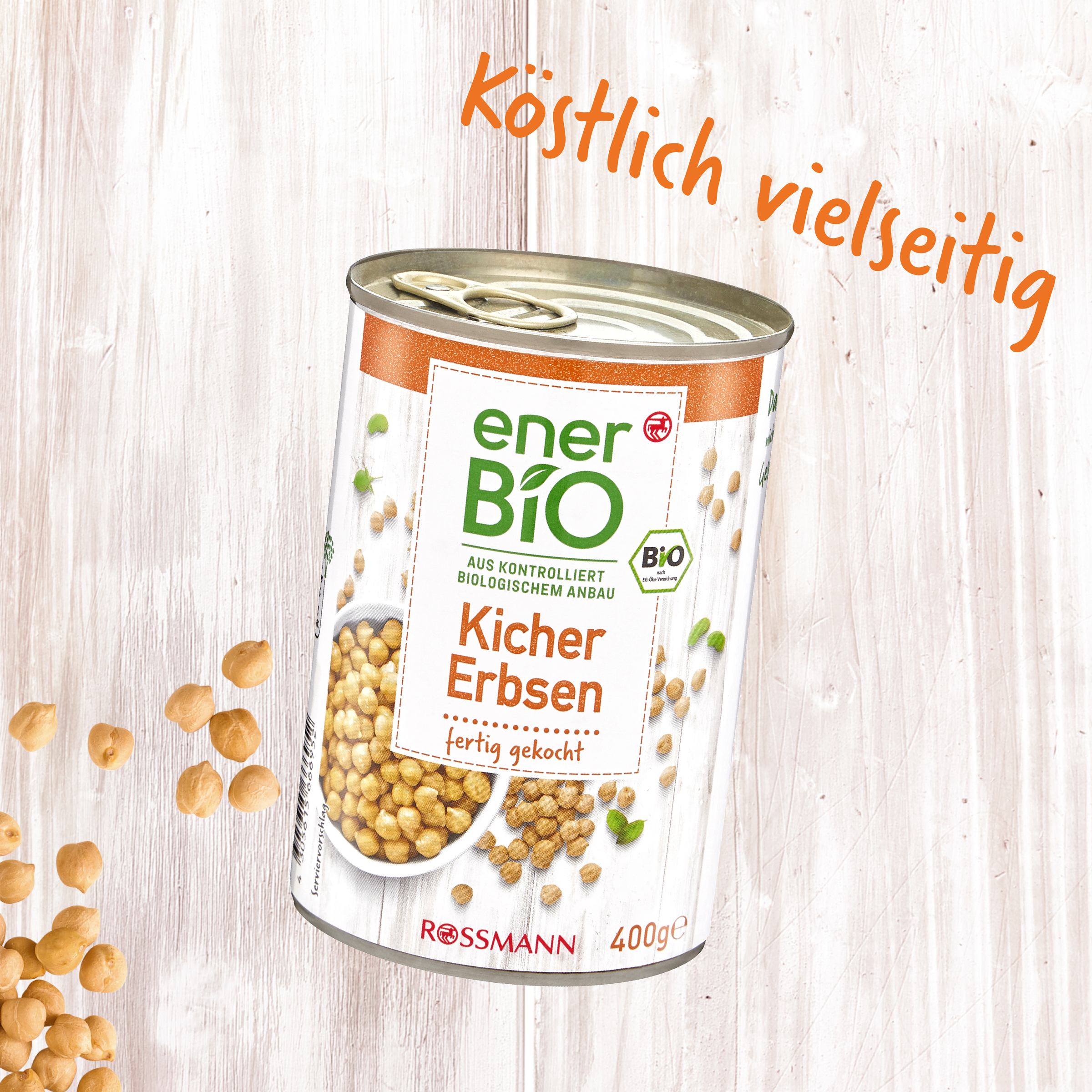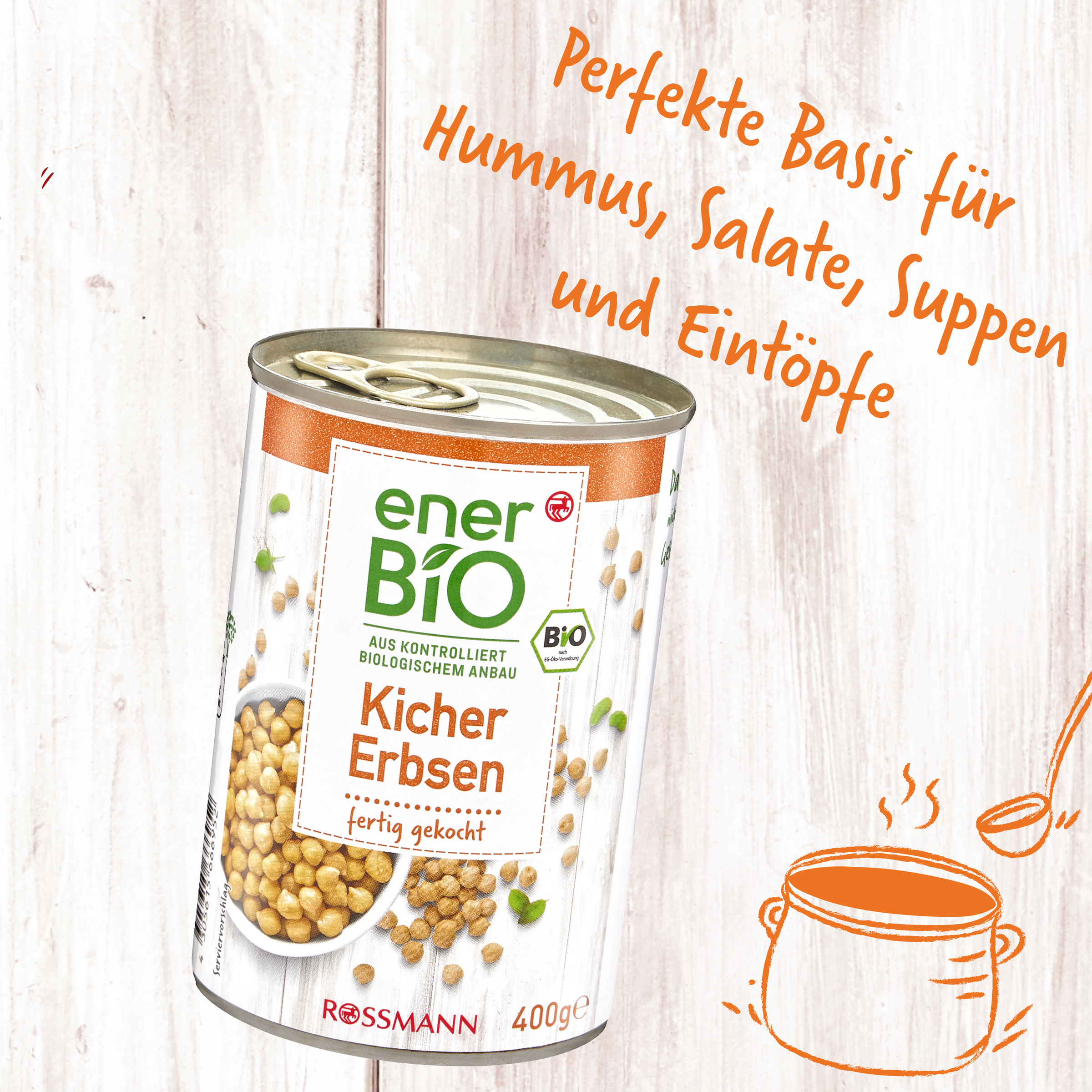 Da lächeln nicht nur Ihre Geschmacksnerven!Mehr als nur ein witziger Name: Unsere enerBiO Kichererbsen sind köstlich vielseitig – und genau die richtige Basis für Hummus aller Arten, Salate, Suppen und Eintöpfe. Und wussten Sie eigentlich, dass Kichererbsen eine sehr gute Protein- und Ballaststoffquelle sind?