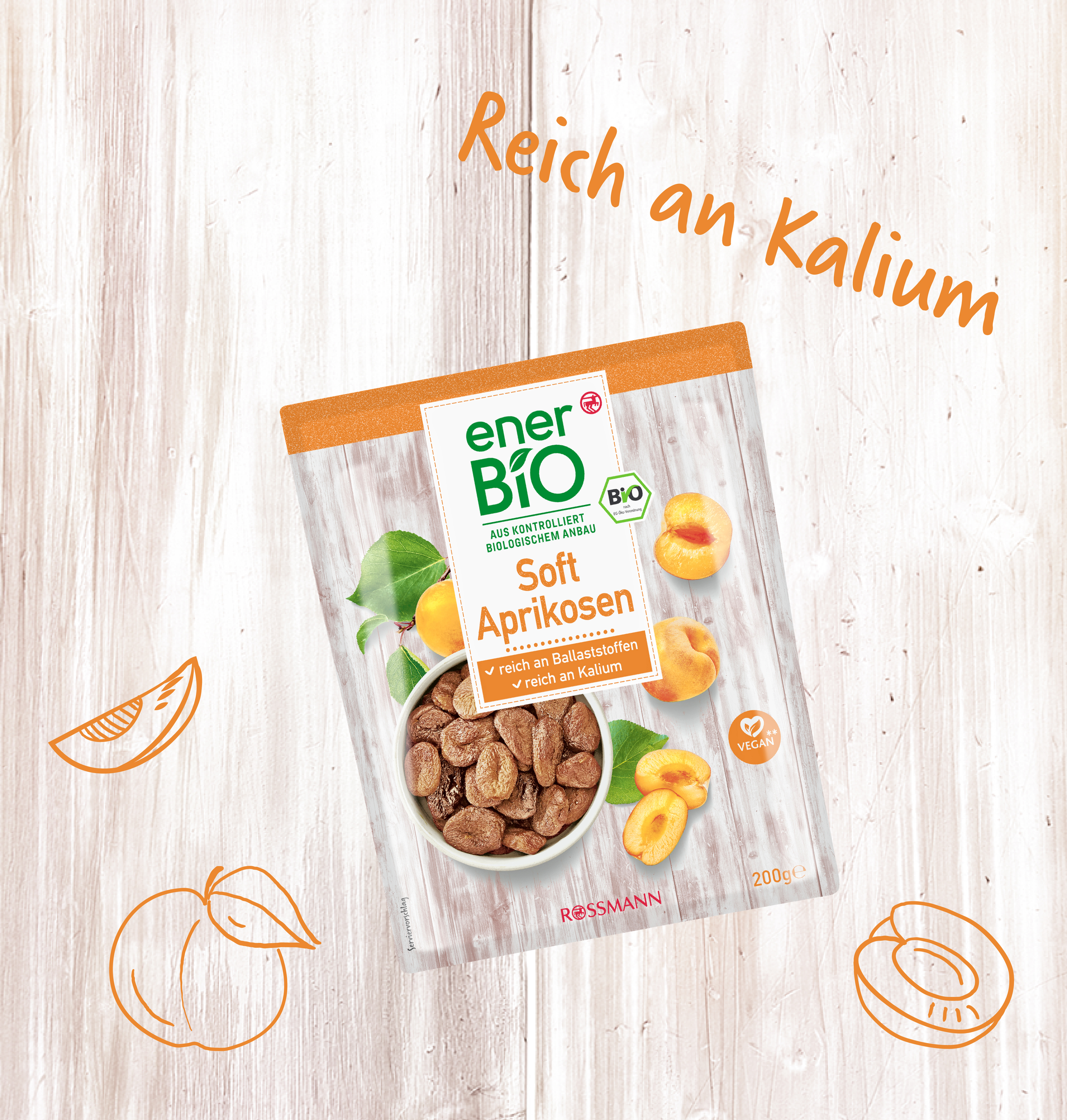 Kleine Softies, ganz stark. Zarter Genuss mit jeder Menge Aroma: Unsere enerBiO Soft-Aprikosen aus sonnengereiften, goldenen Früchten sind reich an Kalium und ein spitzen Snack, aber auch eine prima Back- oder Müslizutat.
