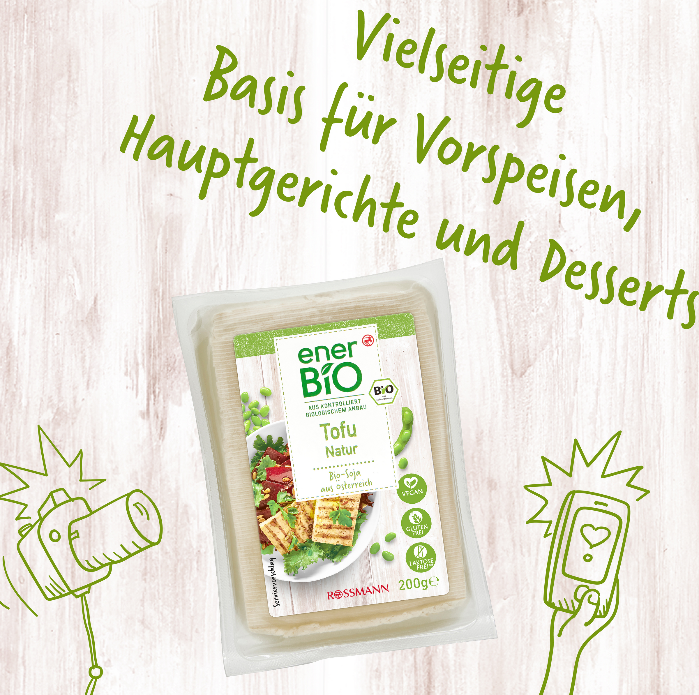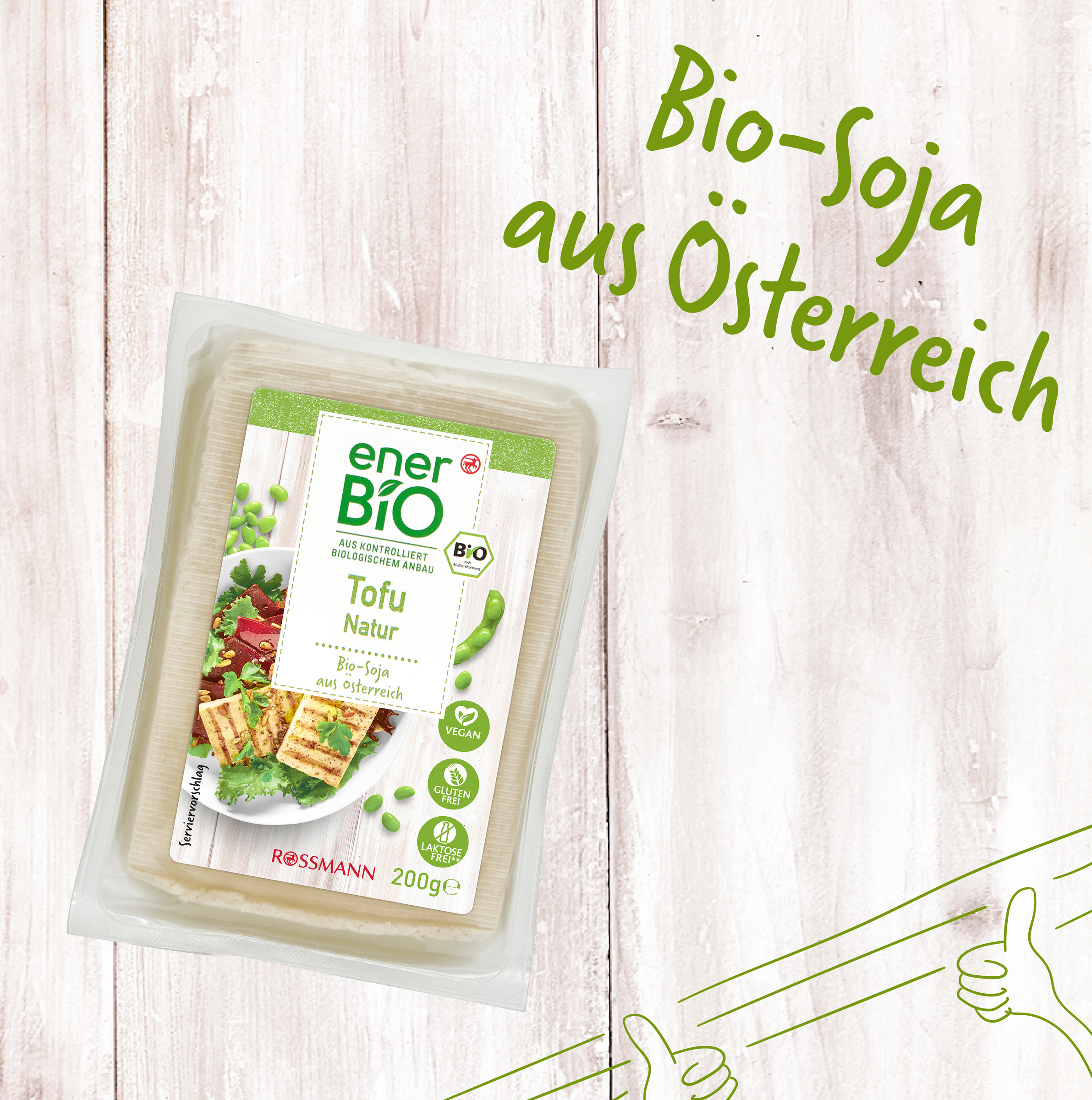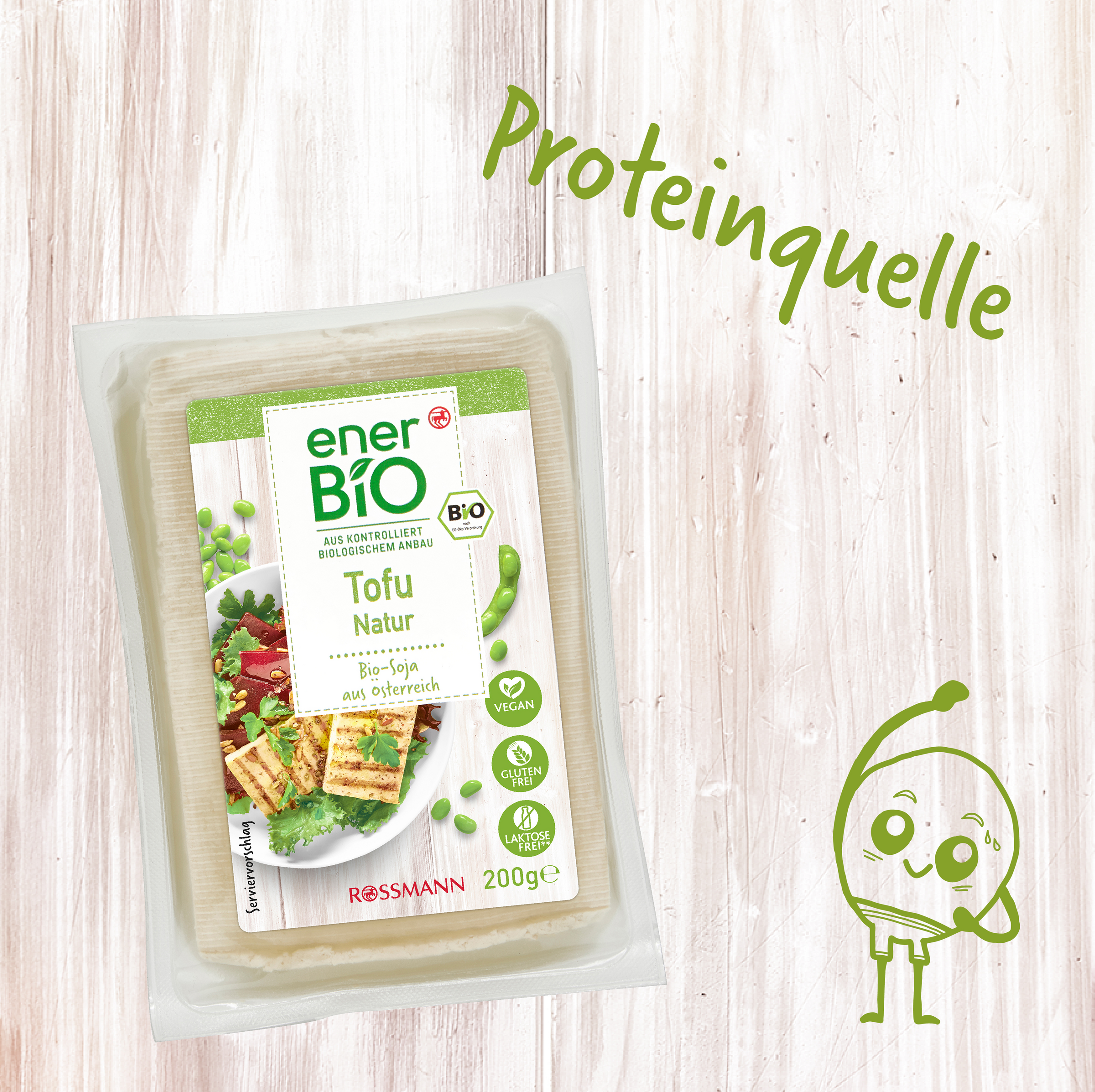 Eine Bohne für alle Fälle.Unser enerBiO Tofu Natur ist eine vielfältige Basis zur Weiterarbeitung für Ihre liebsten Vorspeisen, Hauptgerichte und Desserts. Ob würzig, süß oder sauer – das universell einsetzbare Bohnenprodukt lässt sich vielseitig weiterarbeiten und schmeckt so etwa als köstliche Proteinquelle im Salat, als Fleischersatz in der asiatischen Gemüsepfanne, oder karamellisiert als Dessert-Basis.Hätten Sie’s gewusst? Für unser Tofu Natur vermahlen wir gequollene Sojabohnen, sieben die Schalen- und Faserstoffe heraus und gerinnen die Eiweiße, welche wir zu festen Tofublöcken verarbeiten.