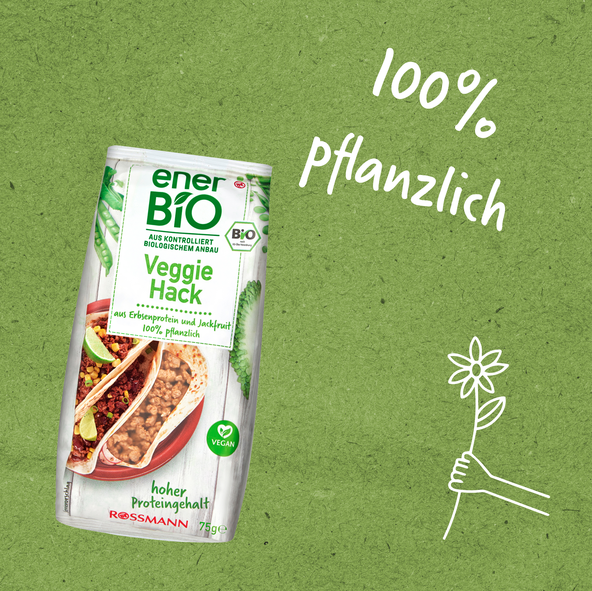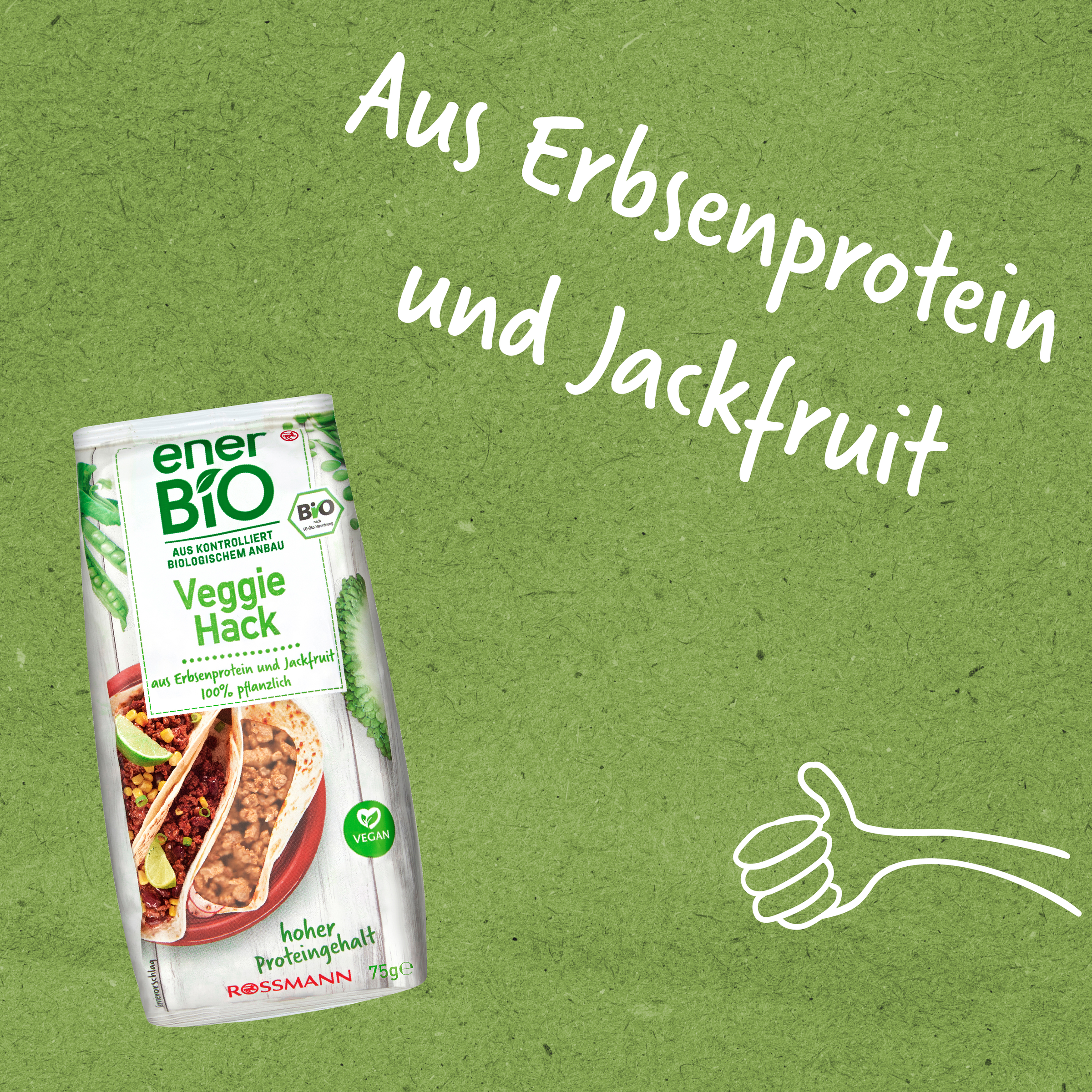 Zeit für Jackhack! Hackfleisch hat einen neuen Konkurrenten: Unser enerBiO Veggie Hack wird aus Erbsenprotein- und Jackfruitpulver hergestellt – und das bissfeste Ergebnis kann sich absolut schmecken lassen. Das leckere Hack ist ideal als Fleischersatz für Veganer, Proteinliebhaber oder auch Allergiker geeignet.