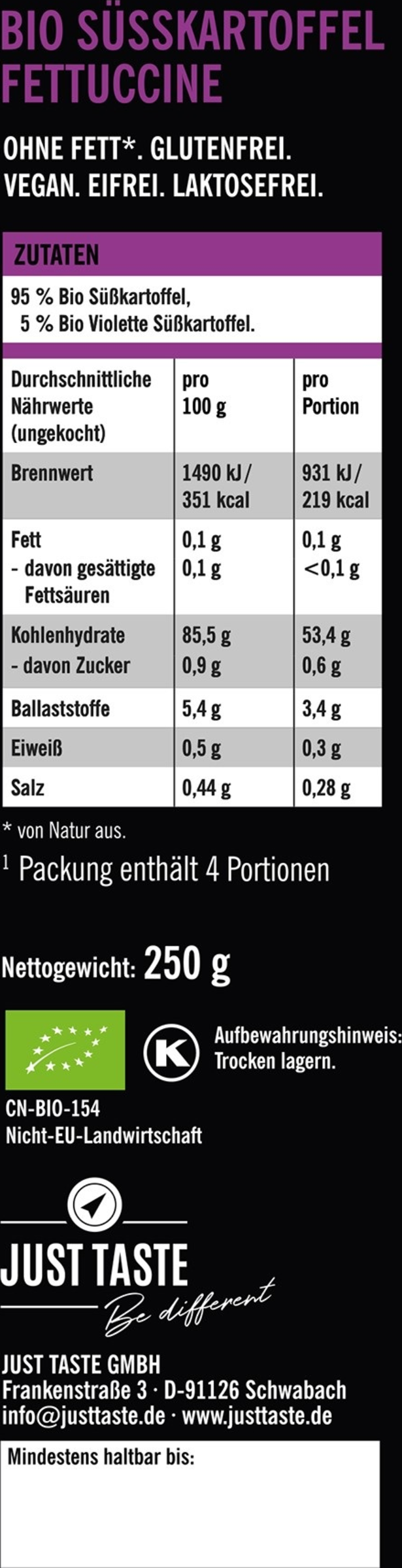 Bio Lila Süßkartoffel Glas Fettuccine
