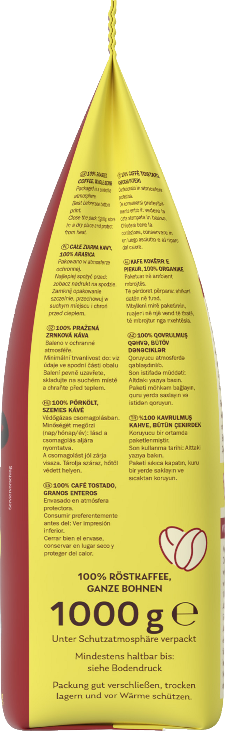 100% Röstkaffee, ganze Bohnen