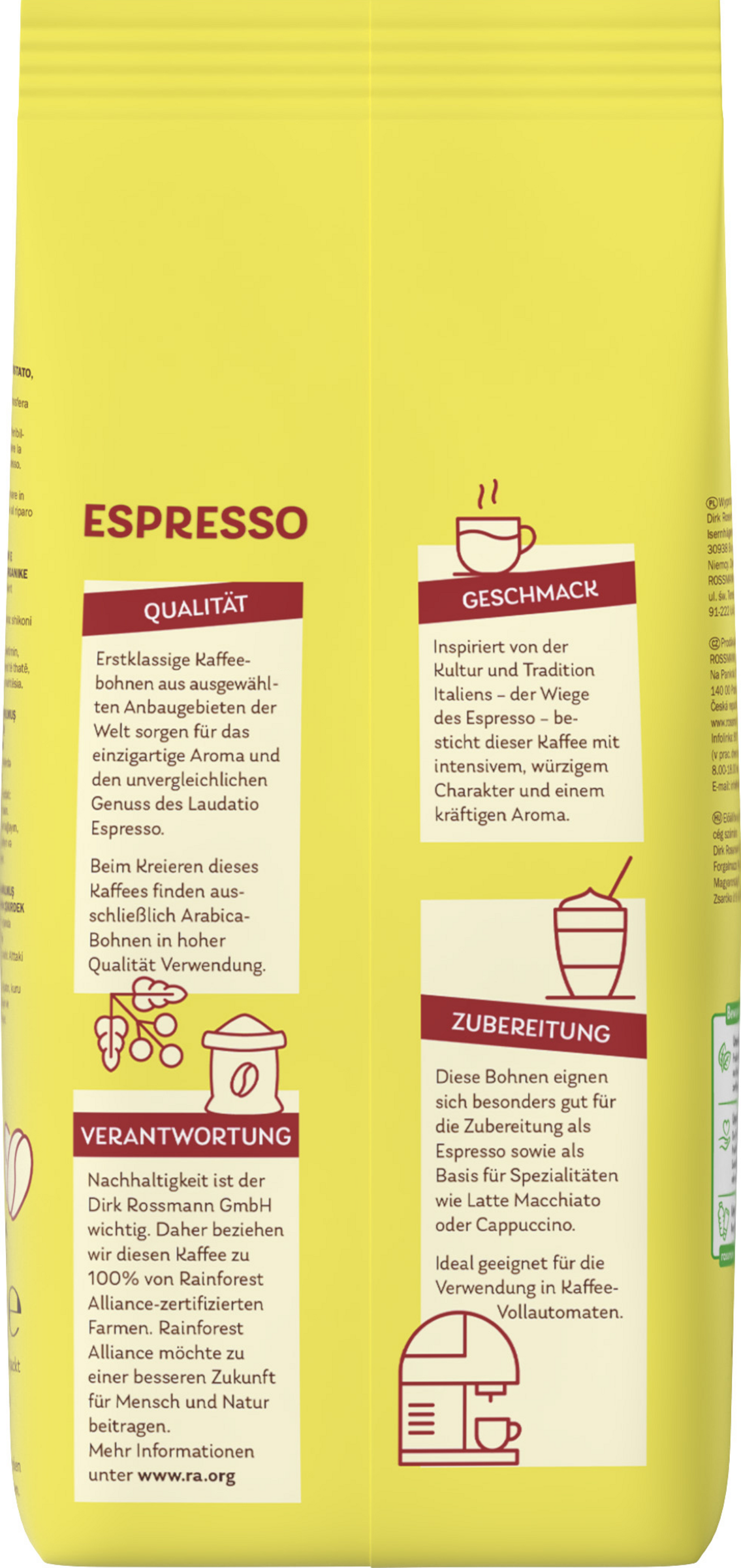 Erstklassige Kaffeebohnen aus ausgewählten Anbaugebieten der Welt sorgen für das einzigartige Aroma und den unvergleichlichen Genuss des Laudatio Espresso. Beim Kreieren dieses Kaffees finden ausschließlich Arabica-Bohnen in hoher Qualität Verwendung.