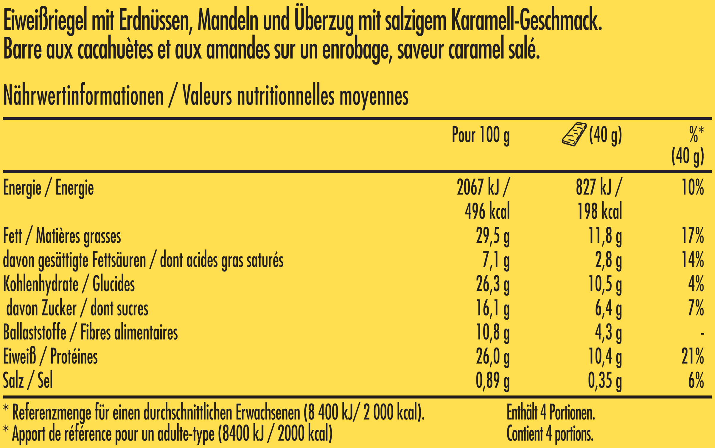 | 100 g | 1 Riegel (40 g) | |||
