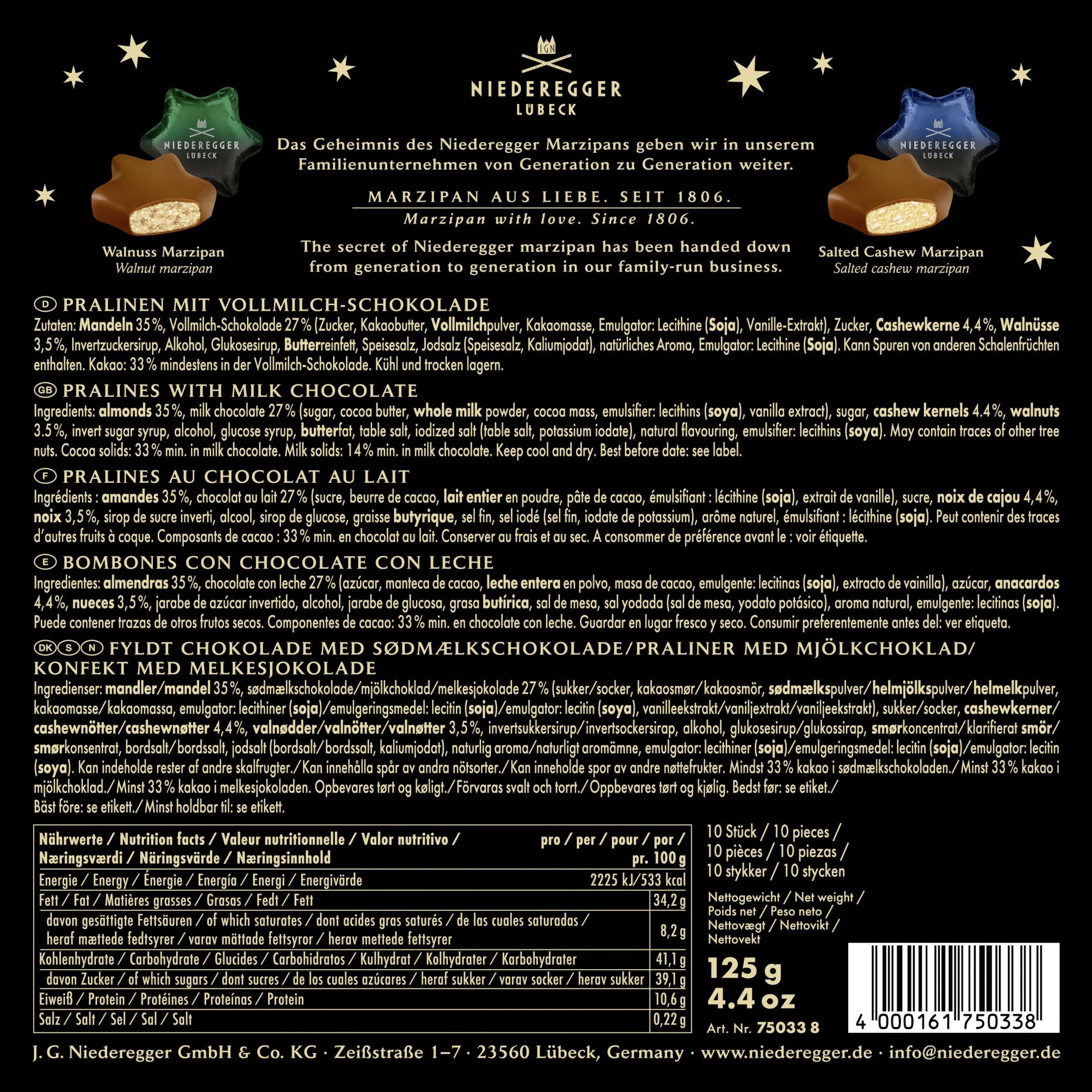 Erleben Sie den einzigartigen Genuss feinster Lübecker Marzipanspezialitäten mit der Niederegger Marzipan Edition im Stern-Design. Sorgt für ein besonderes Geschmackserlebnis in der Advents- und Weihnachtszeit.