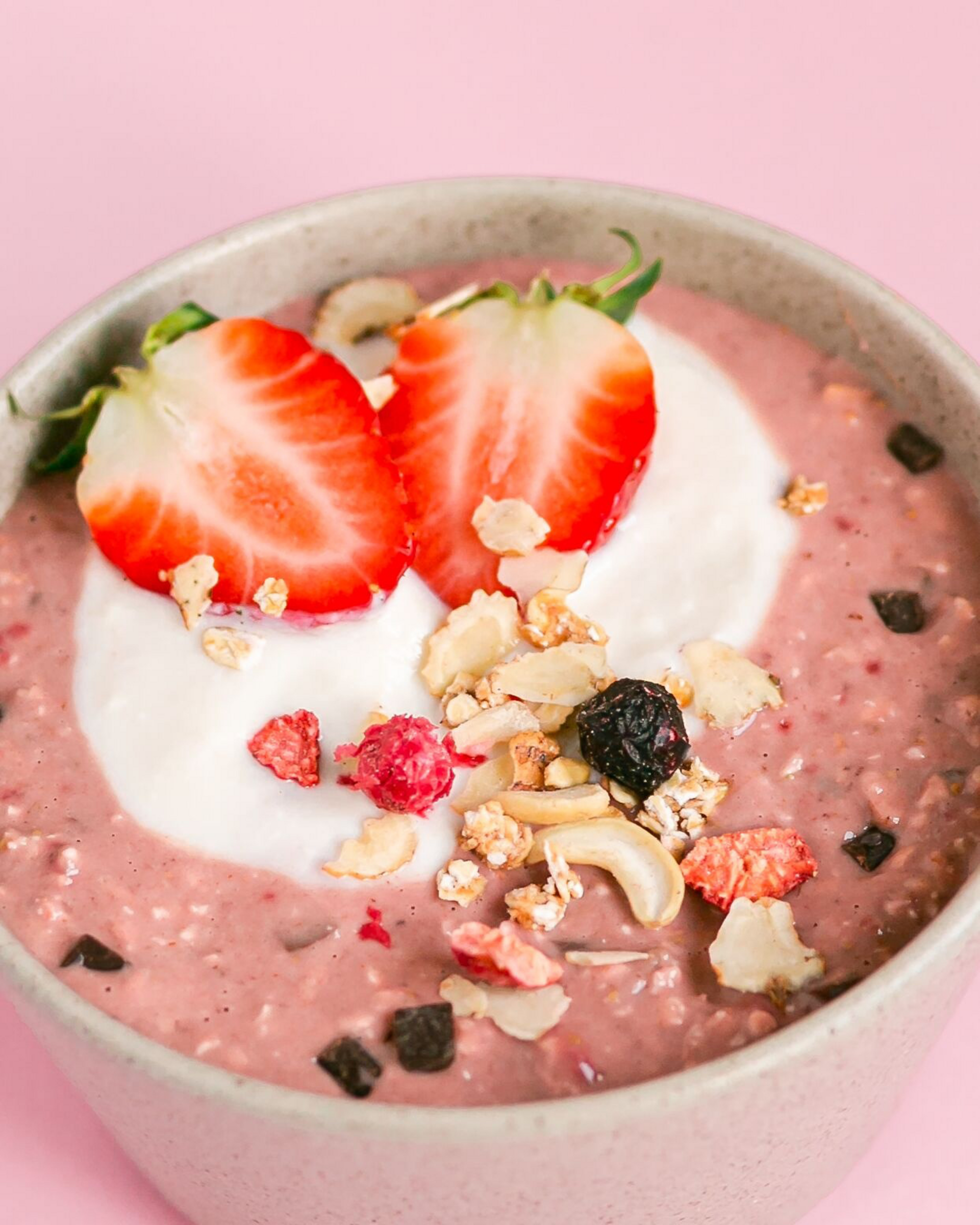 Mit ihr startest du dank fruchtig-süßen Erdbeeren, verführerisch leckerem Haferghurt und zartherben Schokochips garantiert happy in den Tag.