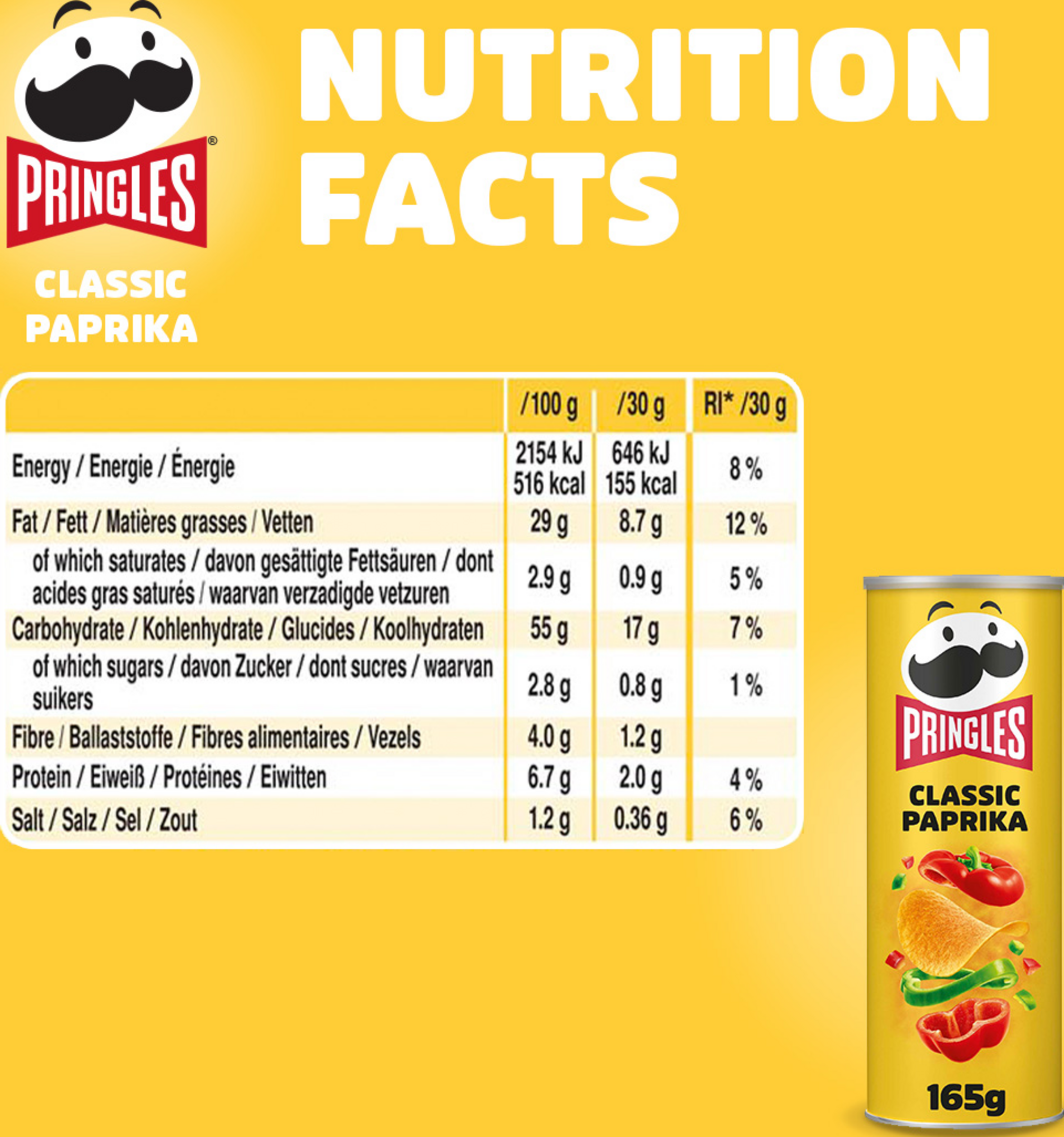- dein Pringles Ritual: Die klassisch pikante Würze des Snacks mit Paprika-Geschmack kitzelt die Sinne und die einzigartige Form lädt zum Entdecken und Spielen ein – es gibt unzählige Arten, Pringles zu snacken!