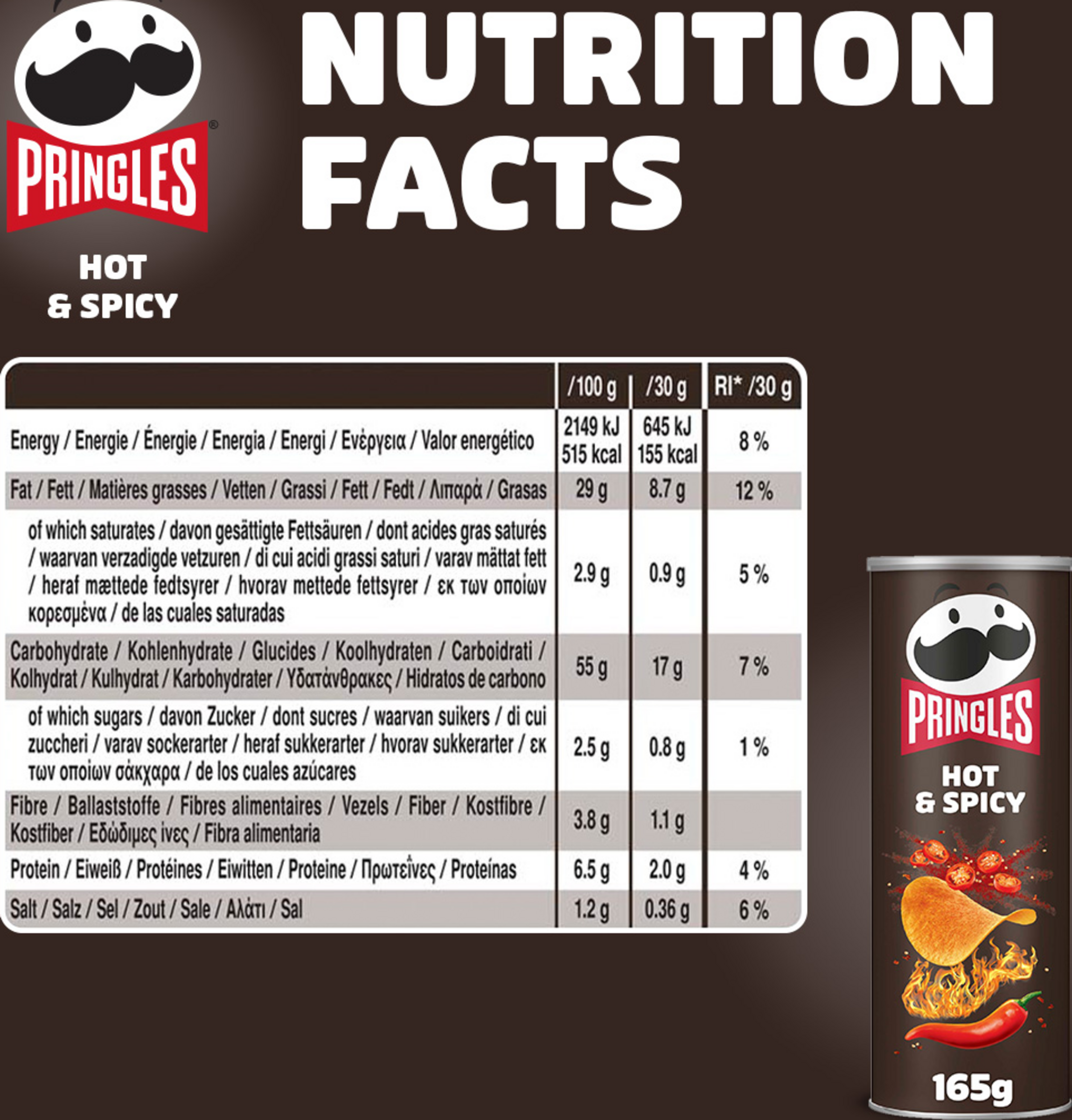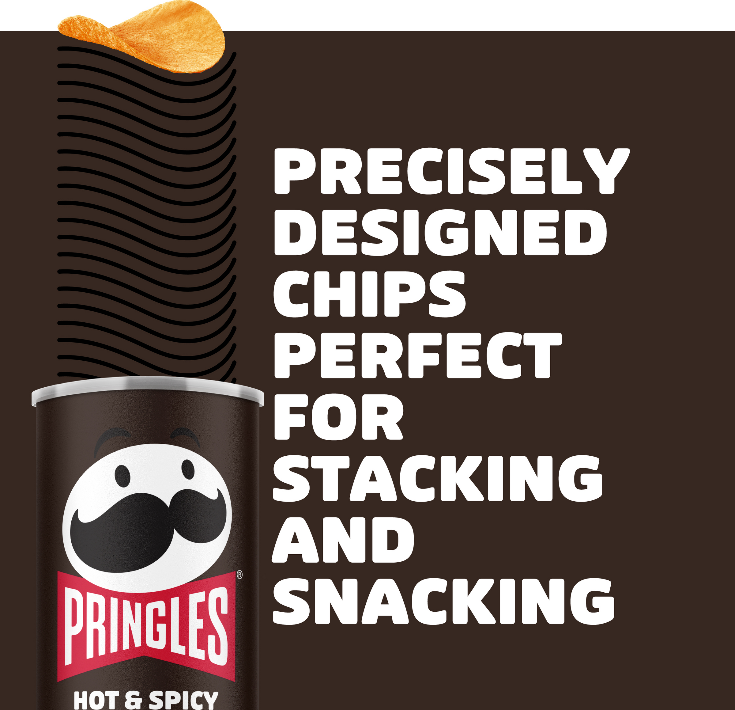 - dein Pringles Ritual: Die scharfen Chips wecken deine Geschmacksnerven mit einem Kick. Die einzigartige Form lädt zum Entdecken und Spielen ein – es gibt unzählige Arten, Pringles zu snacken!