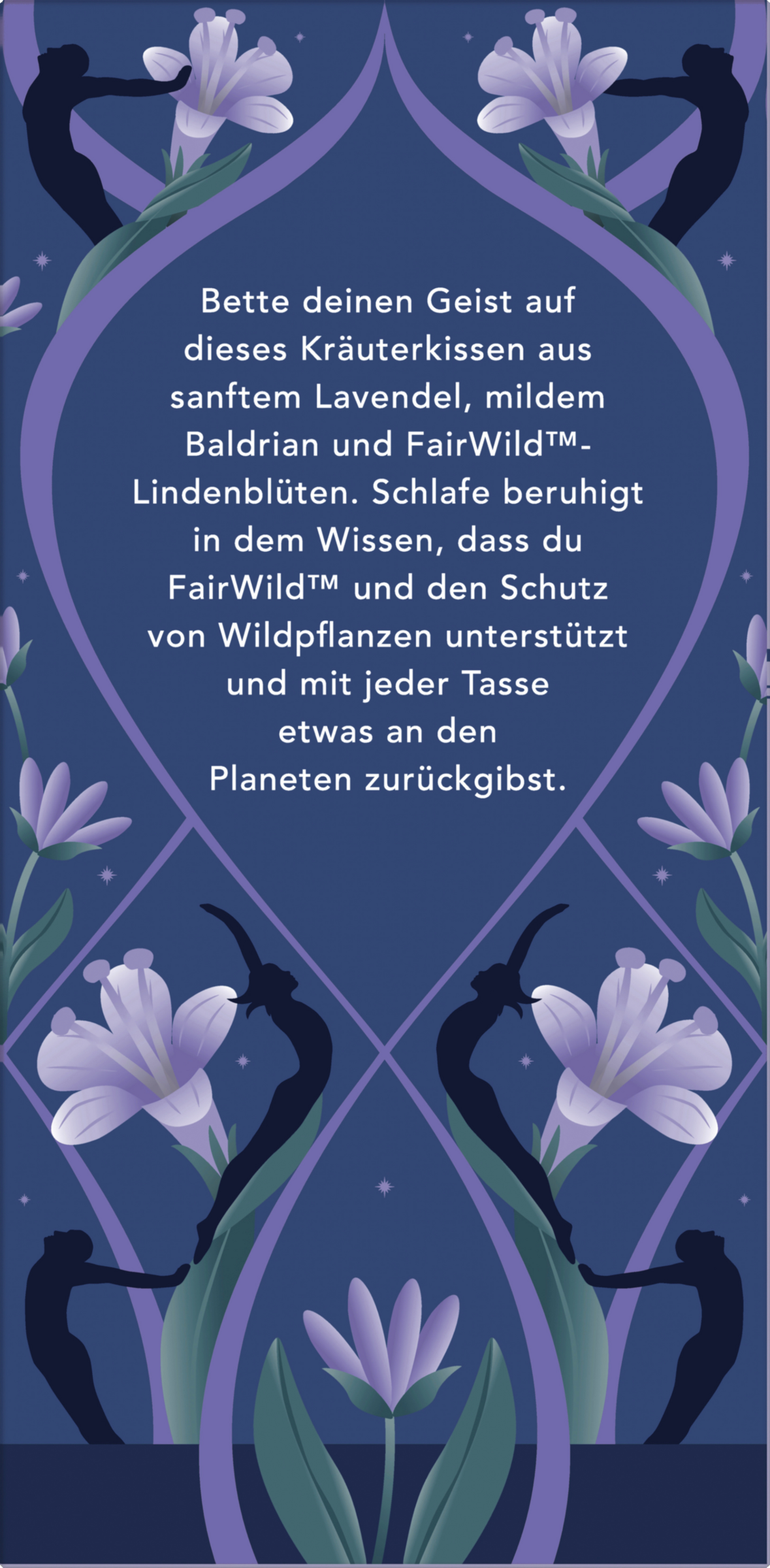 Dieser Kräutertee enthält Lavendel: Der Lavendel gehört zur gleichen duftenden Familie wie die Minze. Seit Jahrhunderten wird er wegen seiner farbenprächtigen, aromatischen Blüten und ätherischen Öle kultiviert. Der exquisite Lavendelduft ist berühmt für seine entspannende Wirkung. Allein die zarte Duftwolke der Blüte relativiert alle Dinge.