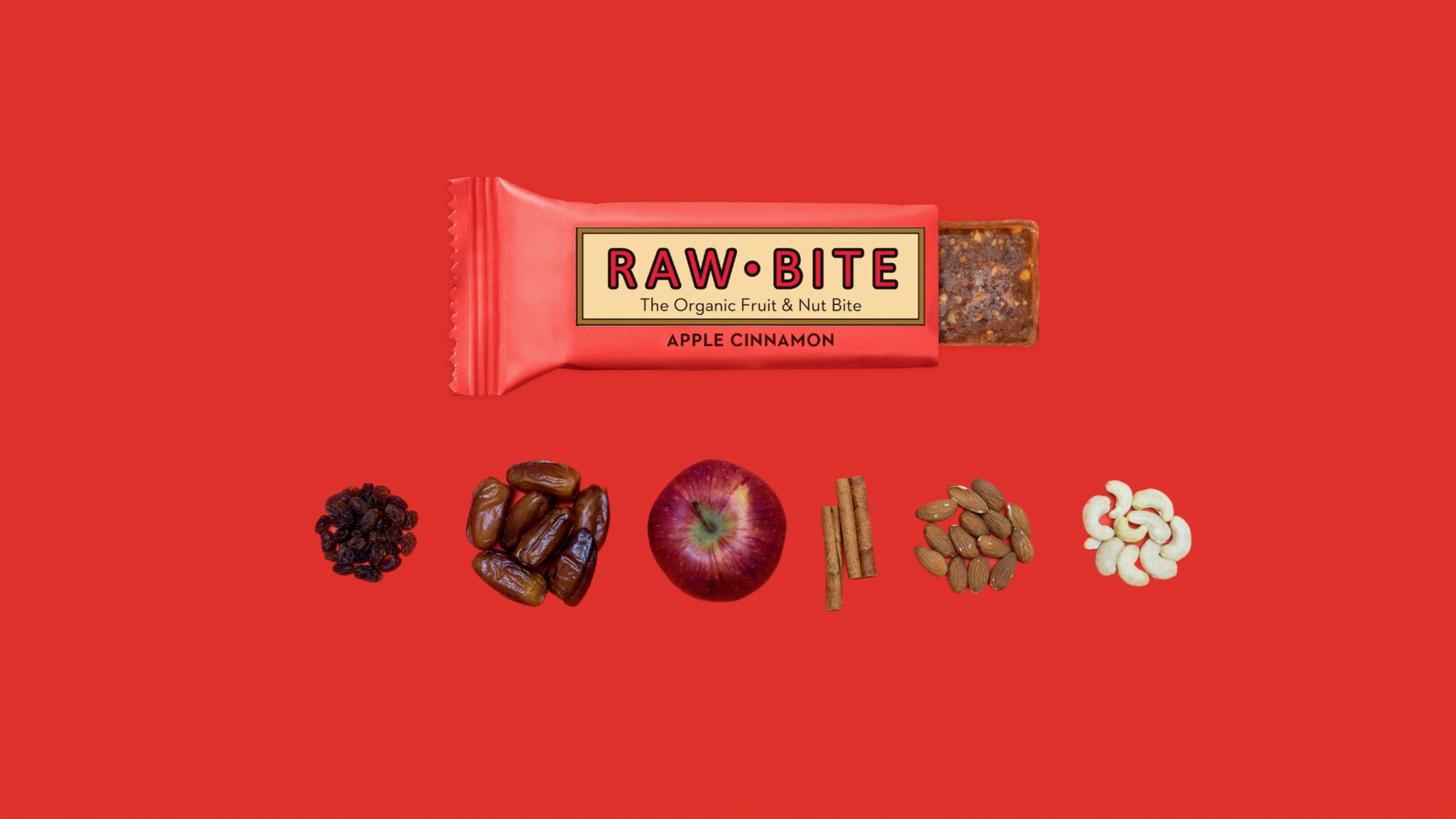 Zimt-Fans aufgepasst! RAWBITE Apple Cinnamon ist die To-go-Version von Omas Apfelkuchen. Mit dem süßlich-würzigen Geschmack von Äpfeln, Mandeln und Zimt wird's damit überall gemütlich – auch ohne Kamin und Wolldecke.
