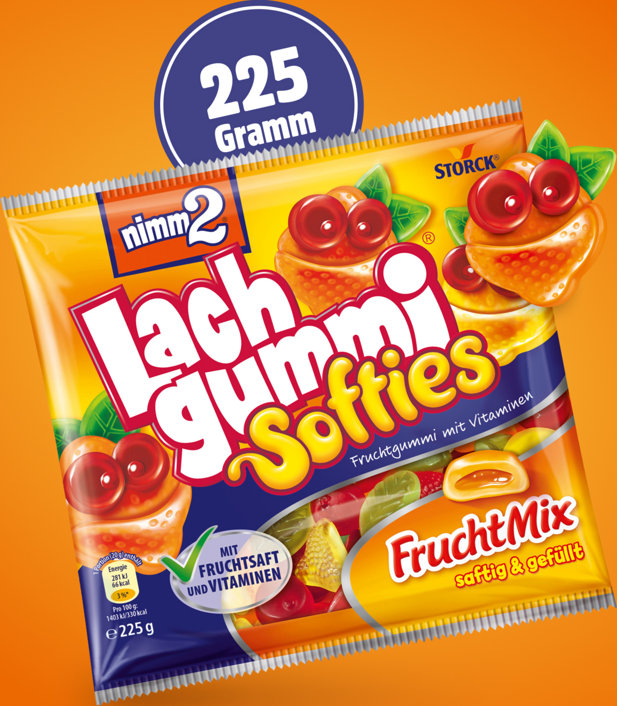 nimm2 Lachgummi – Vitamine und Naschen. Das spaßige Fruchtgummi mit Fruchtsaft und Vitaminen. Mit viel Abwechslung sorgt nimm2 Lachgummi für extra viel Naschspaß in der ganzen Familie. Die Kombination aus dem guten von nimm2 und den fröhlichen Fruchtgummi-Figuren sorgt bei jedem für ein strahlendes Lachen. So gut schmeckt lustig.
