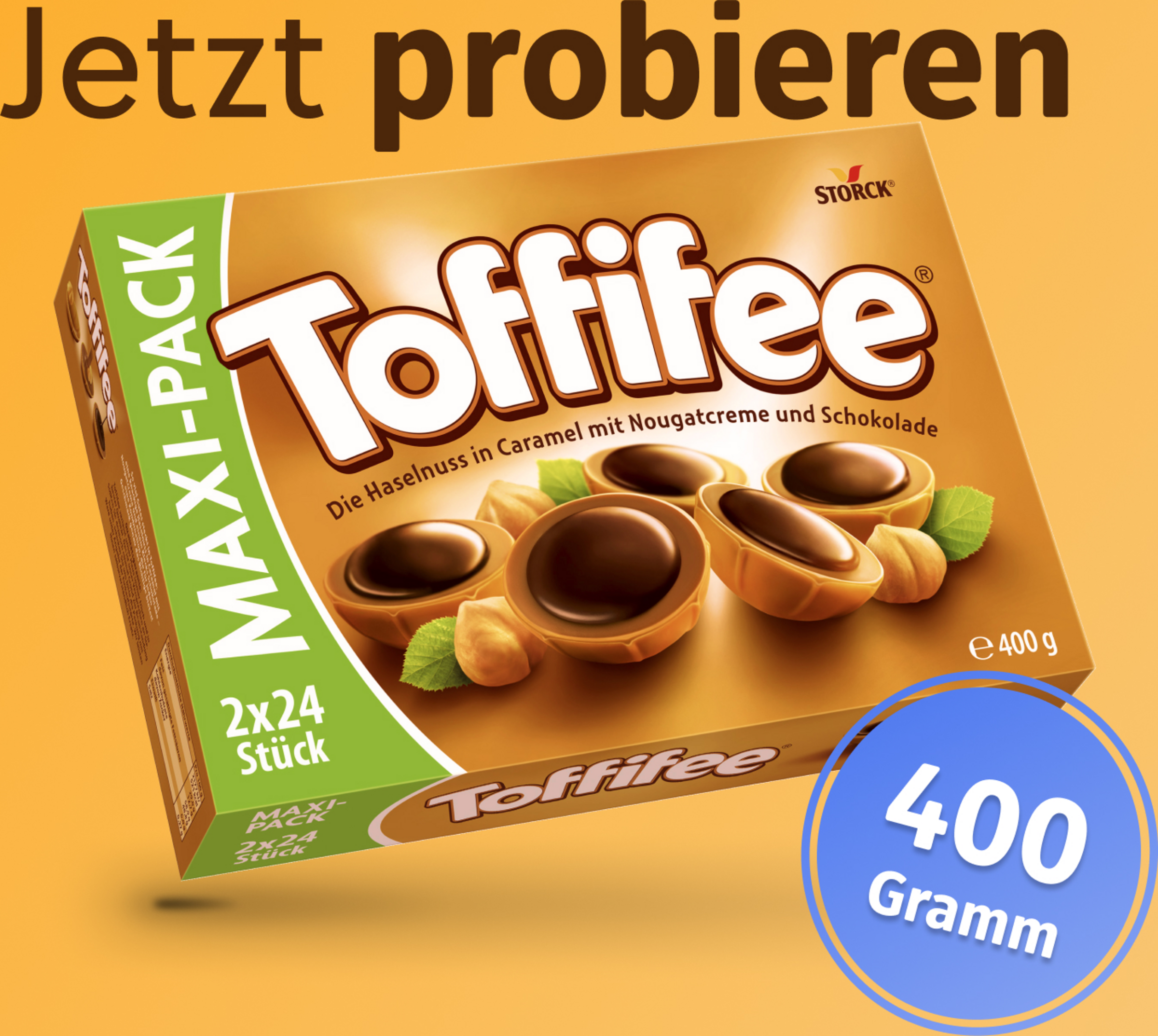 Es steckt viel Spaß in Toffifee! Egal ob jung oder älter, groß oder klein, Mama oder Papa, großer Bruder, kleine Schwester - in Toffifee steckt, was allen schmeckt: Leckeres Karamell, knackig geröstete Haselnuss, zarte Nougatcreme sowie eine kräftige Schokoladenschicht als Tüpfelchen auf dem „Mmhh“. Der Toffifee Maxi-Pack – für noch mehr Spaß und gemeinschaftliche Genussmomente.