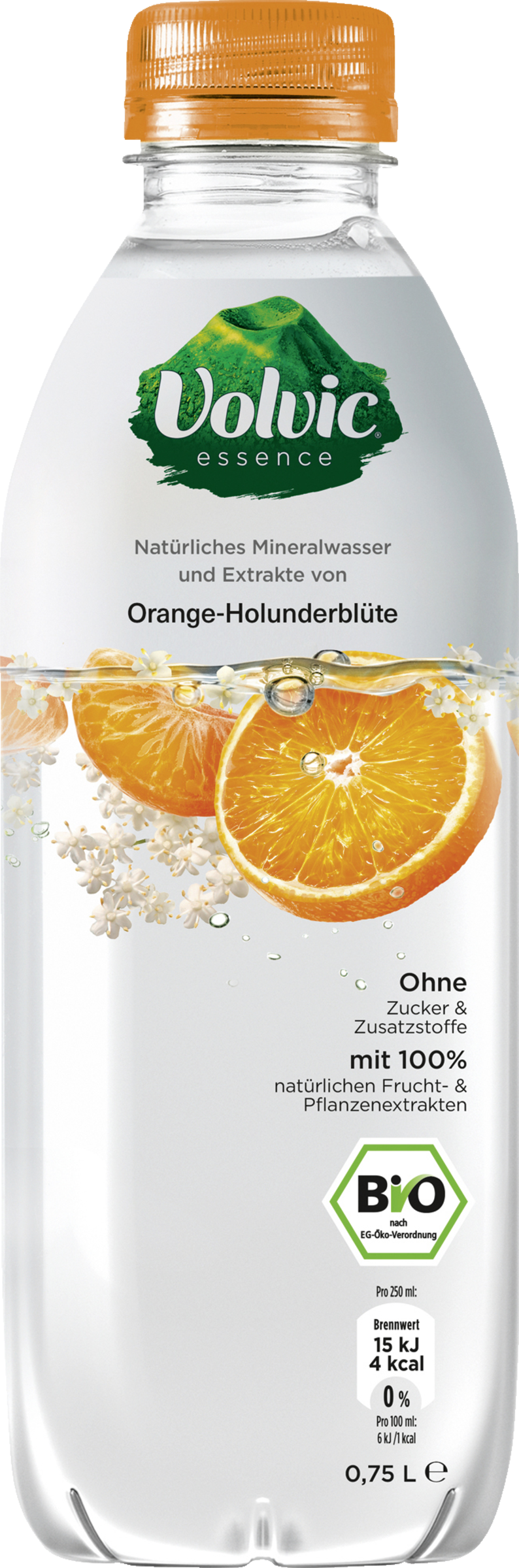 Natürliches Mineralwasser Volvic (98,6%), Bio-Zitronensaft aus Zitronensaftkonzentrat (1,1%), Bio-Orangenextrakt, Bio -Mandarinenextrakt, Bio-Holunderblütenextrakt.
