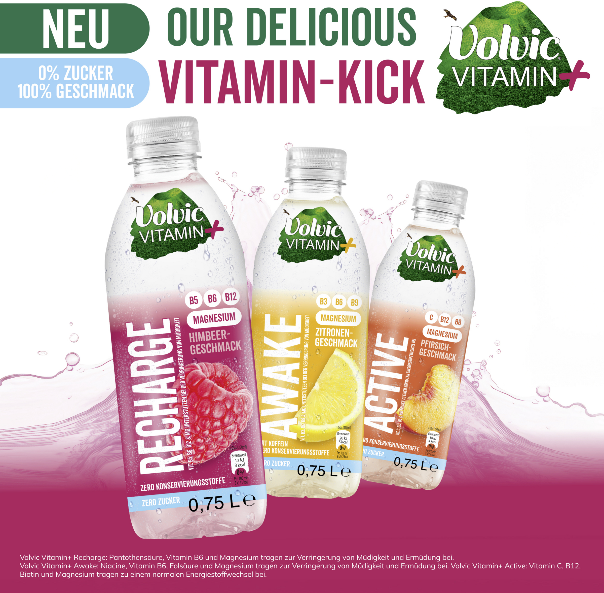 - Volvic Vitamin+ wird aus natürlichem Volvic Mineralwasser ohne Kohlensäure hergestellt und verfügt über eine einzigartige Mineralzusammensetzung