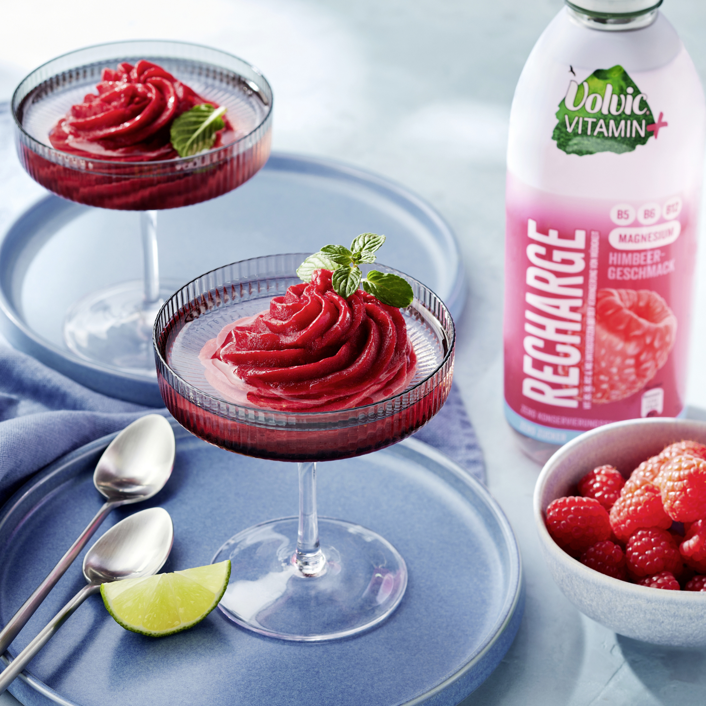 Erfrischungsgetränk mit natürlichem Mineralwasser, Vitaminen, Magnesium und Himbeergeschmack. Mit Süßungsmitteln.
