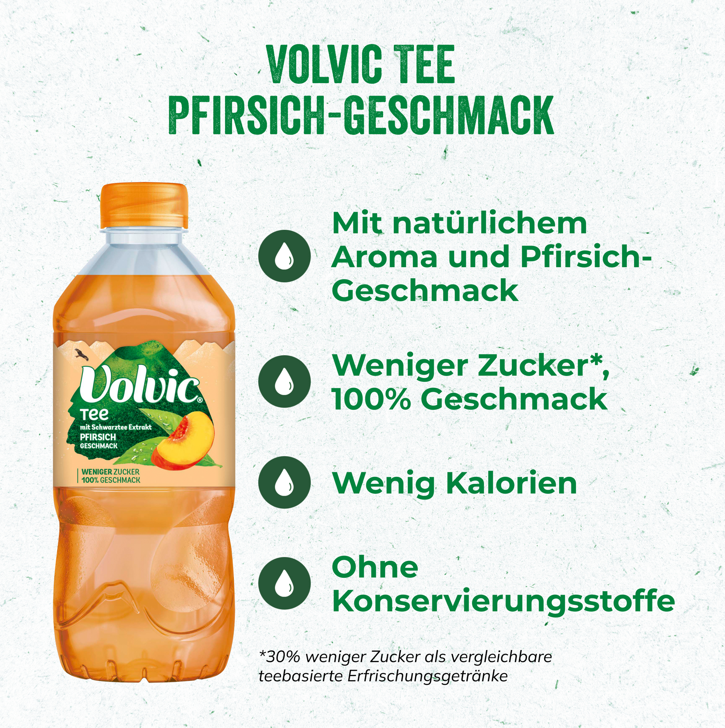 Erfrischungsgetränk mit natürlichem Mineralwasser, Tee-Extrakt und Pfirsichgeschmack