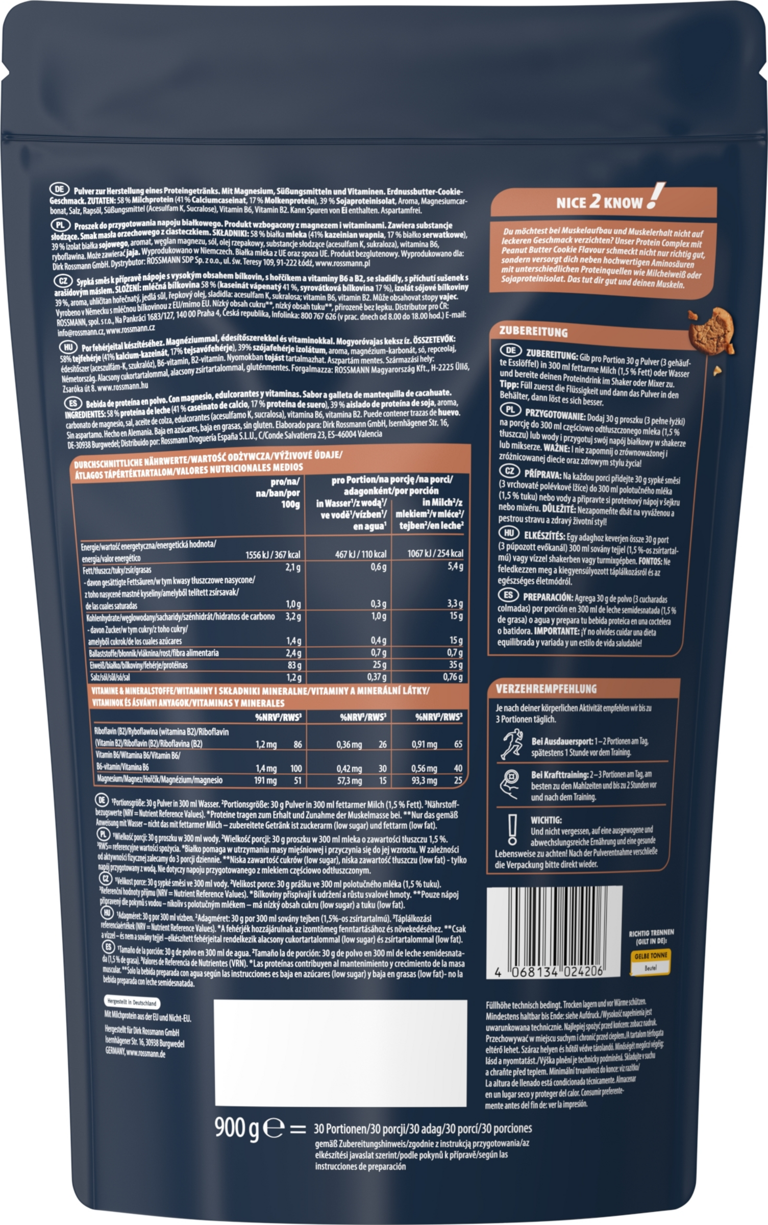 Du möchtest bei Muskelaufbau und Muskelerhalt nicht auf leckeren Geschmack verzichten? Unser Protein Complex mit Peanut Butter Cookie Flavour schmeckt nicht nur richtig gut, sondern versorgt dich neben hochwertigen Aminosäuren mit unterschiedlichen Proteinquellen wie Milcheiweiß oder Sojaproteinisolat. Das tut dir gut und deinen Muskeln.