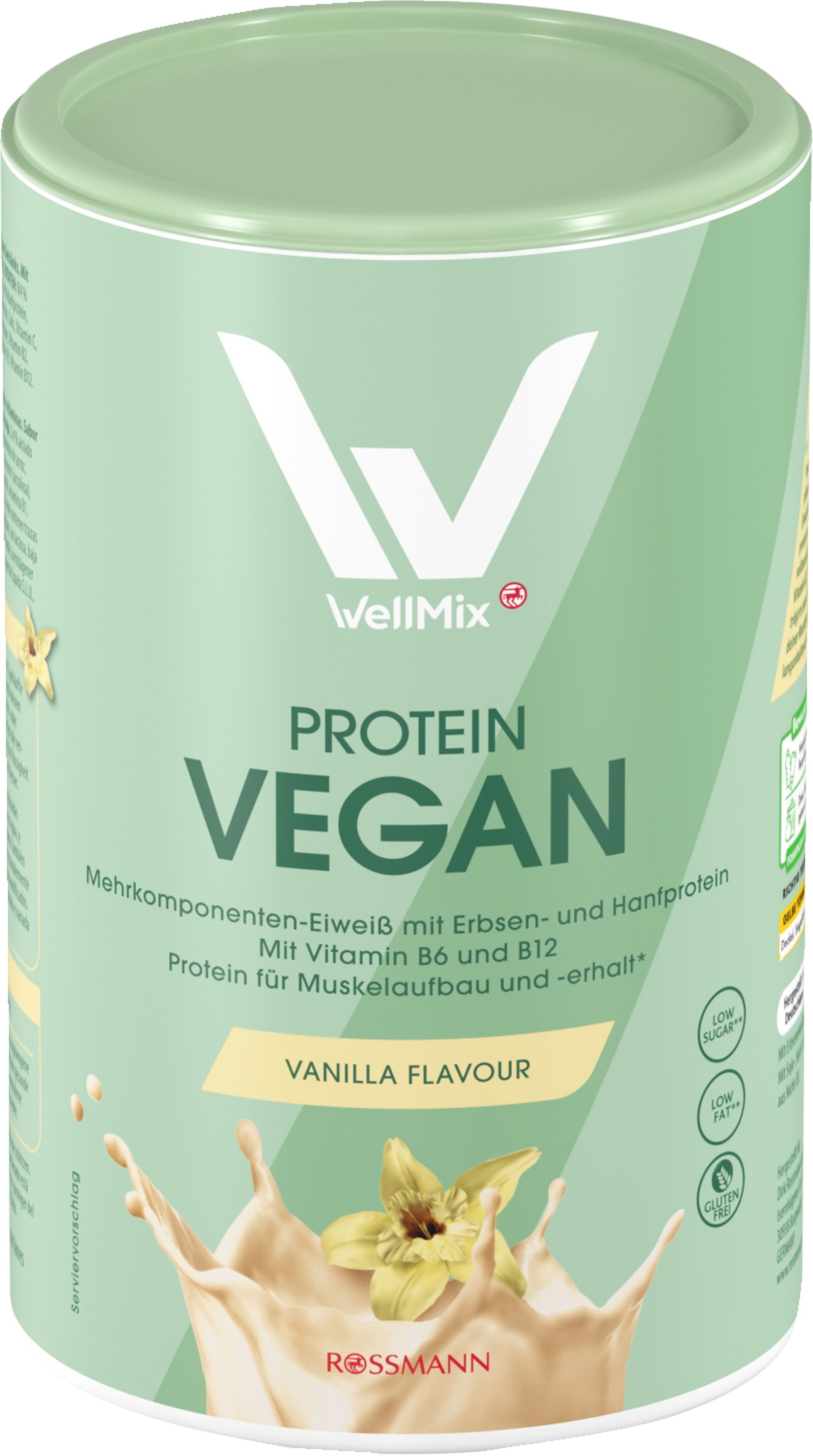 Vegan, Vanille, Vitamine: Unser pflanzliches Proteinpulver enthält Eiweiß aus unter anderem Hanfprotein und Erbsenprotein, schmeckt vollmundig vanillig und liefert dir Vitamin B2, B12, B6. Darüber hinaus trägt es zum Erhalt und Wachstum deiner Muskelmasse bei und sättigt langanhaltend. Gutes Shaken!