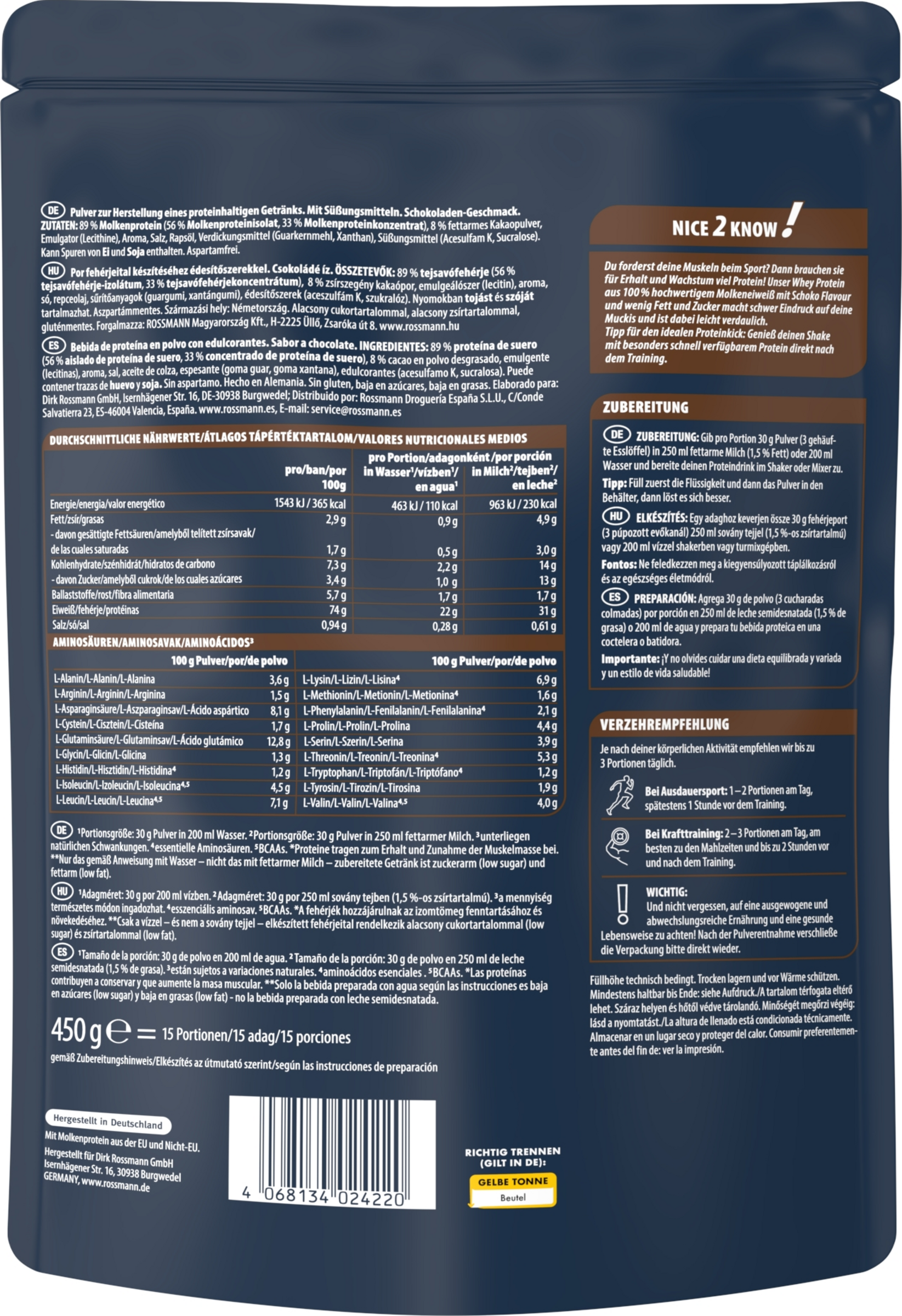 | Eiweiß | 74,0 g | |