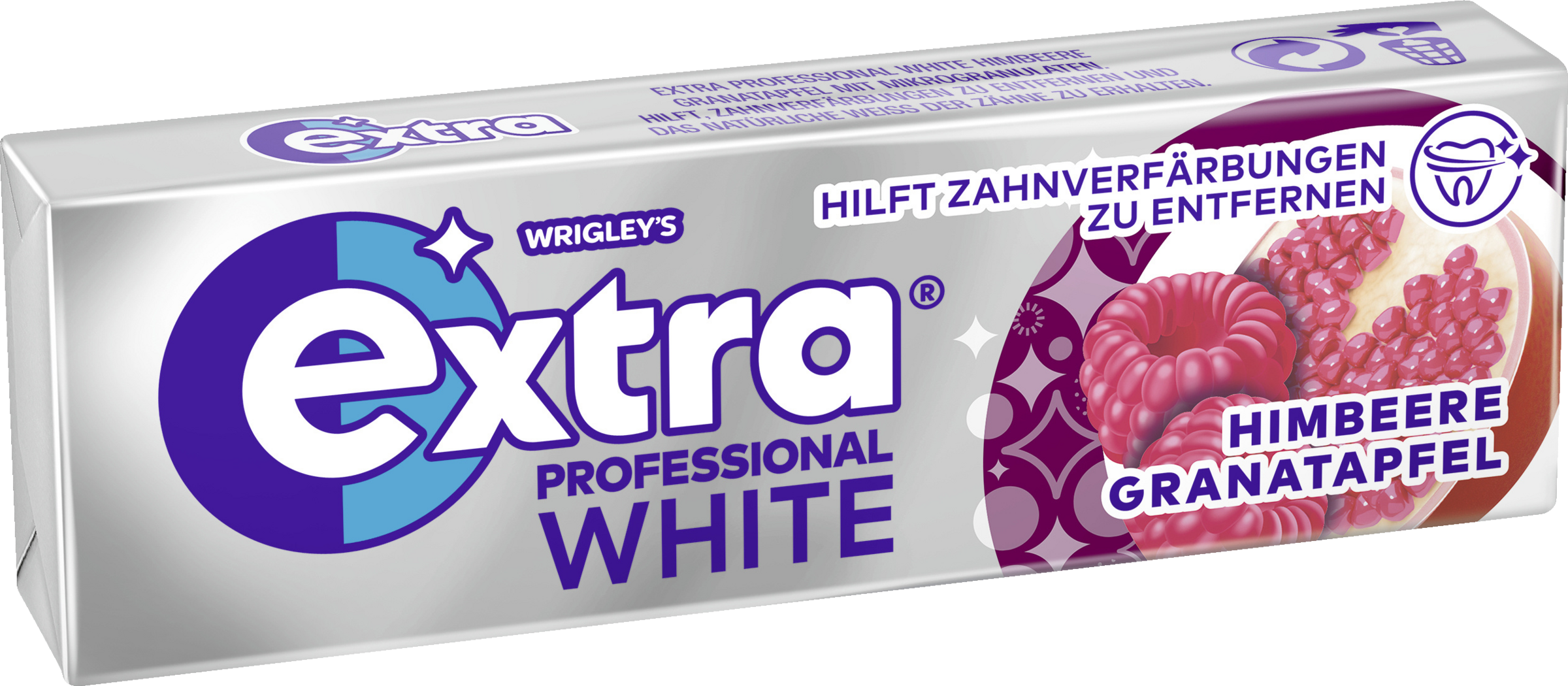 - EXTRA® PROFESSIONAL White Kaugummi mit fruchtigem Himbeere Granatapfel Geschmack für weißere Zähne