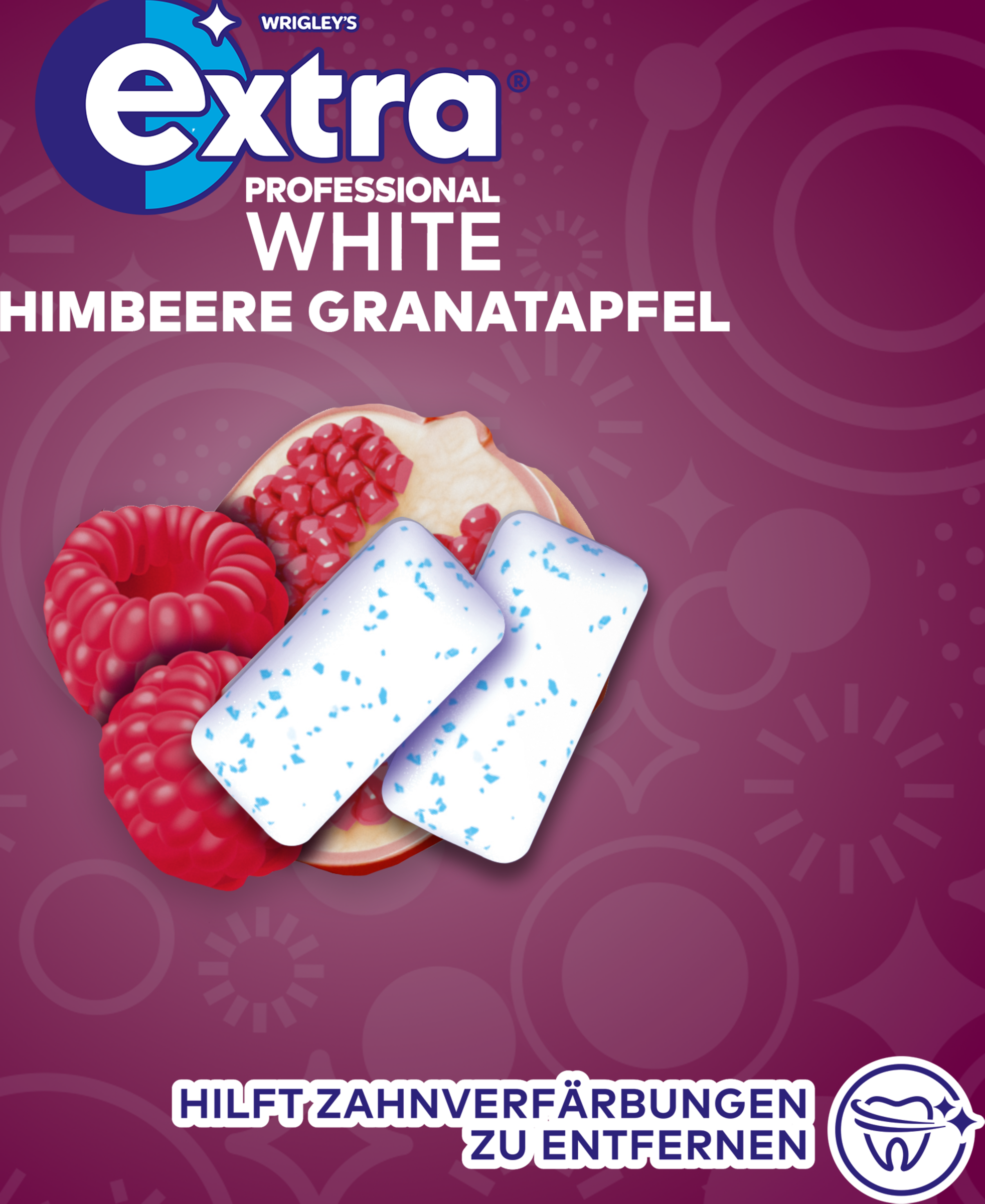 EXTRA® PROFESSIONAL White Himbeere Granatapfel Kaugummi hilft Zahnverfärbungen zu entfernen.
