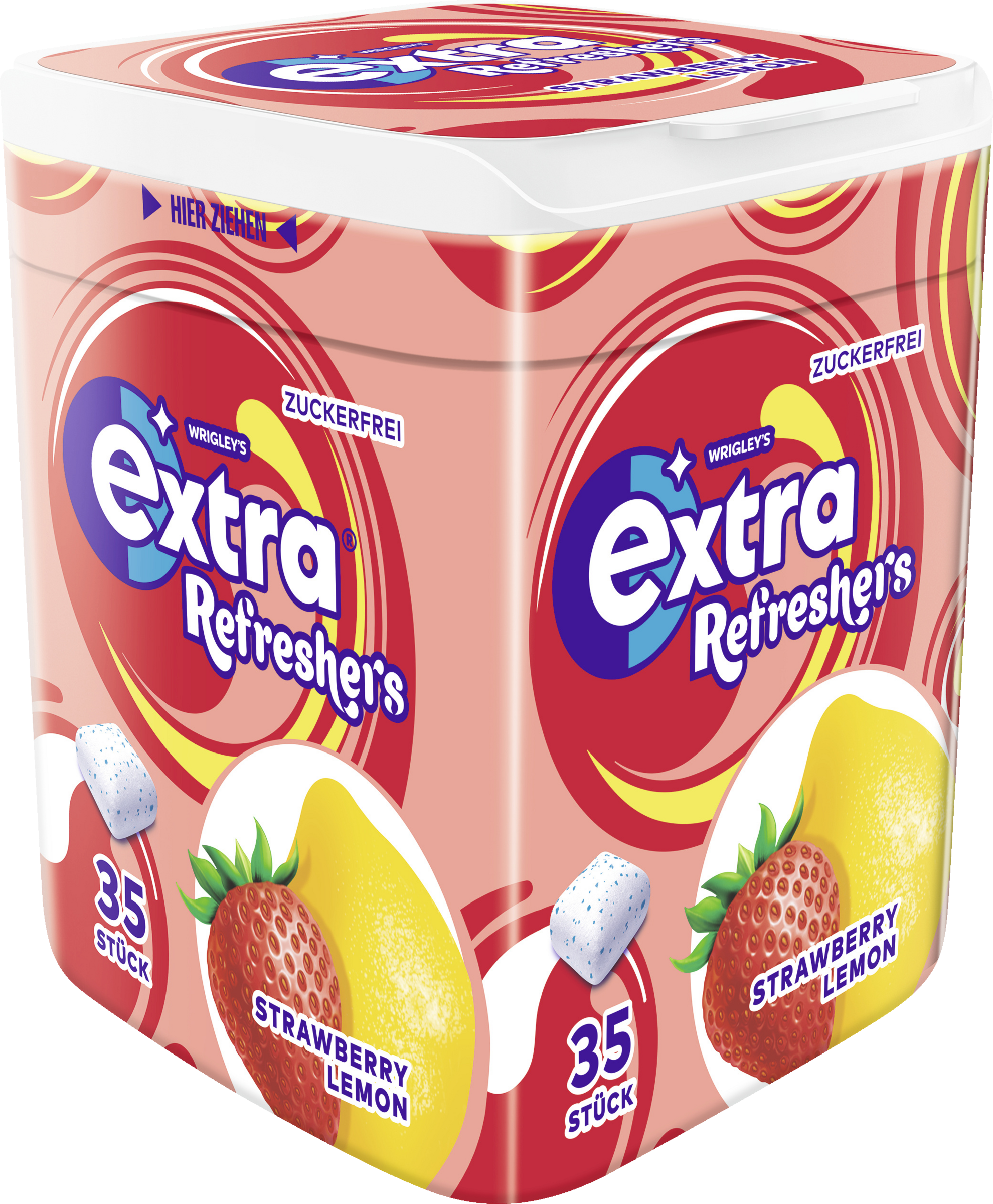 EXTRA® Refreshers Strawberry Lemon Kaugummi mit Erdbeer- und Zitrusgeschmack sorgt für ein erfrischendes Geschmackserlebnis.