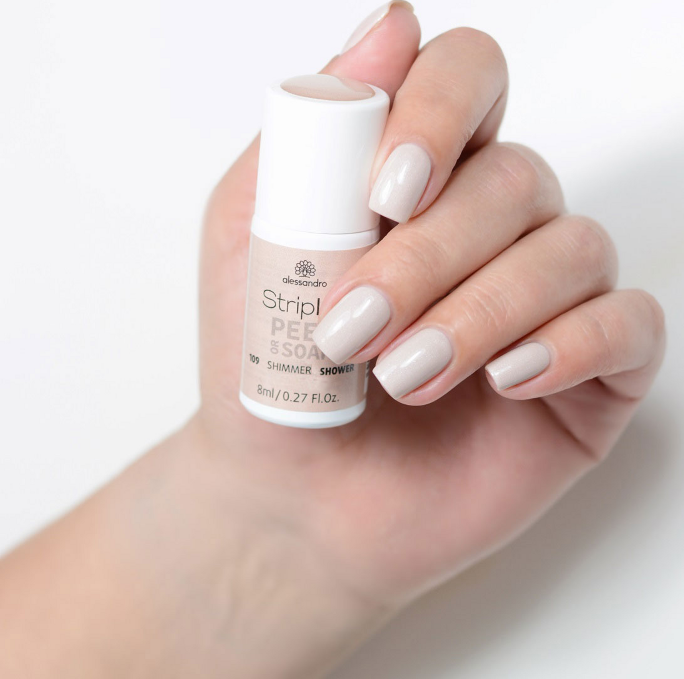 Glamourös und leger zugleich: Der Peel or Soak Striplac Shimmer Shower ergänzt jeden Look besonders stilvoll, der Farbton im edlen Beige-Rosa sorgt für wunderschön schimmernde NägelDas Beste– STRIPLAC ist VEGAN und TIERVERSUCHSFREI!Leichtes Auftragen, keine Trocknungszeit und bis zu 3 Wochen Haltbarkeit? Kein Problem! Einfach eine Schicht Shimmer Shower Striplac auftragen und mit dem Top Coat versiegeln. Dank der Peel or Soak Innovation lässt sich der Lack gleich auf zwei Weisen entfernen: Mit dem Peel-Off Aktivator kann der Lack mit Hilfe eines Hufstäbchens in einer Schicht entfernt werden, mit dem Soak-Off Liquid wird dieser mit Hilfe der Folienpads sanft abgelöst. alessandro Striplac - für glamouröse Nägel in nur 15 Minuten!Produktdetails• Shimmer Shower Striplac im schimmernden Beige-Rosa• Bis zu 3 Wochen Haltbarkeit• Keine Trocknungszeit• Schnelle Peel-Off oder Soak-Off Ablösung• Schützt und festigt den Naturnagel• VEGAN und Tierversuchsfrei• Hinweis: Lack trocknet nicht ohne alessandro LED-LampeStriplac Peel or Soak ist das Must-Have für jede Frau, die Wert auf schöne Nägel legt! Nägel wie aus dem Nagelstudio in etwa 15 Minuten! Striplac ist ein einzigartiger Nagellack, der wesentlich länger hält als herkömmlicher Nagellack – bis zu drei Wochen. Hochglanz bis zum letzten Tag! Striplac kann einfach und streifenfrei aufgetragen werden, deckt bereits nach der ersten Anwendung, ist kratz- und splitterfest. Keine lästige Trockenzeit, denn Striplac härtet in 60 Sekunden im LED-Gerät. Das Ergebnis ist eine perfekte UV/LED-Maniküre wie aus dem Nagelstudio.Und das Beste – STRIPLAC ist VEGAN und TIERVERSUCHSFREI!Zum schnellen Ablösen gibt es zwei Möglichkeiten: Schnelle Peel-Off or Soak-Off Lösung. Durch den Peel-Off Aktivator lässt sich der Striplac einfach vom Nagel abziehen oder Sie nutzen die Soak-Off Remover Wraps zum Ablösen. Der Lack ist mit beiden Lösungen rückstandslos zu entfernen.