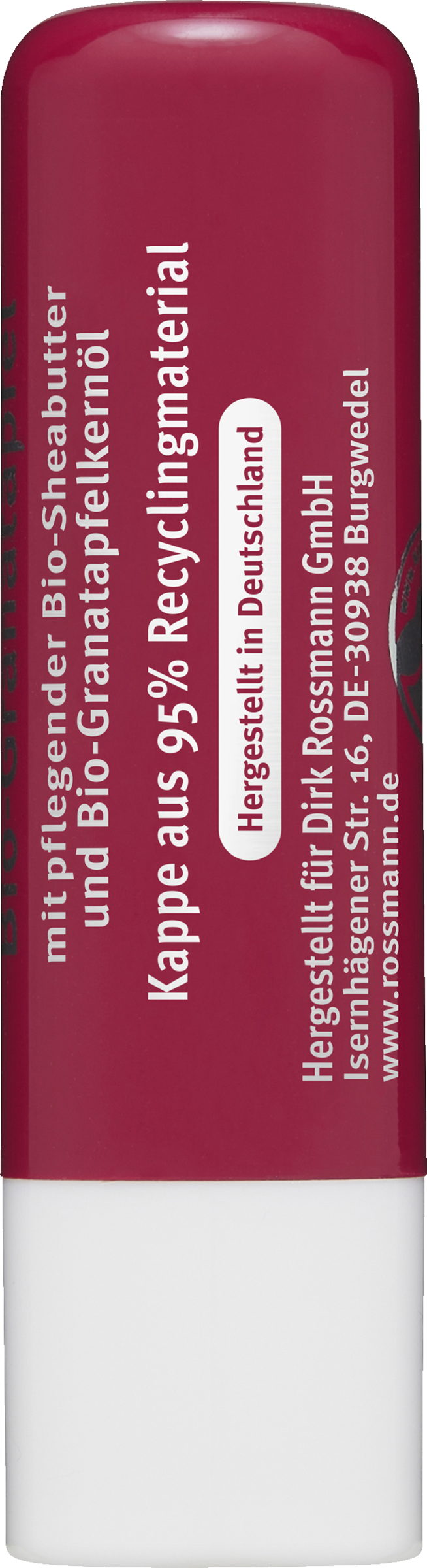 Der Alterra Lippenbalsam mit pflegender Bio-Sheabutter und Bio-Granatapfelkernöl verleiht den Lippen einen zart rötlichen Schimmer und duftet dabei nach fruchtigem Granatapfel.Diese Rezeptur ist zu 100% ohne Mikroplastik laut zertifizierter Naturkosmetik.
